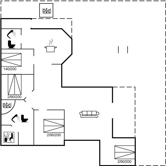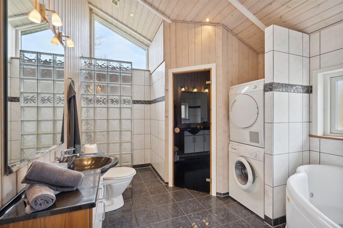 Er is 2 badkamers met douchehok en 2 toiletten. Er is vloerverwarming in 2 van de badkamers. De sauna biedt de gelegenheid tot ontspanning.