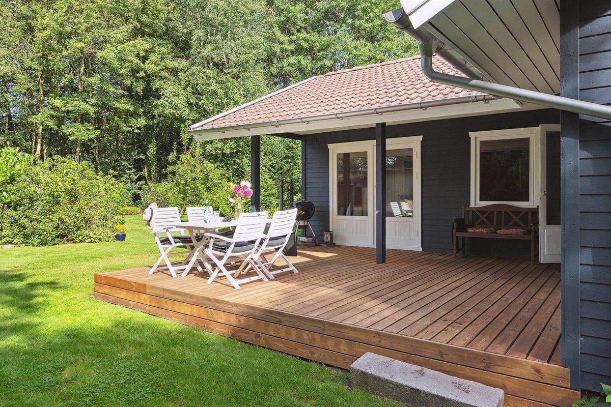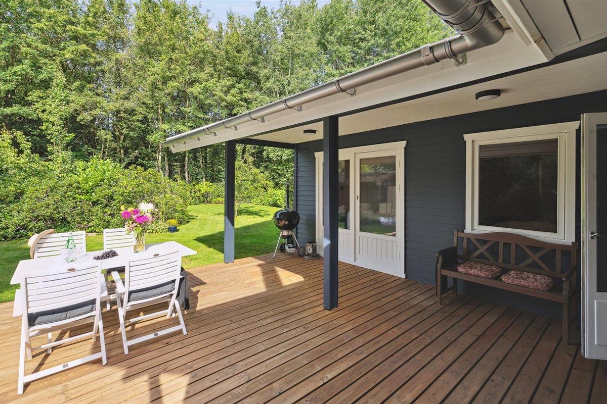 De vakantiewoning is gelegen op een 875 m² groot aangelegde tuin. Afstand tot de zee 30000 m.Afstand tot de waddenzee 17000 m. Afstand tot meer 200 m. Dichtstbijzijnde winkel 500 m. Daarnaast is er een overdekt terras. Afstand tot speelplaats 400 m. Carport ter beschikking. Parkeerplaats bij het huis.