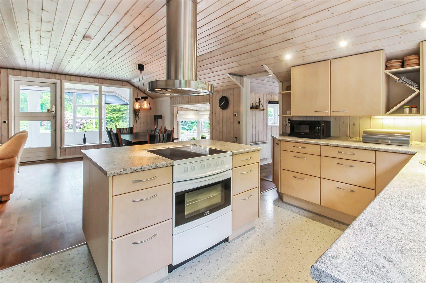 De keuken is uitgerust met koelkast Er zijn 4 keramische kookplaten, heteluchtoven, magnetron en vaatwasser.
