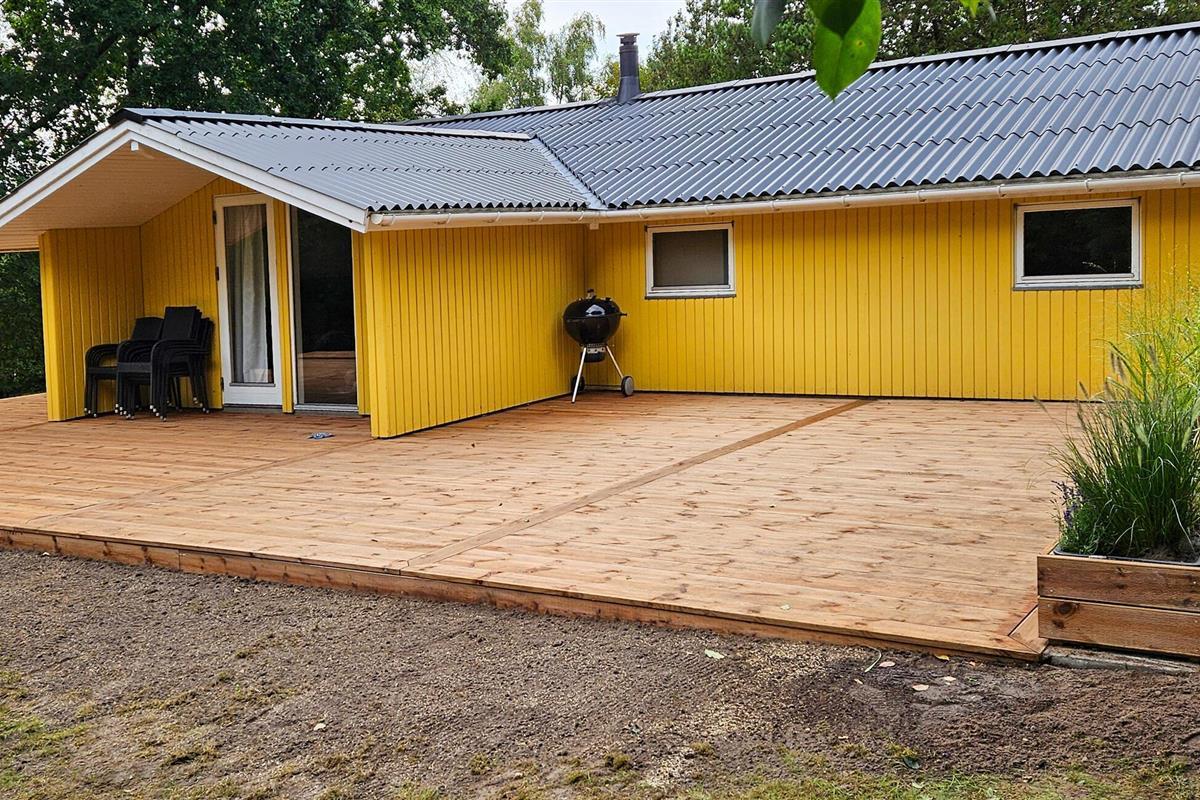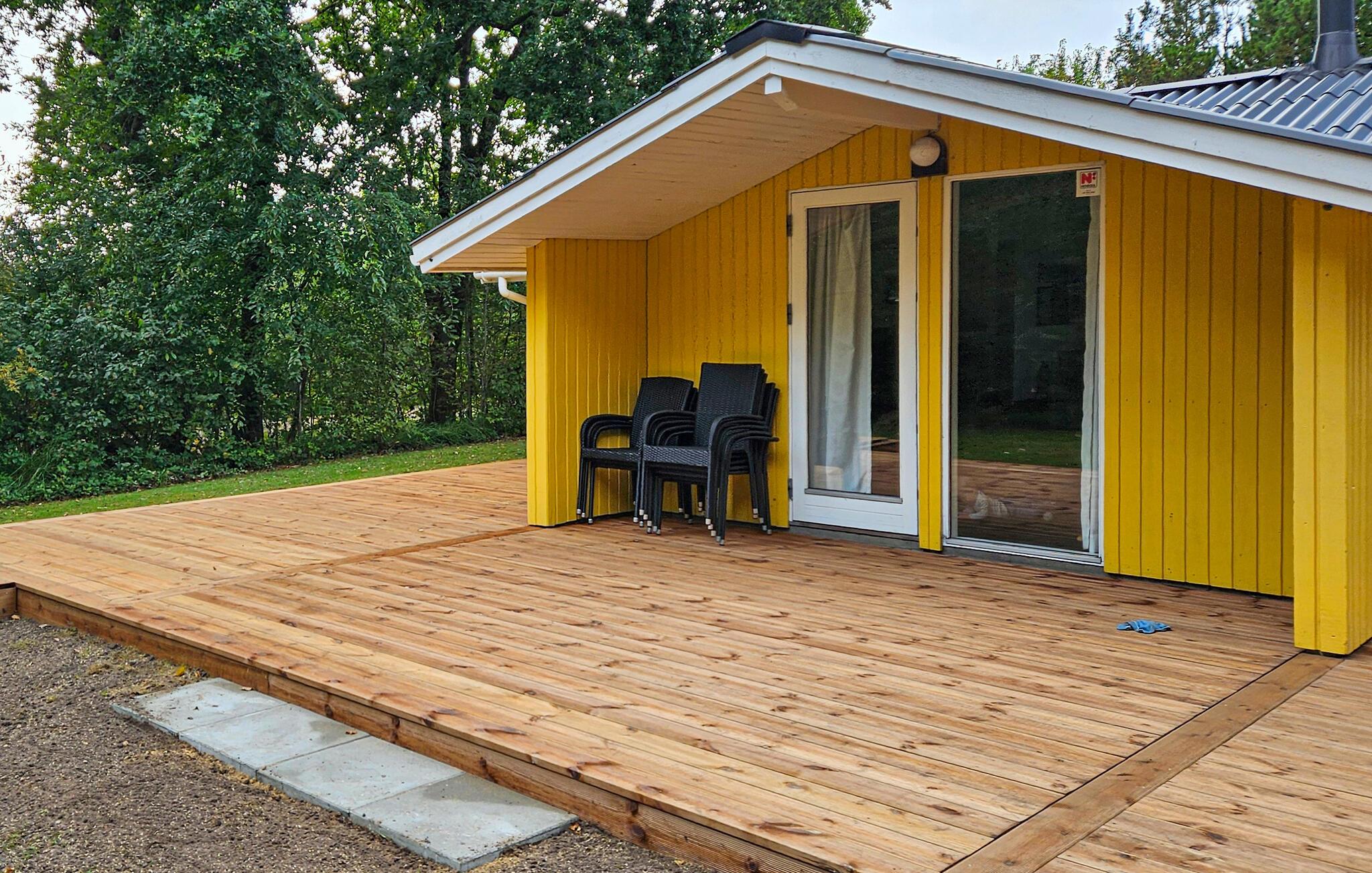 Ontdek dit ruime houten vakantiehuis met bubbelbad en grote tuin in het natuurrijke Arrild Ferieby.