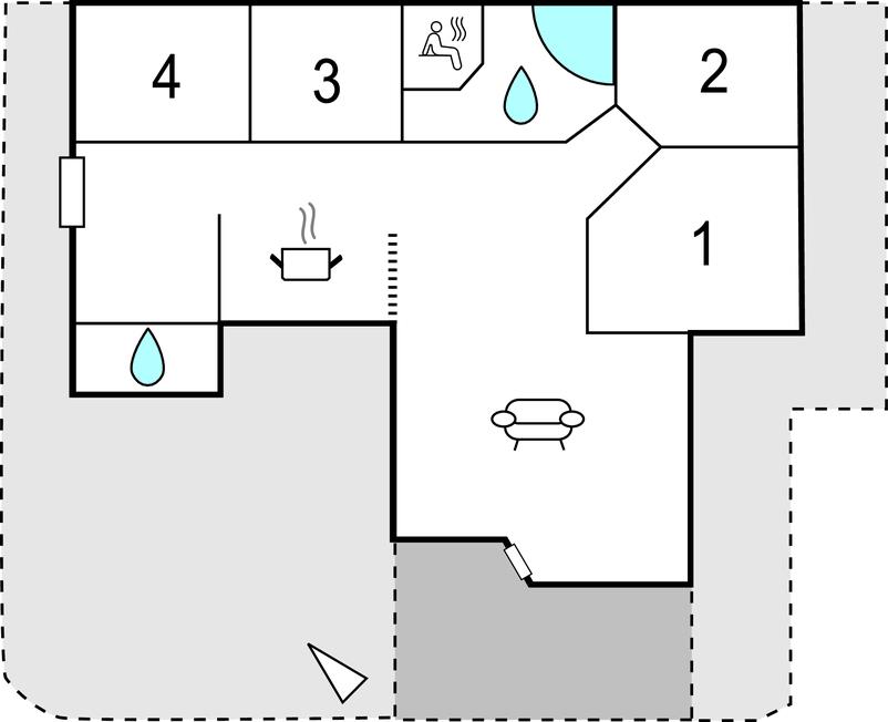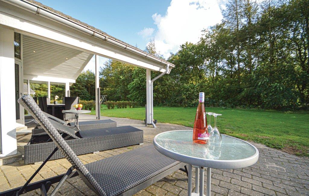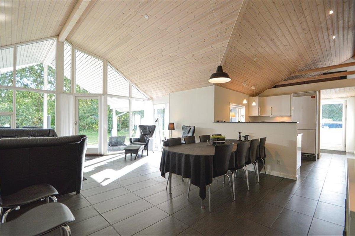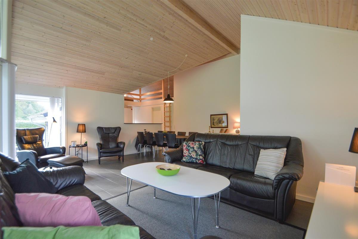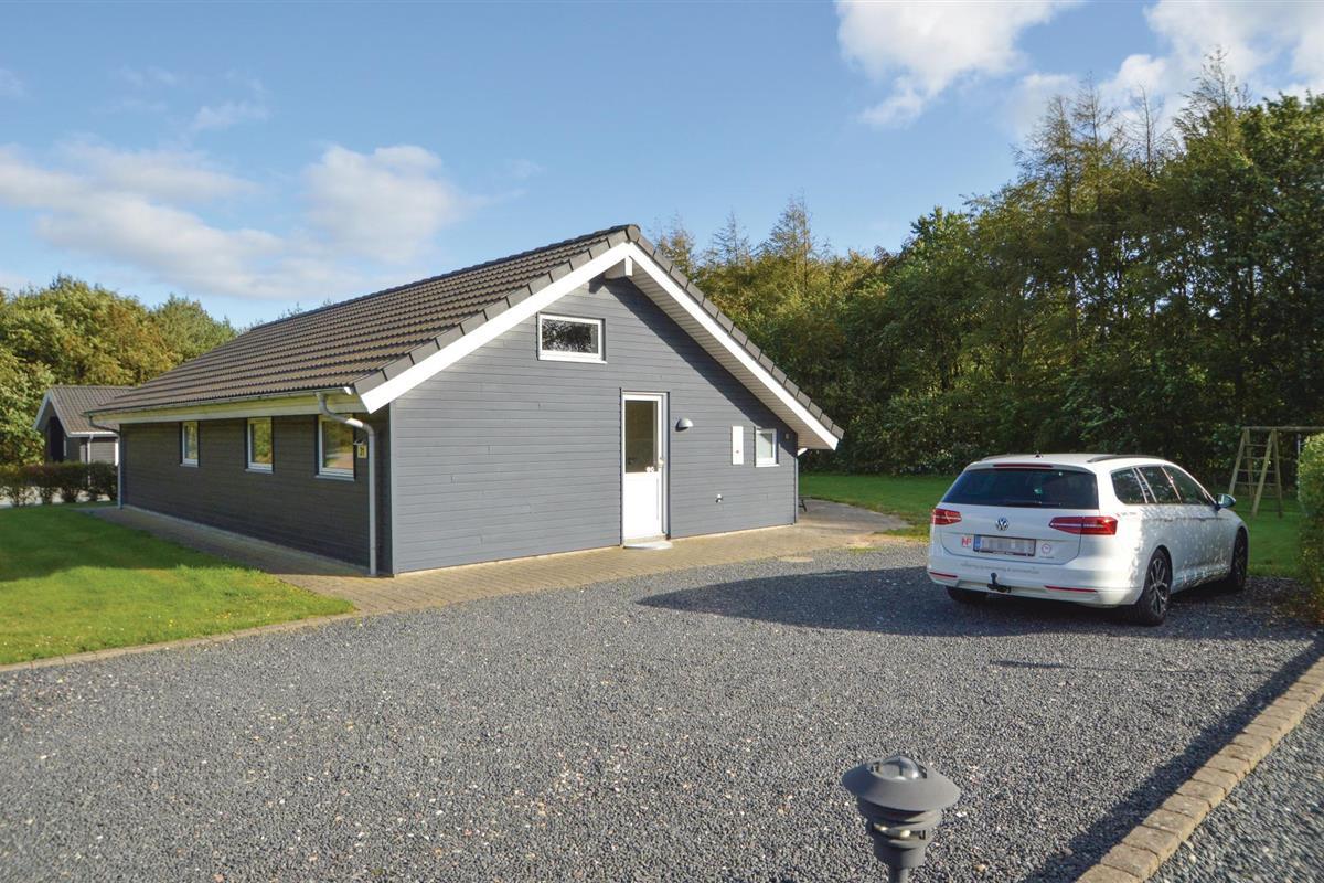 Het huis ligt op een grasveld met een hoge begroeiing richting het zuidwesten, wat een goed windscherm biedt. Hier kunt u genieten van echt lange zomeravonden en bijna de helft van het terras is zelfs overdekt.