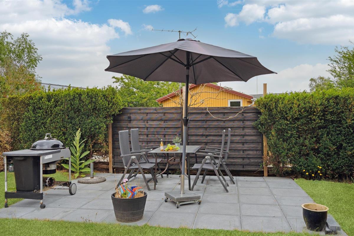 Er zijn ook verschillende terrassen - waaronder een groot overdekt terras zodat u bij elk weertype kunt barbecueën en gezellig samen kunt zijn. Er is ook een hangmat in de tuin voor een heerlijk ontspannen moment onder de boomtoppen. De buitendouche in de tuin zorgt voor een aangename temperatuur op warme zomerdagen en de mogelijkheid om het zout en zand af te spoelen na een leuke dag op het strand.