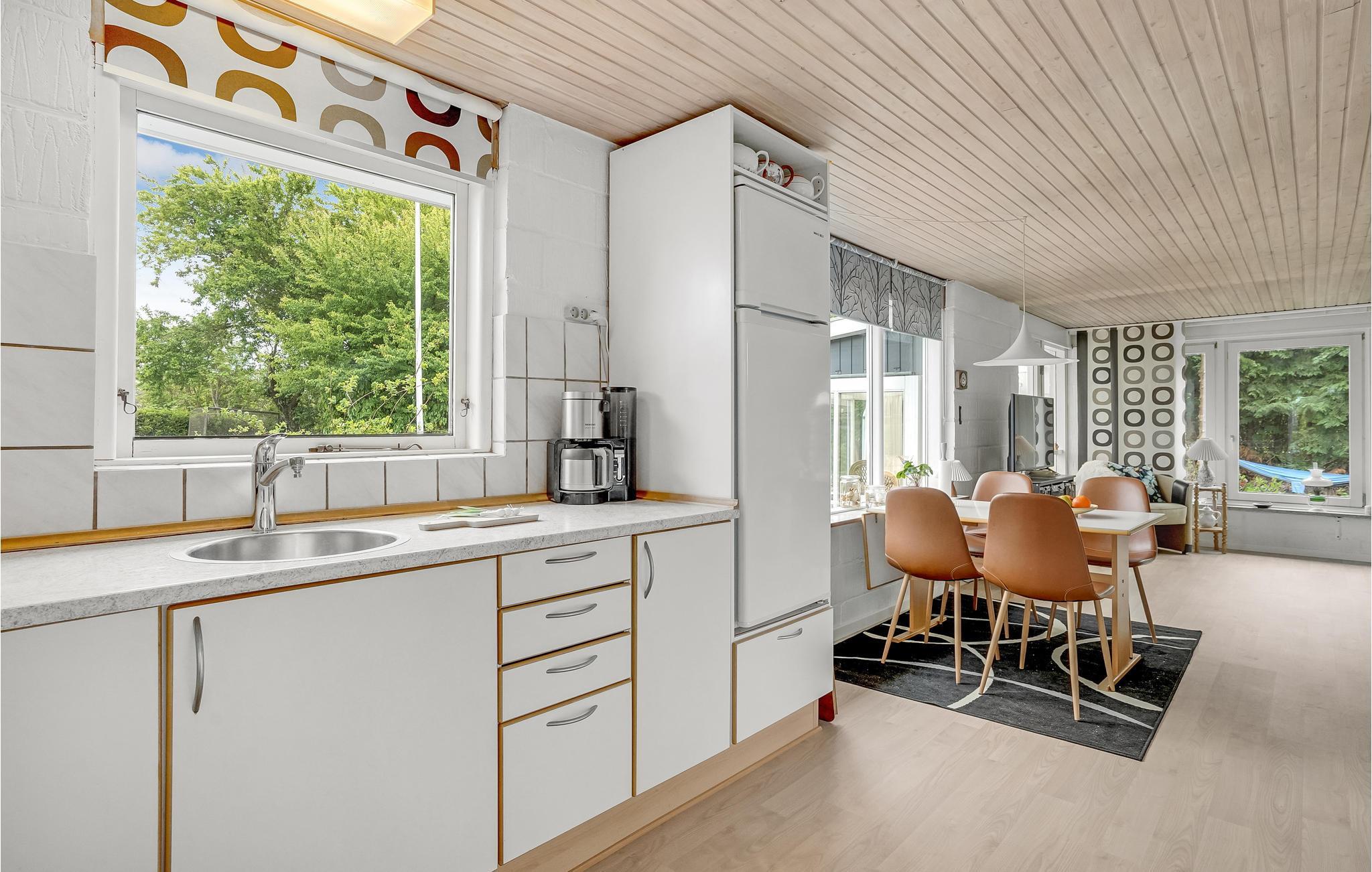 In de prachtige baai van As Vig nodigt dit vakantiehuis u en uw gezin uit voor een ontspannende vakantie. Het ligt op ongeveer 300 m van een van de beste zandstranden van Denemarken en zeer dicht bij winkelfaciliteiten. Het huis is opgewaardeerd met moderne meubels en maakt een lichte, mooie en sfeervolle indruk met rieten fauteuils in de serre en een comfortabele bank in de woonkamer.