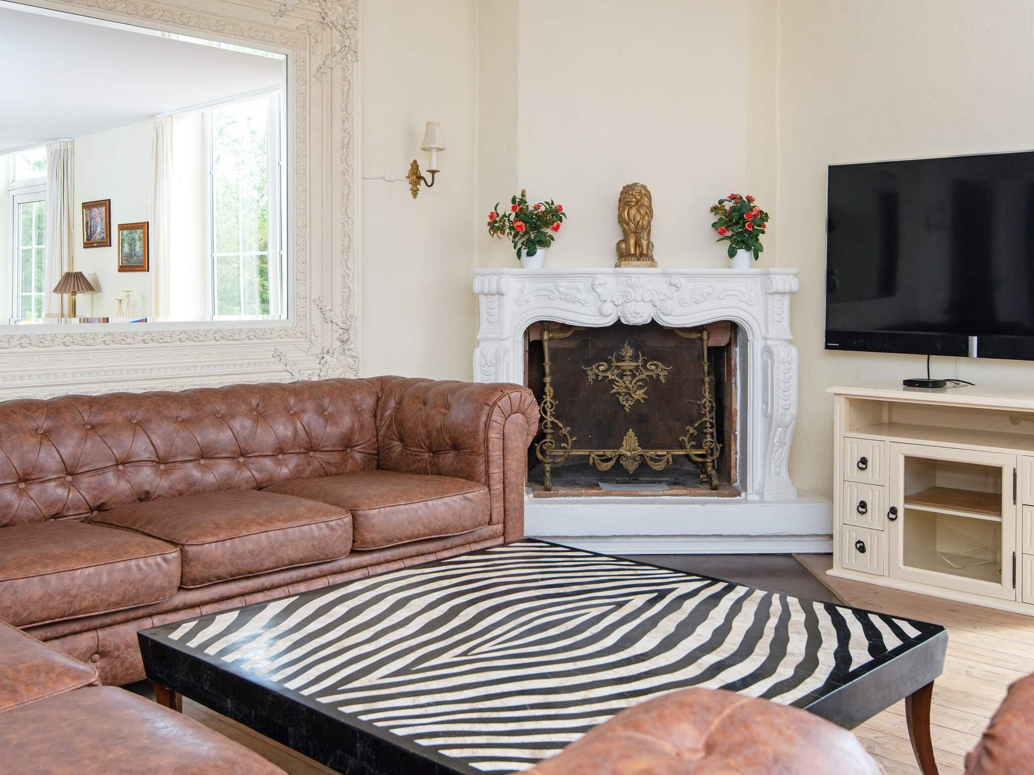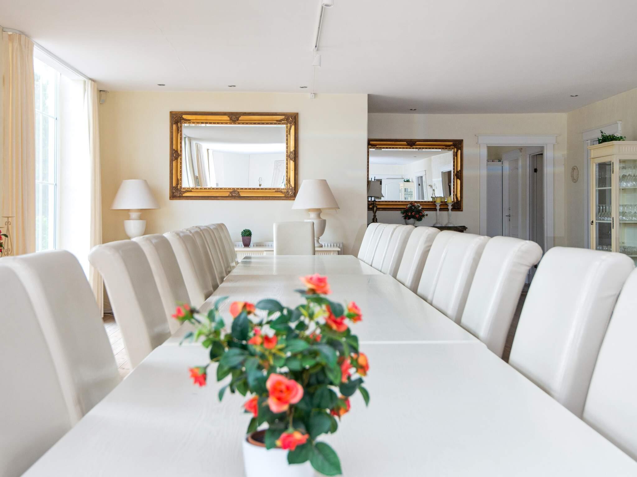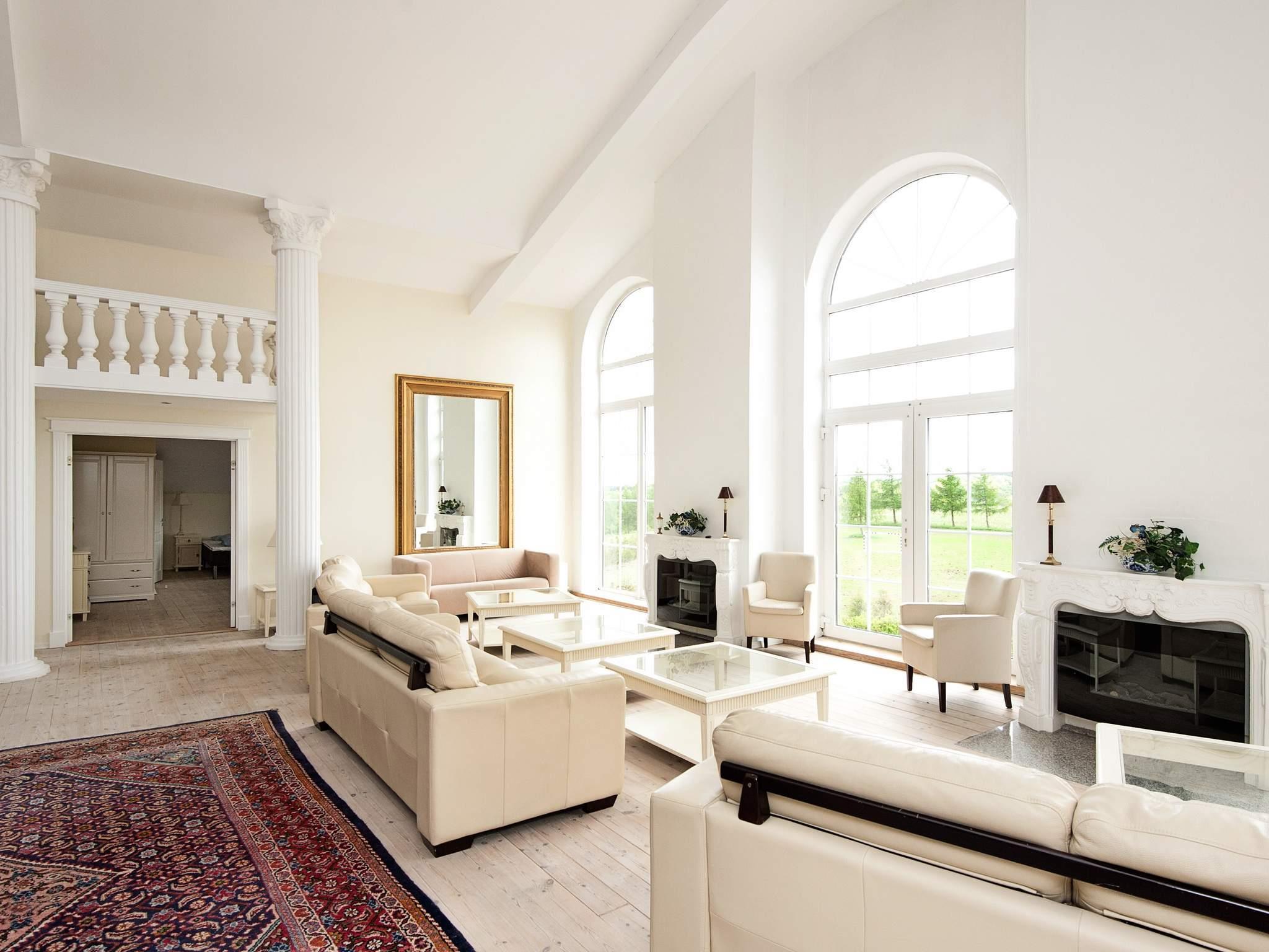 Das luxuriöse Feriendomizil Asbølhus ist hell eingerichtet, mit großen Fensterpartien, hohen Decken, Dielenböden und gediegenem Mobiliar.
