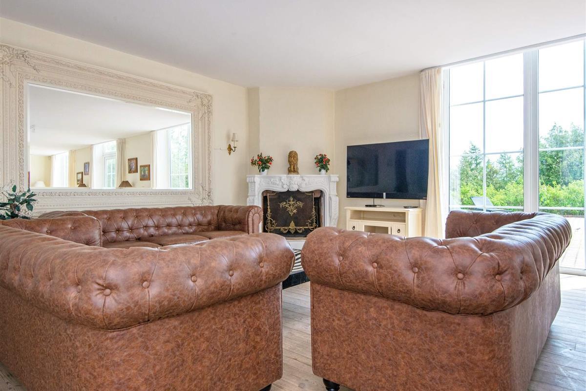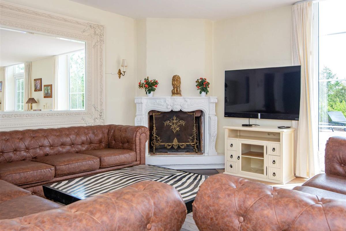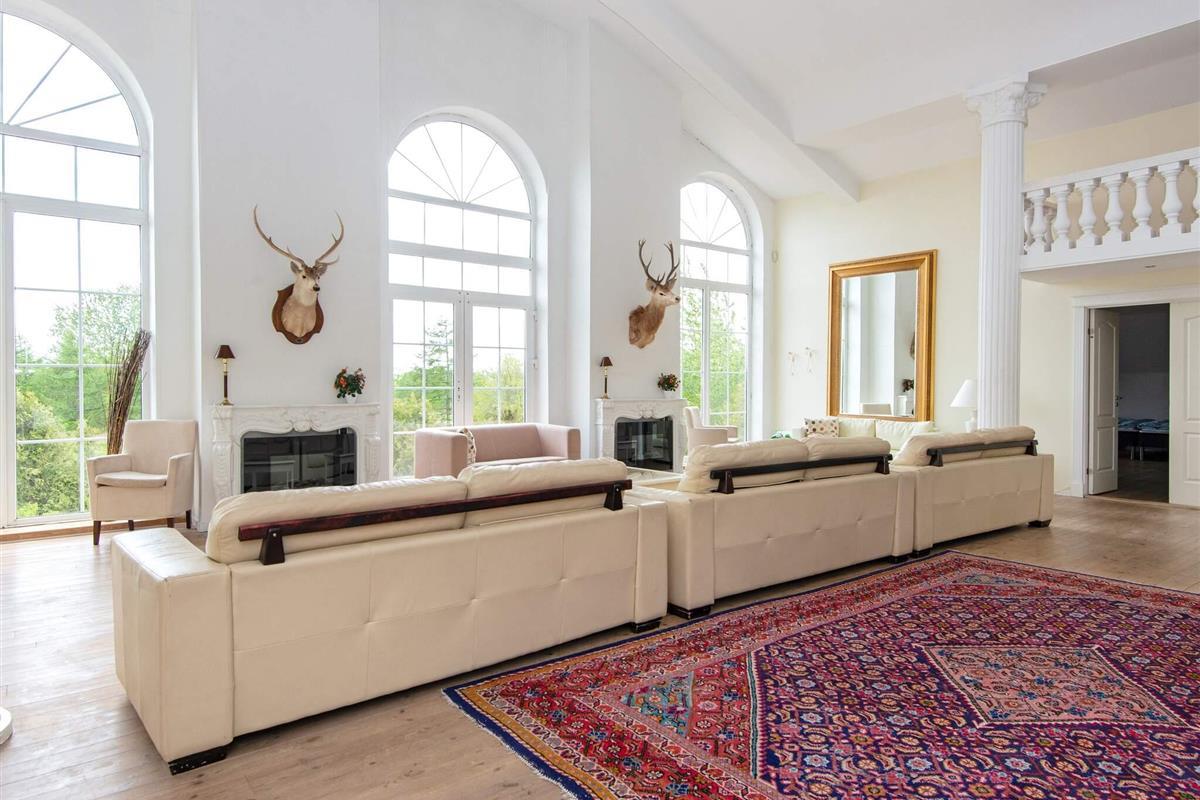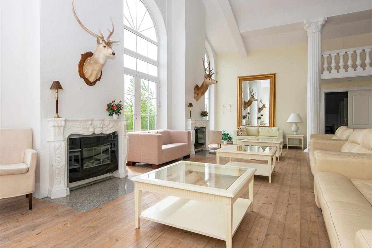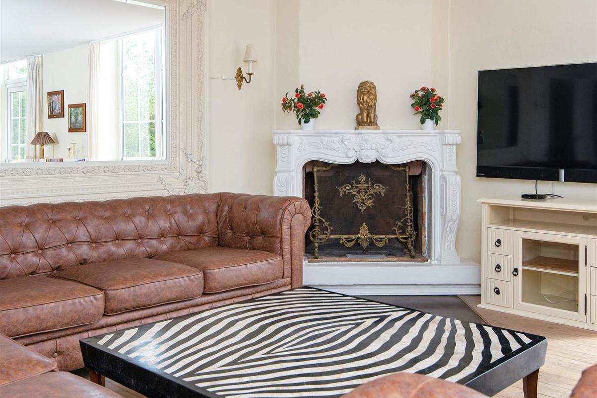 Vom Eingangsbereich im Parterre, der mit Granit ausgestattet ist, geht es in den mehr als 100 m² großen Ess- und Aufenthaltsbereich mit Kamin, Fernseher sowie Zugang zur 120 m² großen, rot gepflasterten Südterrasse.
