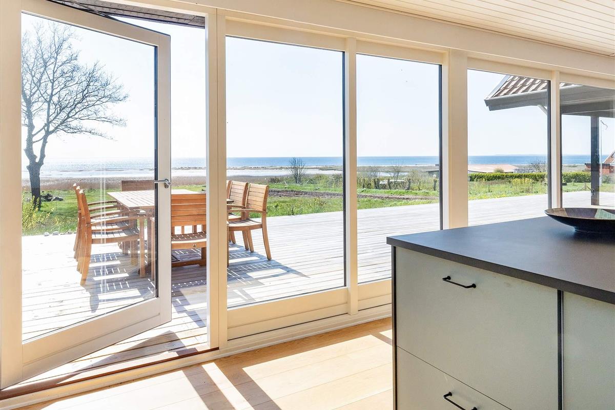 Die Küche ist modern und gut ausgestattet mit allem, was Sie brauchen, um köstliche Mahlzeiten zuzubereiten. Es gibt auch einen Esstisch, an dem Sie Ihre Mahlzeiten genießen können, während Sie den fantastischen Blick über das Wasser genießen. Im Außenbereich gibt es einen schönen Garten, in dem Sie sich entspannen und die Sonne genießen können. Es gibt auch eine große Terrasse, auf der Sie frühstücken oder grillen können.