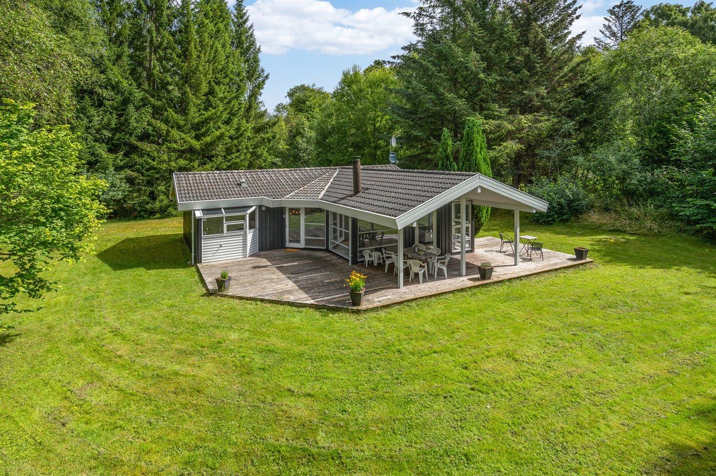 De vakantiewoning is gelegen op een 2367 m² groot aangelegde tuin. Afstand tot de zee 2600 m. Afstand tot meer 1900 m. Dichtstbijzijnde winkel 800 m. Er is een golfbaan op een afstand van 2300 m. Bij de vakantiewoning hoort 60 m² terras. Daarnaast is er een 12 m² groot overdekt terras. Barbecue. Parkeerplaats bij het huis.