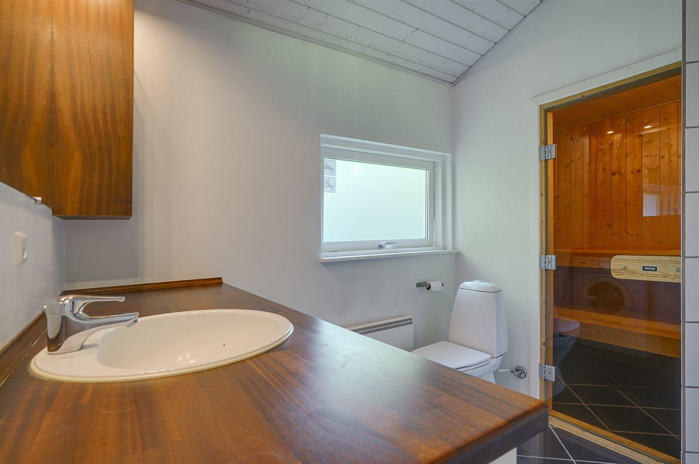 Er is 1 badkamer met douchehok en 1 toilet.. Er is vloerverwarming in 1 badkamer. De sauna biedt de gelegenheid tot ontspanning.