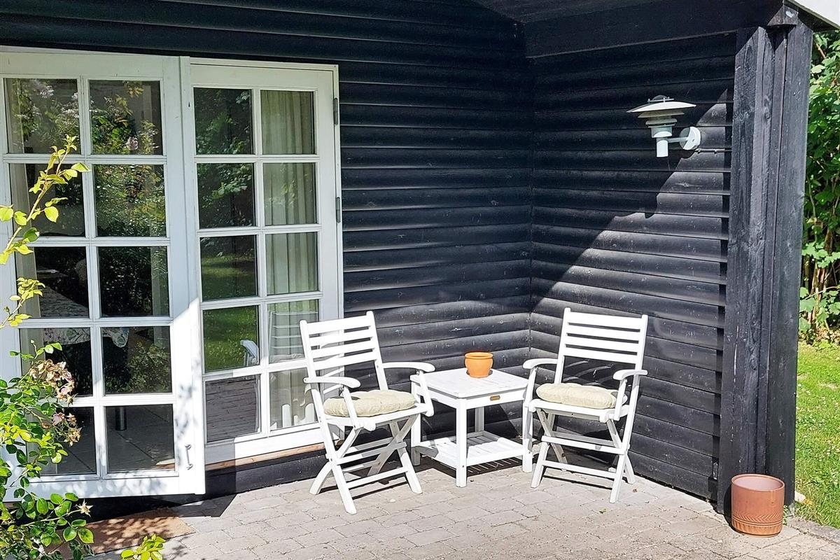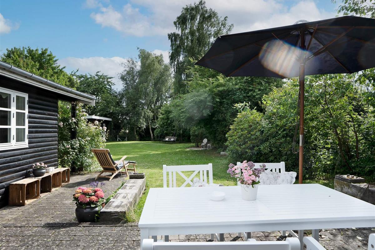 1 Außenbereich: Gartenmöbel, Liegestühle, Holzkohlegrill, Terrasse, Overdækket Terrasse