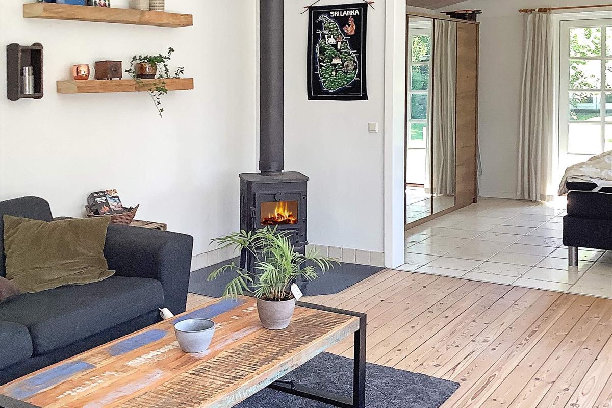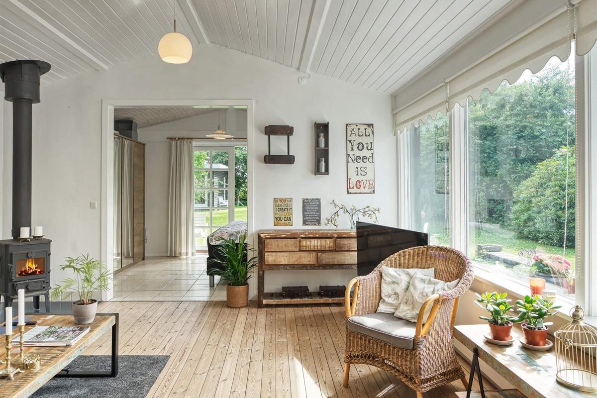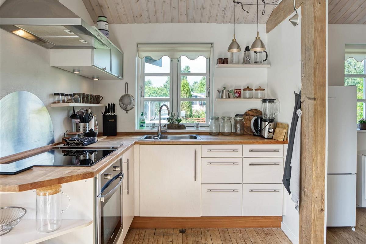 Gemütliches Ferienhaus in Asserbo mit praktischer Raumaufteilung und einladender Atmosphäre. Die offene Küche mit Cerankochfeld, Dunstabzugshaube, Backofen, Mikrowelle, Kühl-/Gefrierkombination und Kaffeemaschine erleichtert die Zubereitung von Mahlzeiten während Ihres Aufenthalts. Das Wohnzimmer ist mit einem Holzofen für gemütliche Abende, einer energieeffizienten Luft-Luft-Wärmepumpe, Fernseher und Internetzugang ausgestattet.