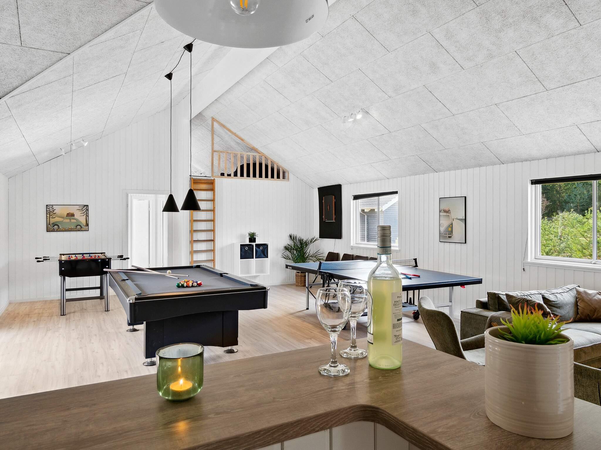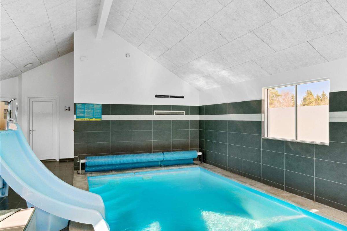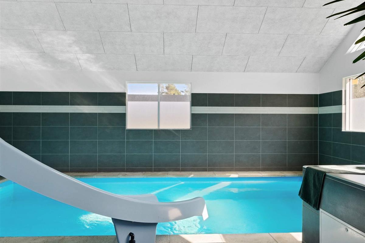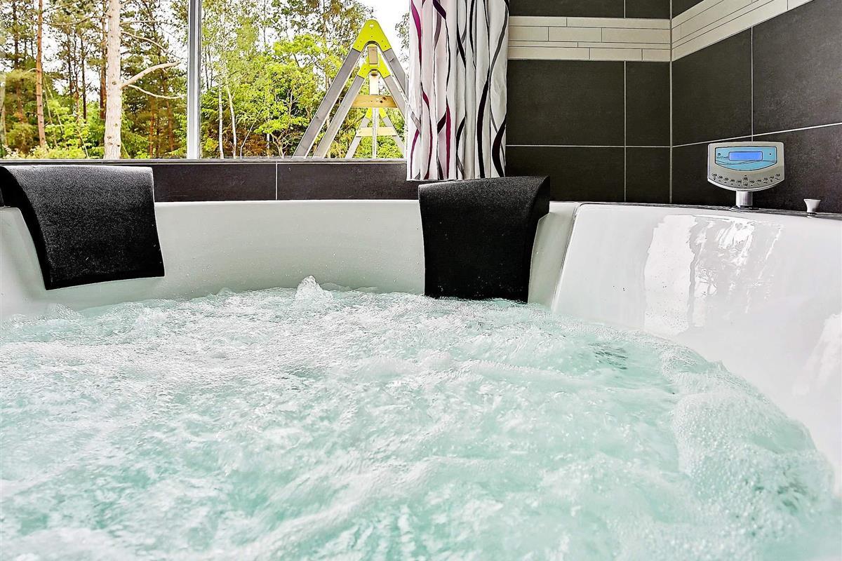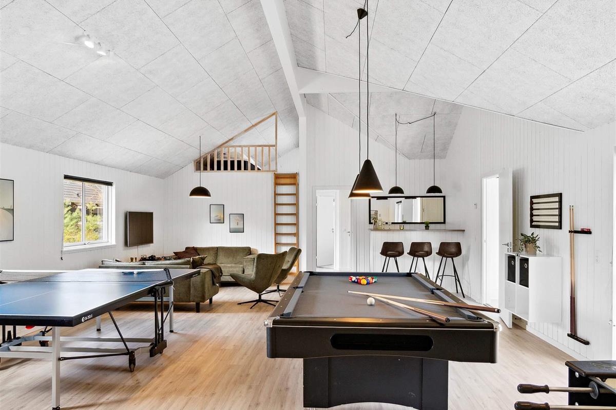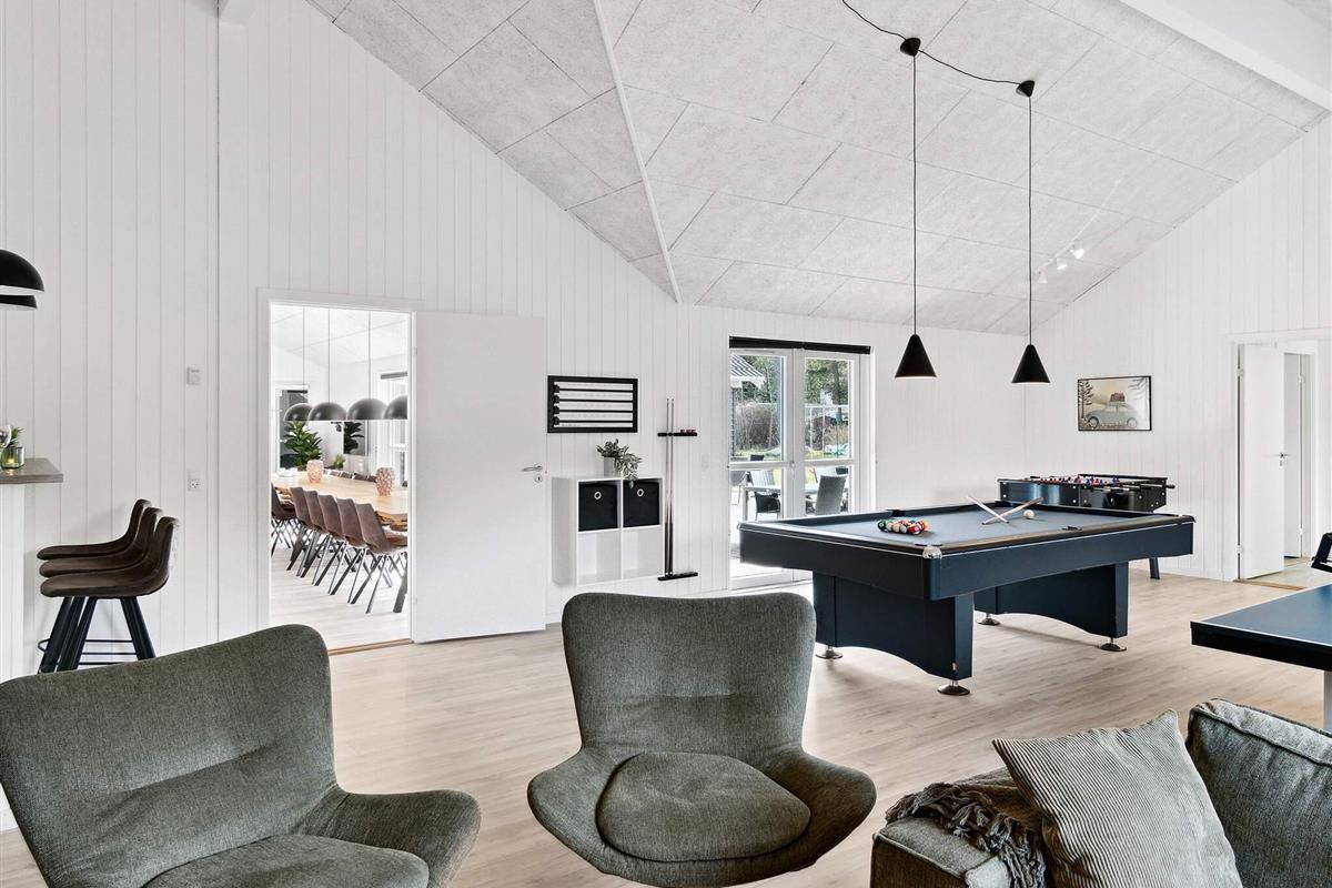Dieses Pool- und Aktivitäts-Ferienhaus liegt in einem landschaftlich attraktiven Gebiet. Es ist modern eingerichtet, sehr geräumig und hat eine gute Raumaufteilung mit drei separaten Schlafbereichen, zu denen jeweils ein Bad gehört. Ein weiteres Badezimmer befindet sich im Poolbereich. Neben den neun Schlafzimmern gibt es einen geräumigen Hems/Schlafboden. Der Wohn-Essbereich ist geschmackvoll eingerichtet und verfügt u.a. über Stereoanlage mit CD-Spieler, Fernseher, DVD-Spieler, Hochstuhl, Sofabereich und Holzofen.