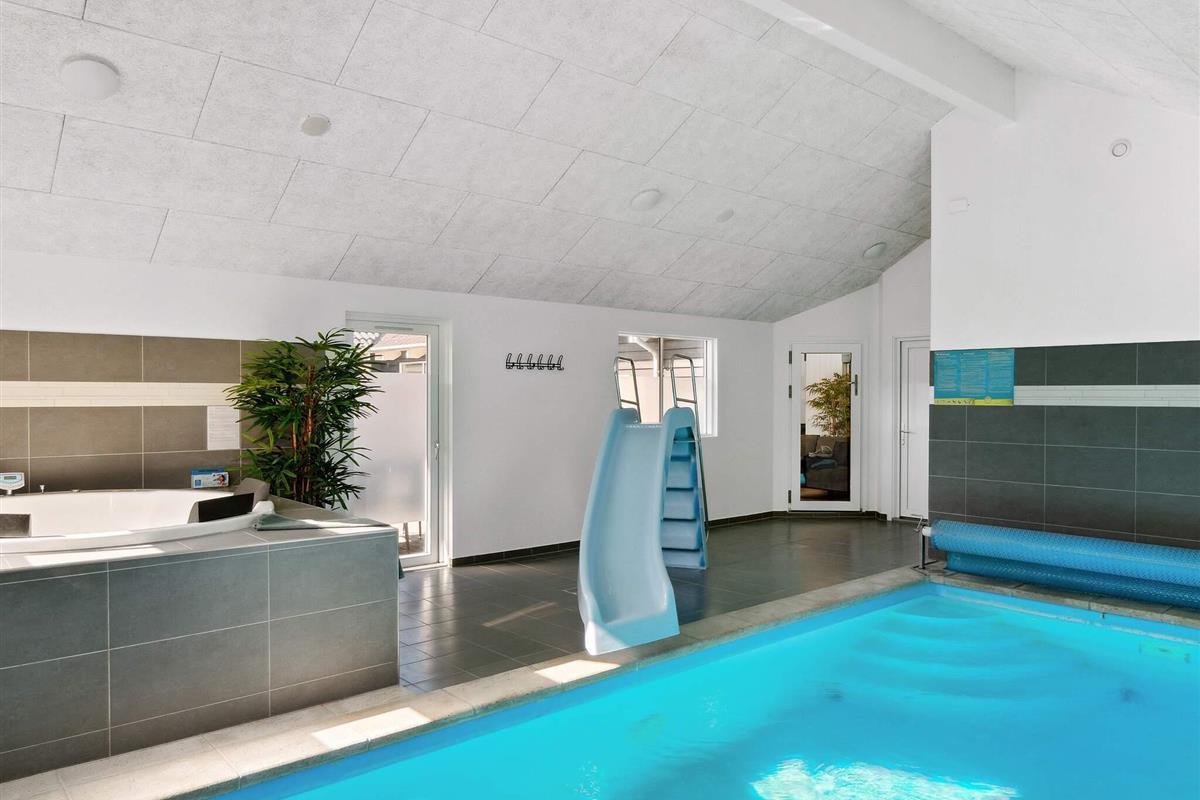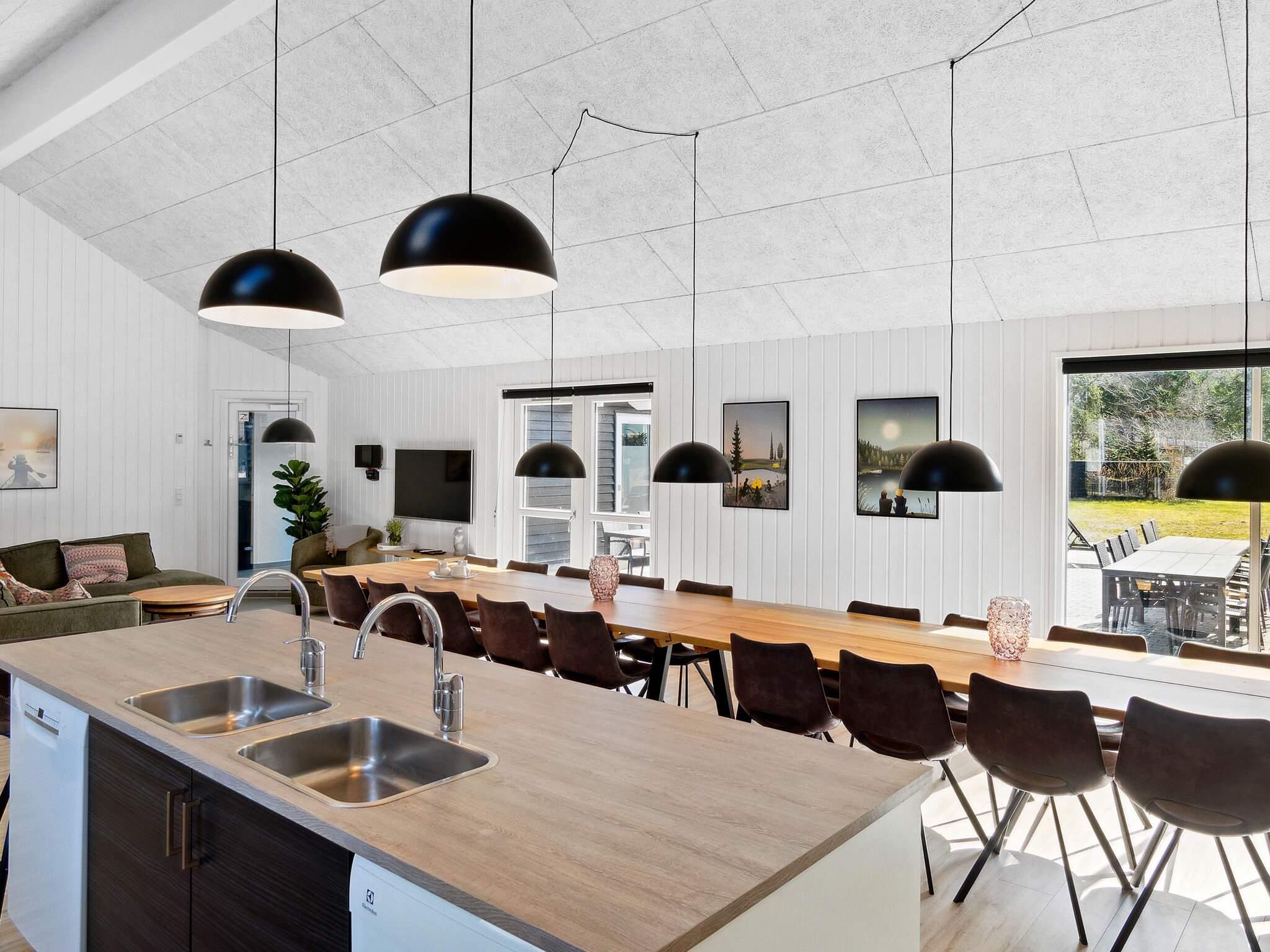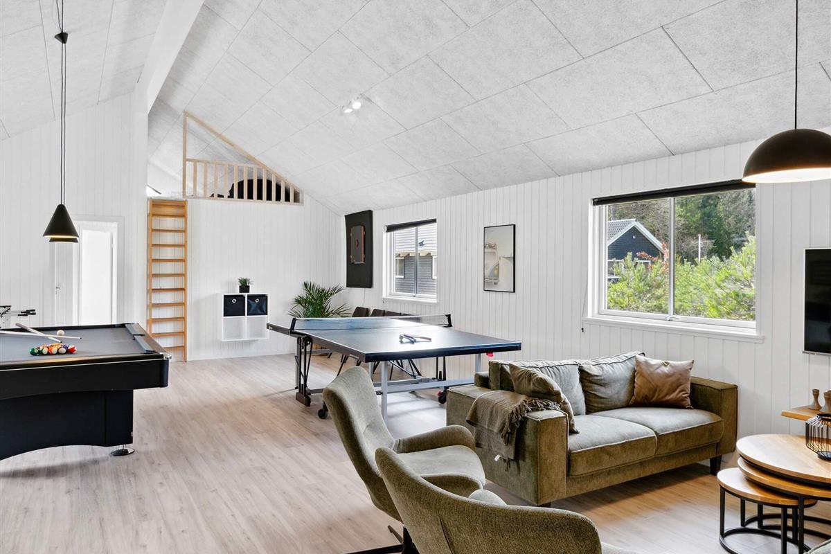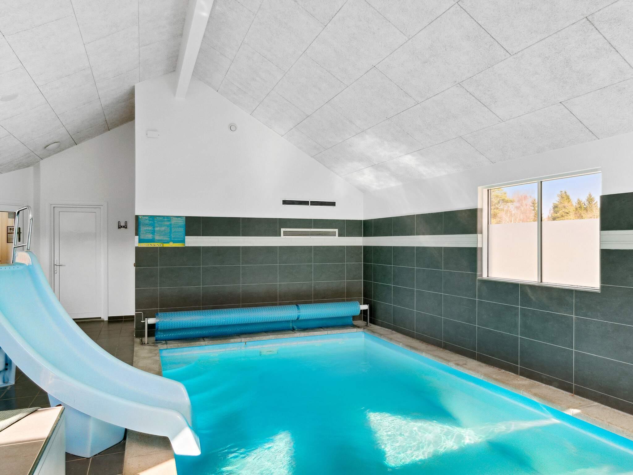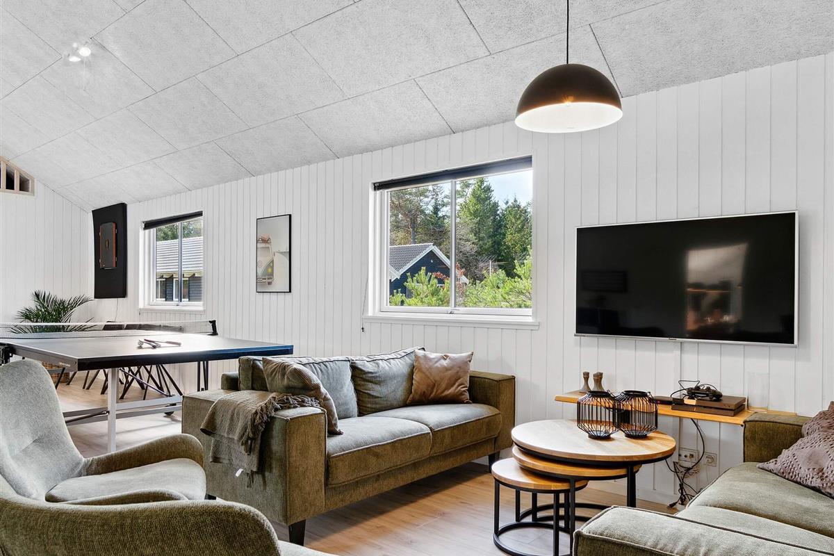 Dieses Pool- und Aktivitäts-Ferienhaus liegt in einem landschaftlich attraktiven Gebiet. Es ist modern eingerichtet, sehr geräumig und hat eine gute Raumaufteilung mit drei separaten Schlafbereichen, zu denen jeweils ein Bad gehört. Ein weiteres Badezimmer befindet sich im Poolbereich. Neben den neun Schlafzimmern gibt es einen geräumigen Hems/Schlafboden. Der Wohn-Essbereich ist geschmackvoll eingerichtet und verfügt u.a. über Stereoanlage mit CD-Spieler, Fernseher, DVD-Spieler, Hochstuhl, Sofabereich und Holzofen.
