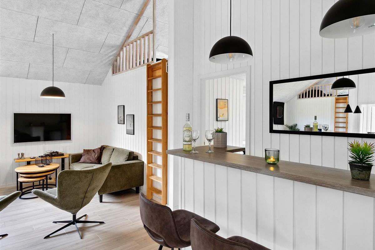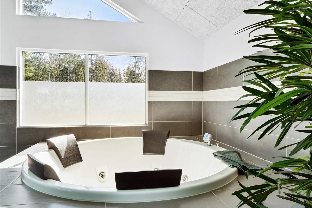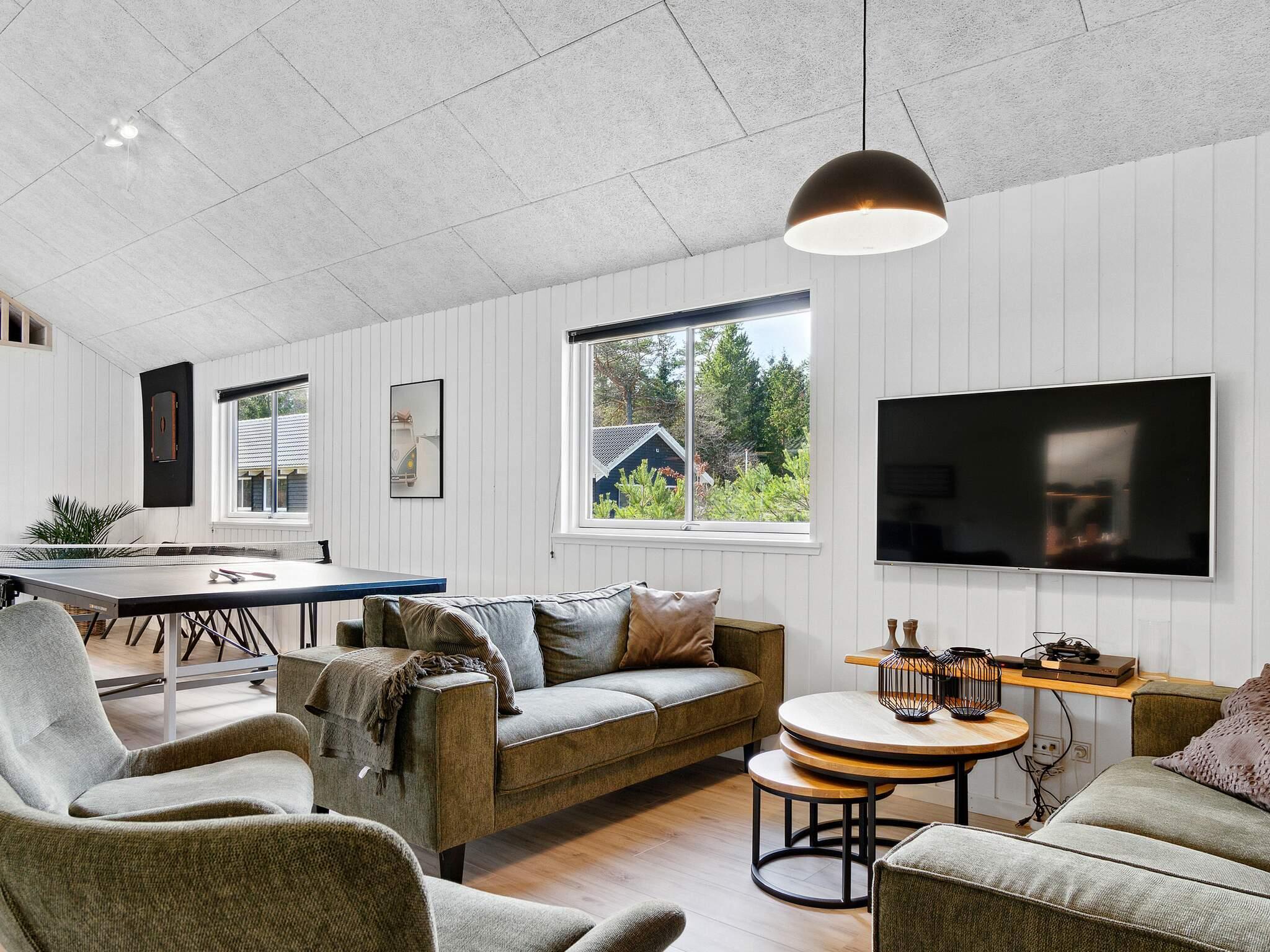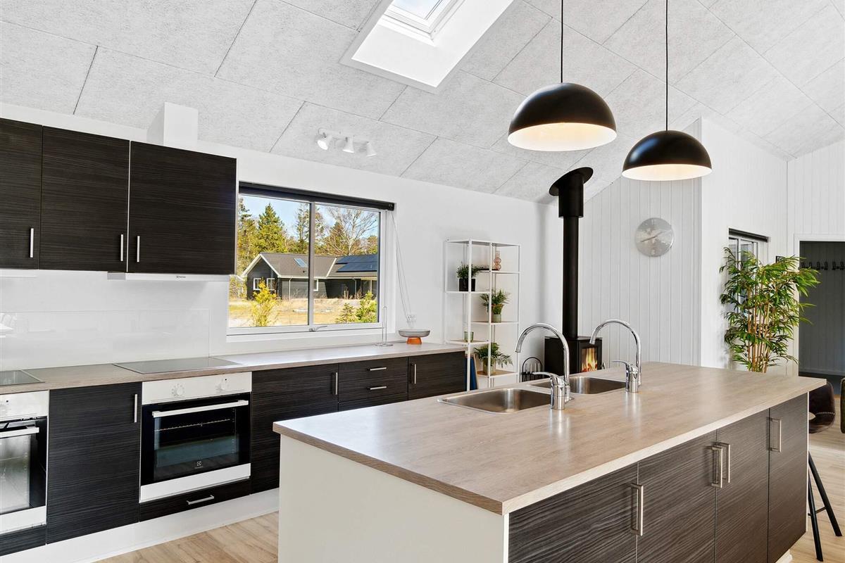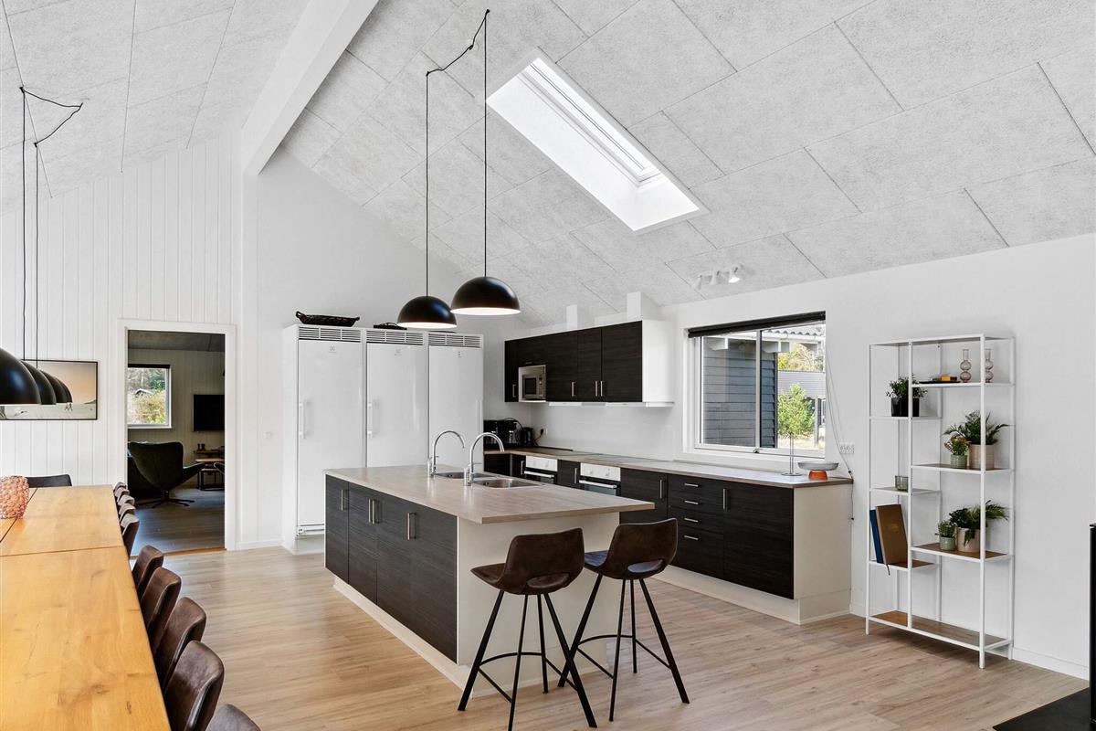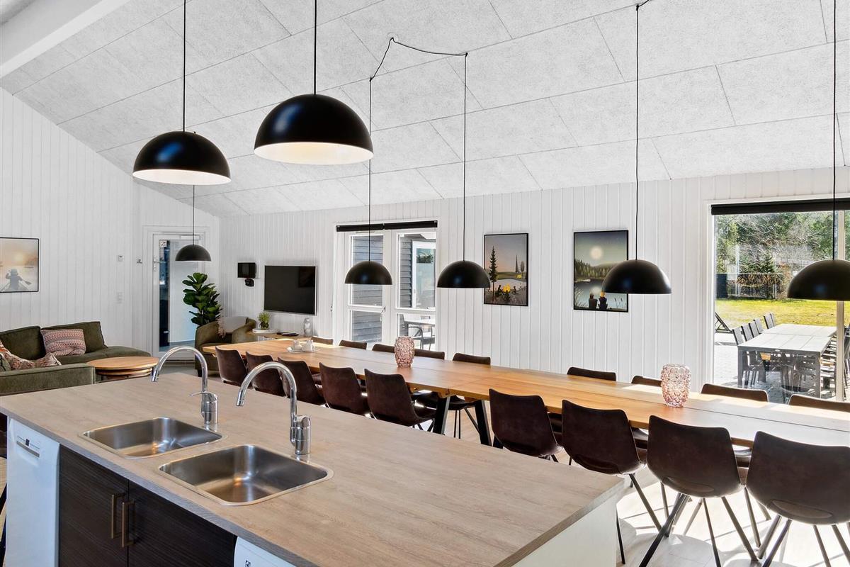 Dieses Pool- und Aktivitäts-Ferienhaus liegt in einem landschaftlich attraktiven Gebiet. Es ist modern eingerichtet, sehr geräumig und hat eine gute Raumaufteilung mit drei separaten Schlafbereichen, zu denen jeweils ein Bad gehört. Ein weiteres Badezimmer befindet sich im Poolbereich. Neben den neun Schlafzimmern gibt es einen geräumigen Hems/Schlafboden. Der Wohn-Essbereich ist geschmackvoll eingerichtet und verfügt u.a. über Stereoanlage mit CD-Spieler, Fernseher, DVD-Spieler, Hochstuhl, Sofabereich und Holzofen.