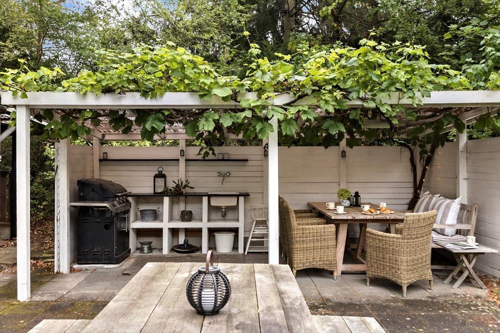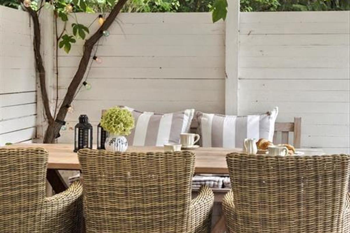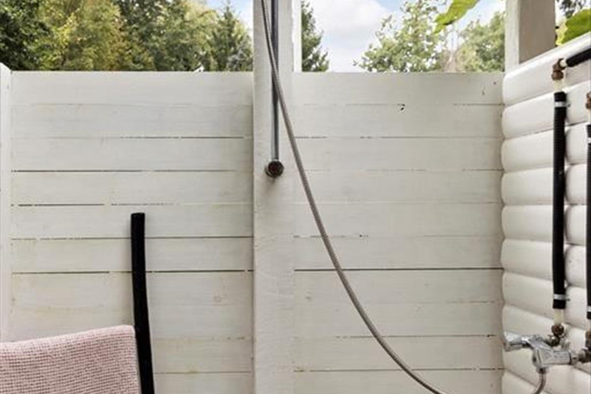 Der Garten ist ein privater und friedlicher Rückzugsort, an dem ihr von morgens bis abends entspannen könnt. Hier scheint die Sonne vom frühen Morgen bis zum Abend, und im gemütlichen Innenhof könnt ihr im überdachten Außenküchenbereich kochen und gemeinsam unter freiem Himmel essen. Wenn ihr nicht esst, könnt ihr euch auf der großen Holzterrasse in die Sonnenliege legen oder auf der Rasenfläche Ball spielen. Wenn der Abend hereinbricht, ist es besonders schön, die Feuerstelle anzuzünden und sich in Decken zu kuscheln. An warmen Tagen sorgt die Außendusche dafür, dass der Sand von den Füßen gespült ist, bevor ihr euch zurücklehnt und die Stille genießt.