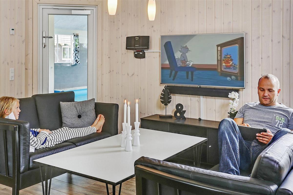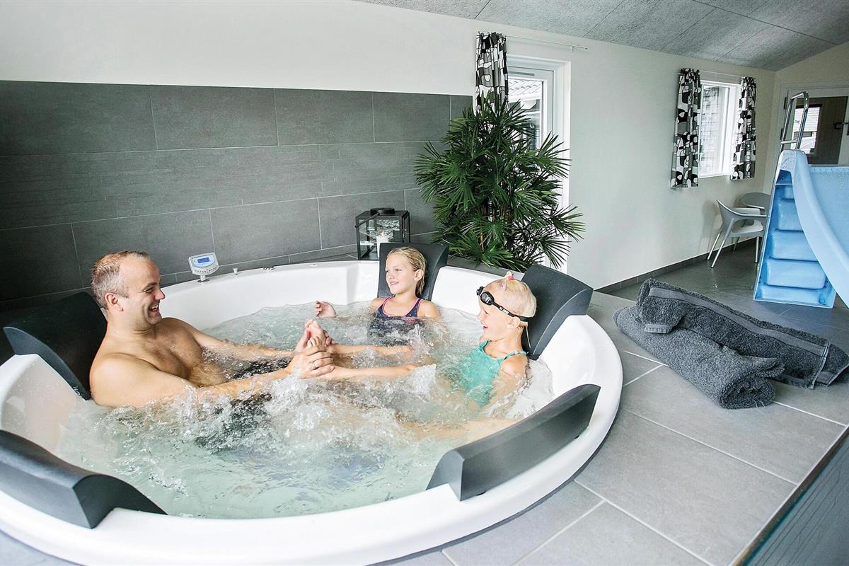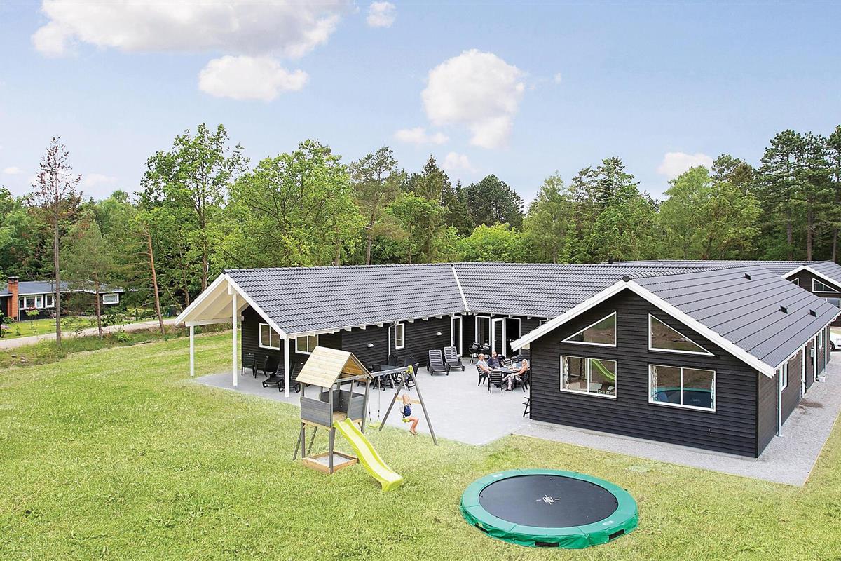 Fantastisch vakantiehuis met acht goede slaapkamers, een slaapzolder en vier badkamers. De slaapkamers zijn ingedeeld in 3 ruimtes, elke ruimte heeft zijn eigen badkamer. Het interieur bestaat uit gezellige meubels en bevat alle apparatuur die u nodig heeft om u thuis te voelen. De gecombineerde woon- en keukenruimte bevindt zich in het midden van het huis en vormt een oase van gezelligheid rond het koken en ontspannen. Vele gezellige uurtjes zijn ook gegarandeerd voor de houtkachel, waar u ook kunt genieten van het grote tv-pakket. De activiteitenruimte naast de woonkamer zorgt voor afwisseling met darts, pool, tafelvoetbal, tafeltennis, bar, koelkast, tv en PlayStation4. Ook aan de kinderen is gedacht met 2 lofts voor spel op de ene (speelgoed, TV, DVD) en slapen op de andere. De zwembadruimte nodigt uit tot urenlang waterplezier, u zult zich ook goed voelen in de whirlpool voor 6 personen en in de sauna. Evenzo zult u ontspannen op het terras en de lange, zwoele avonden zijn perfect om te barbecueën. De deur naar het zwembad heeft een kinderslot. U woont midden in het bos. In de tuin staan een schommel, speeltoren, glijbaan, zandbak en trampoline (gebruik op eigen verantwoordelijkheid). Het huis is gunstig gelegen voor uitstapjes naar musea, kastelen en binnen een uur bent u in Kopenhagen.