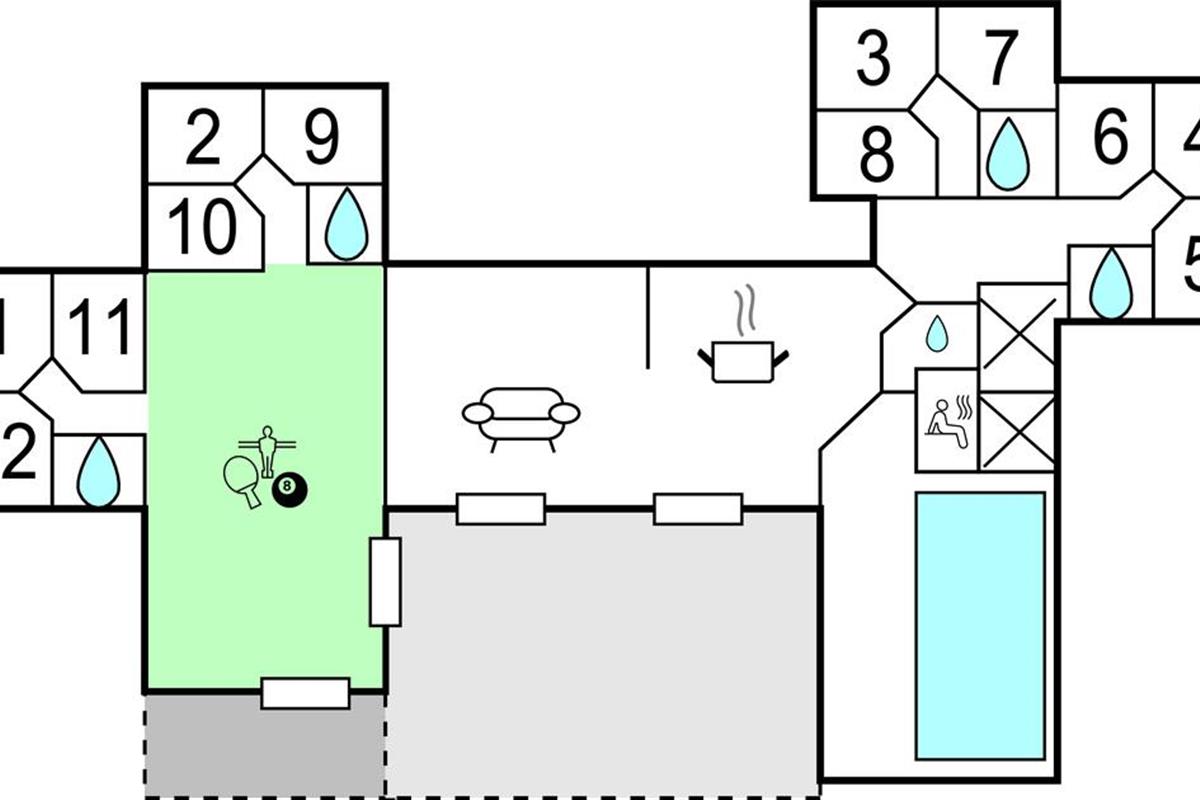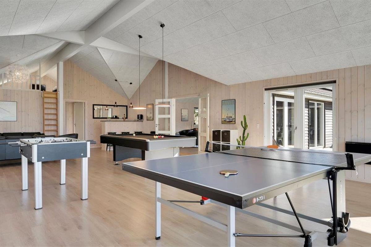 Ongeacht het weer en het seizoen biedt dit vakantiehuis een actieve vakantie. Er is een grote activiteitenruimte uitgerust met een pooltafel, Playstation 4, tafeltennis, darts en tafelvoetbal. Speel de spelletjes en geniet van een koude verfrissing in de eigen bar met koelkast, die zich ook in de activiteitenruimte bevindt. Buiten zijn er ook veel leuke activiteiten voor alle leeftijden.