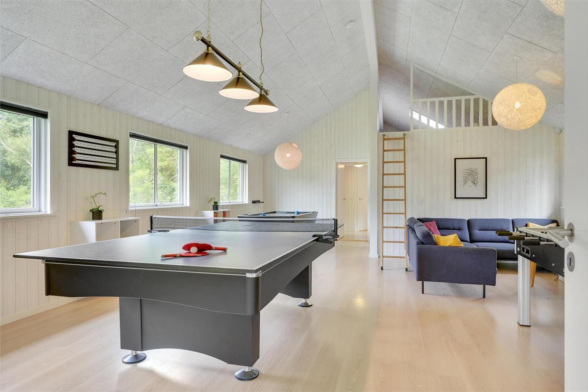 Dit comfortabele huis belooft je een vakantie in een klasse apart. Veel warm daglicht stroomt binnen door een grote glazen pui, terwijl je buiten kunt genieten van een prachtig uitzicht op de groene tuin. Maak het jezelf gemakkelijk op de grote bank met een kopje koffie of breng hier een gezellige spelletjesavond door. Als je liever iets sportievers doet, zwem dan een rondje in het binnenzwembad of speel tafeltennis. Geniet daarna van ontspannende uurtjes in de whirlpool of sauna.