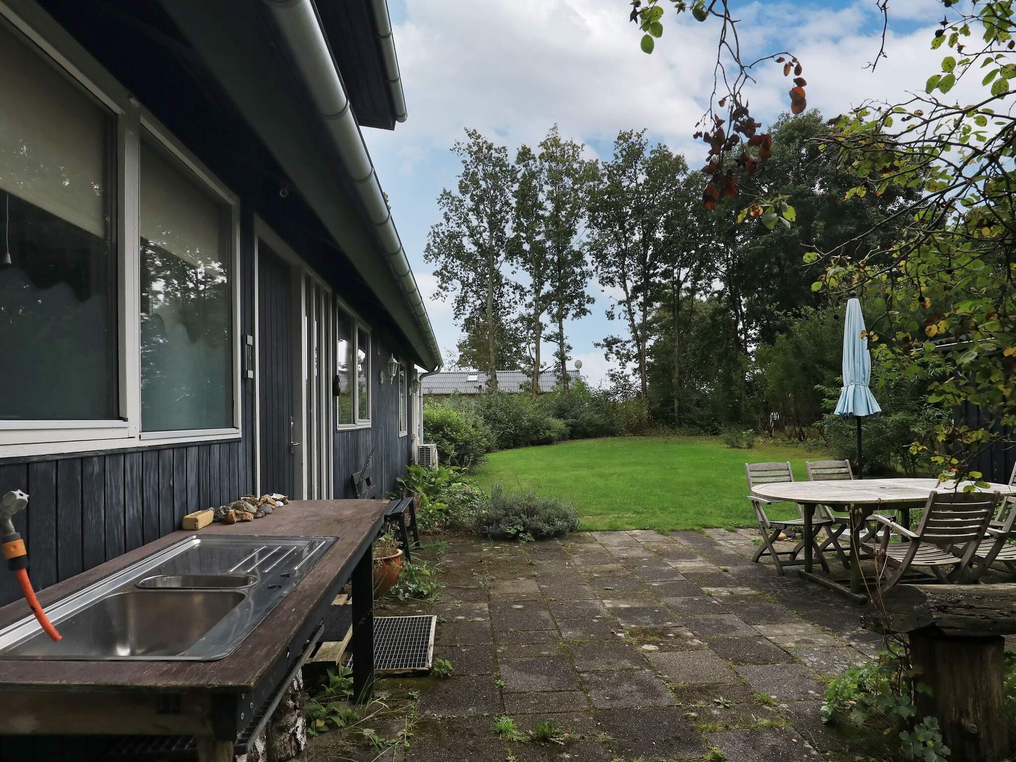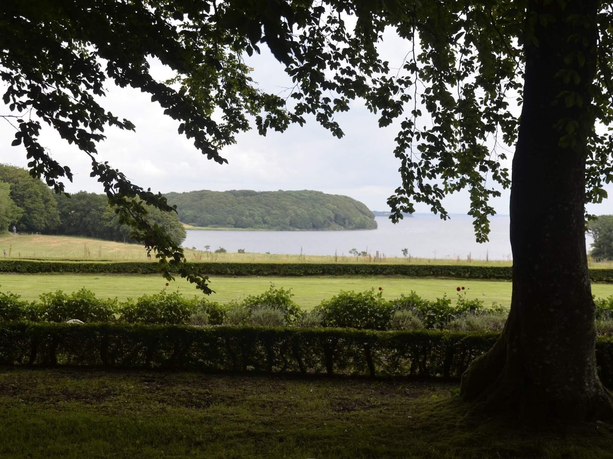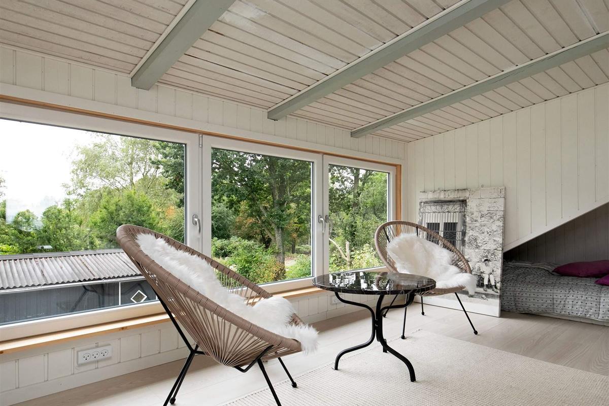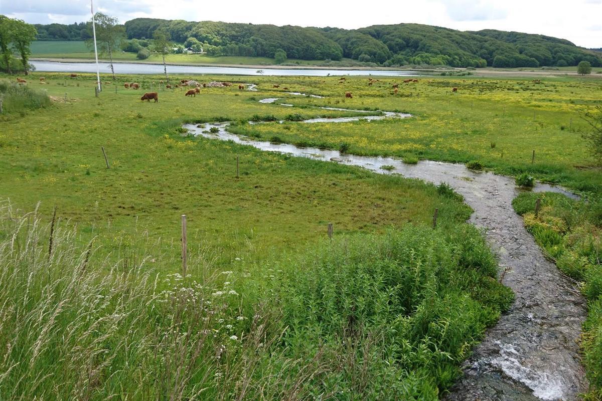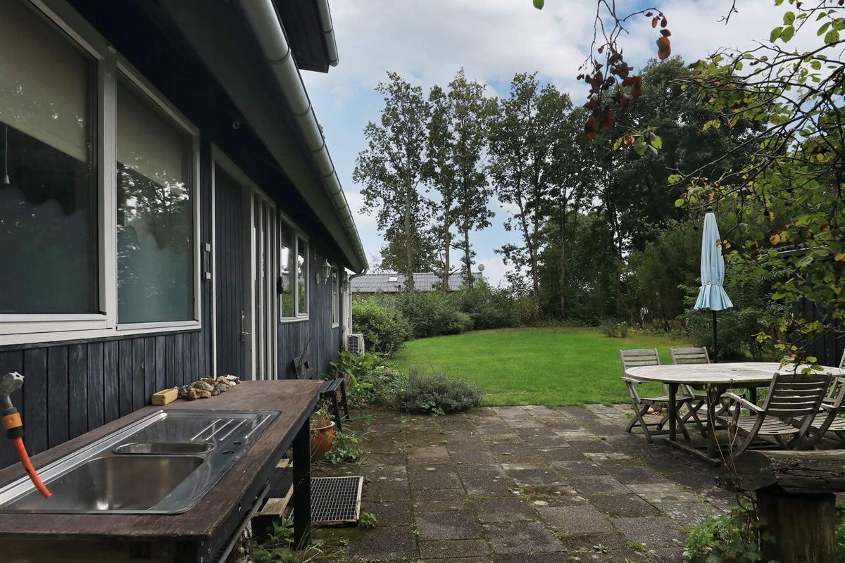 Sie wohnen hier auf einem weitläufigen Naturgrundstück mit Ausblick zum nahen Limfjord. Mehrere Holzterrassen im Außenbereich, eine davon teilweise überdacht.