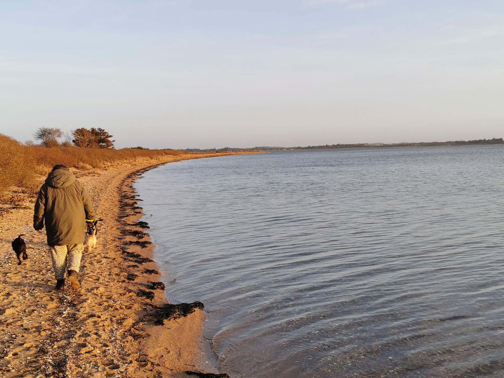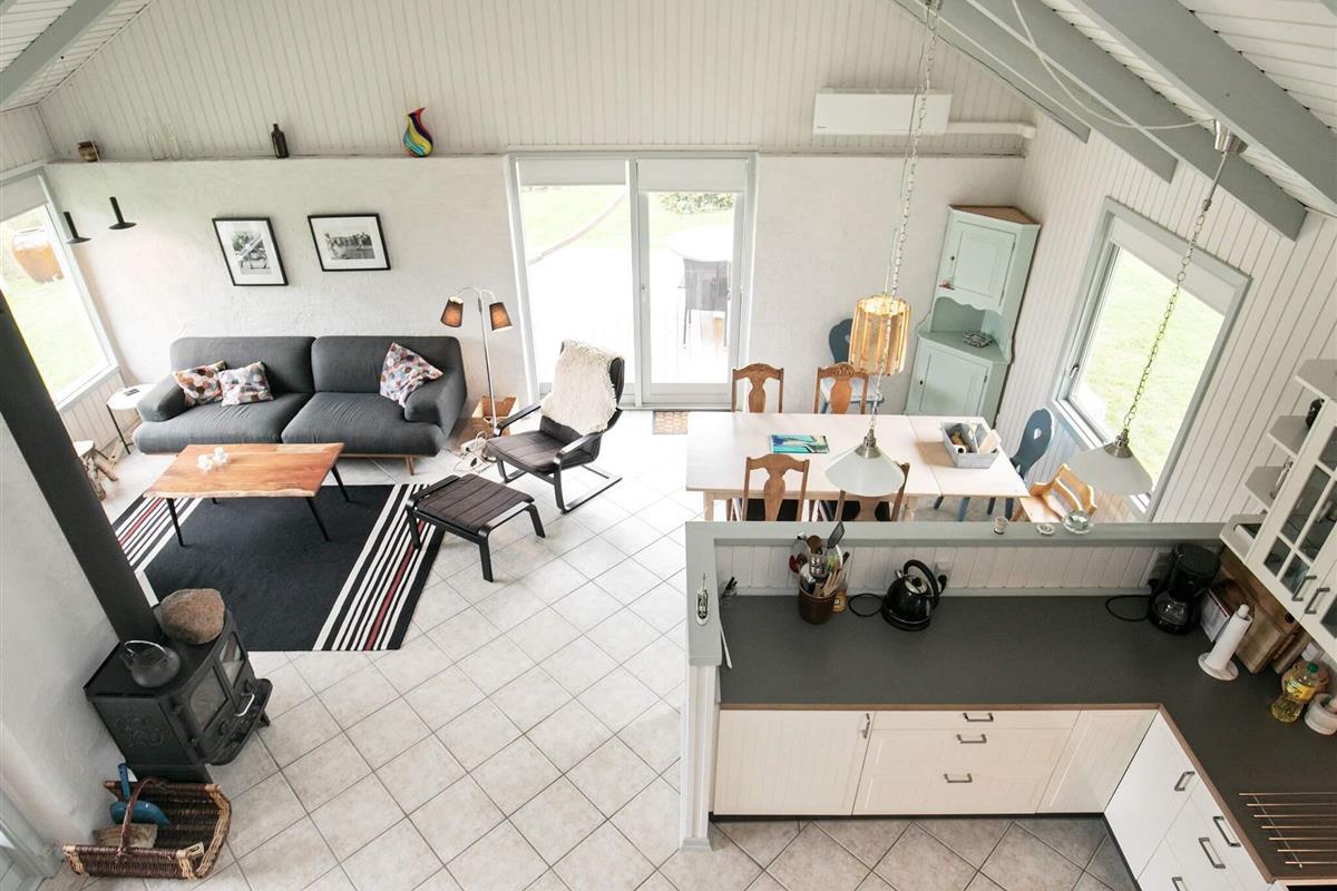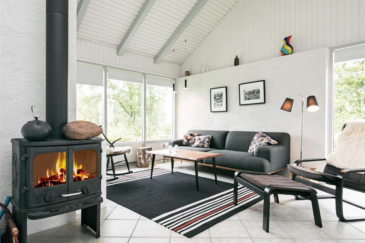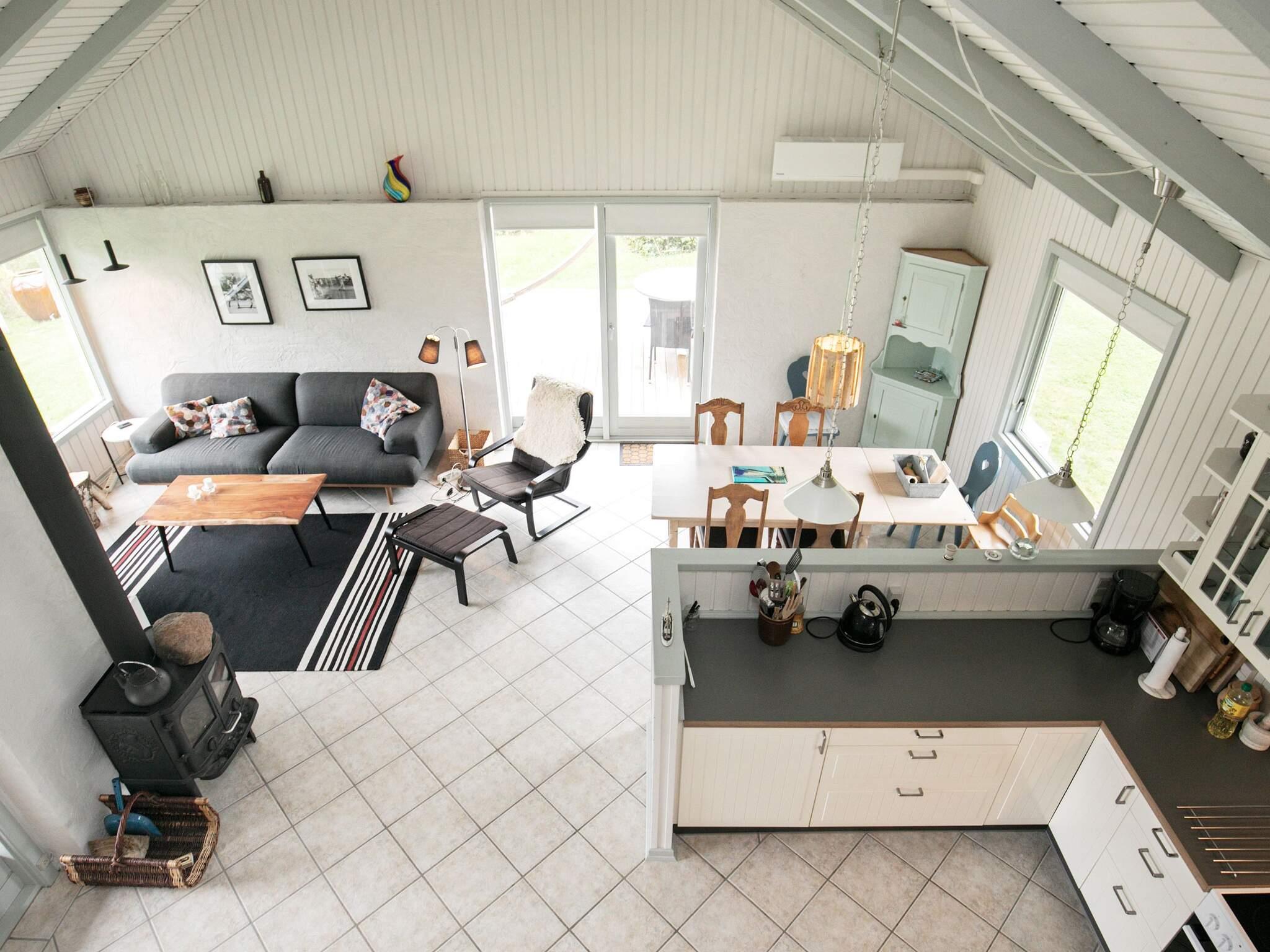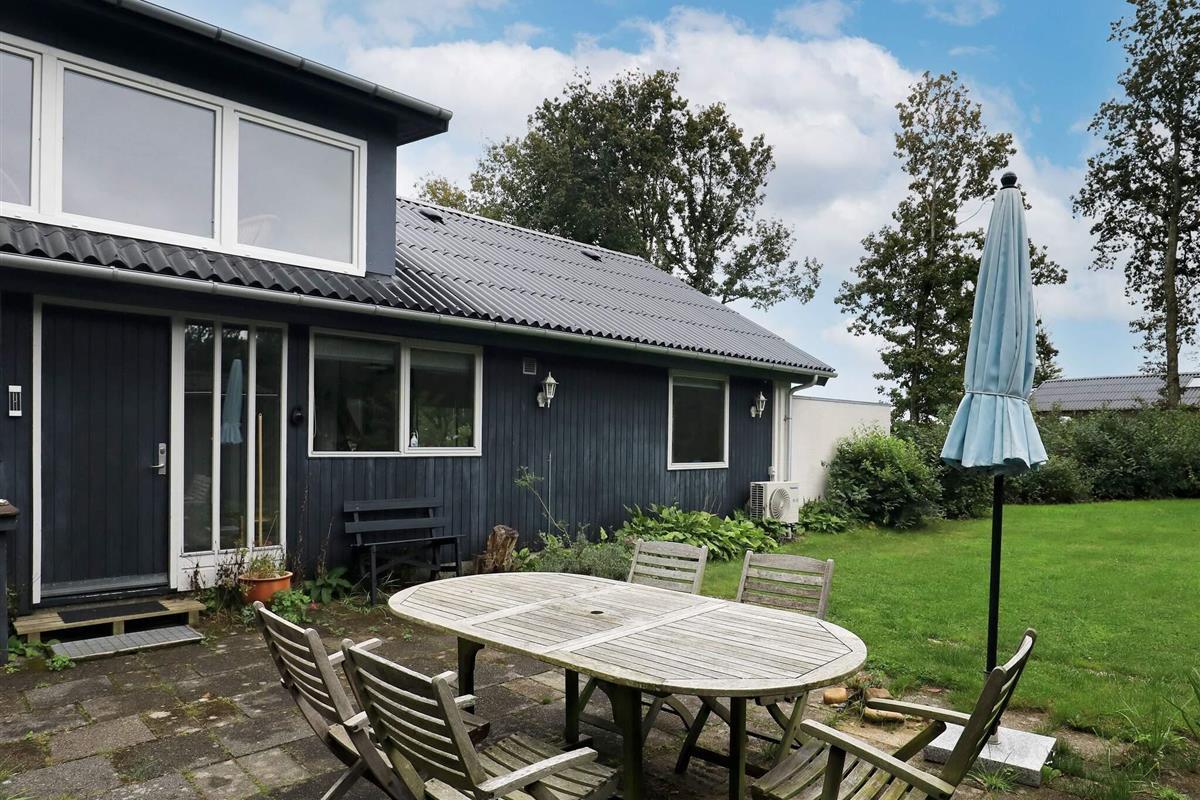 Sie wohnen hier auf einem weitläufigen Naturgrundstück mit Ausblick zum nahen Limfjord. Mehrere Holzterrassen im Außenbereich, eine davon teilweise überdacht.