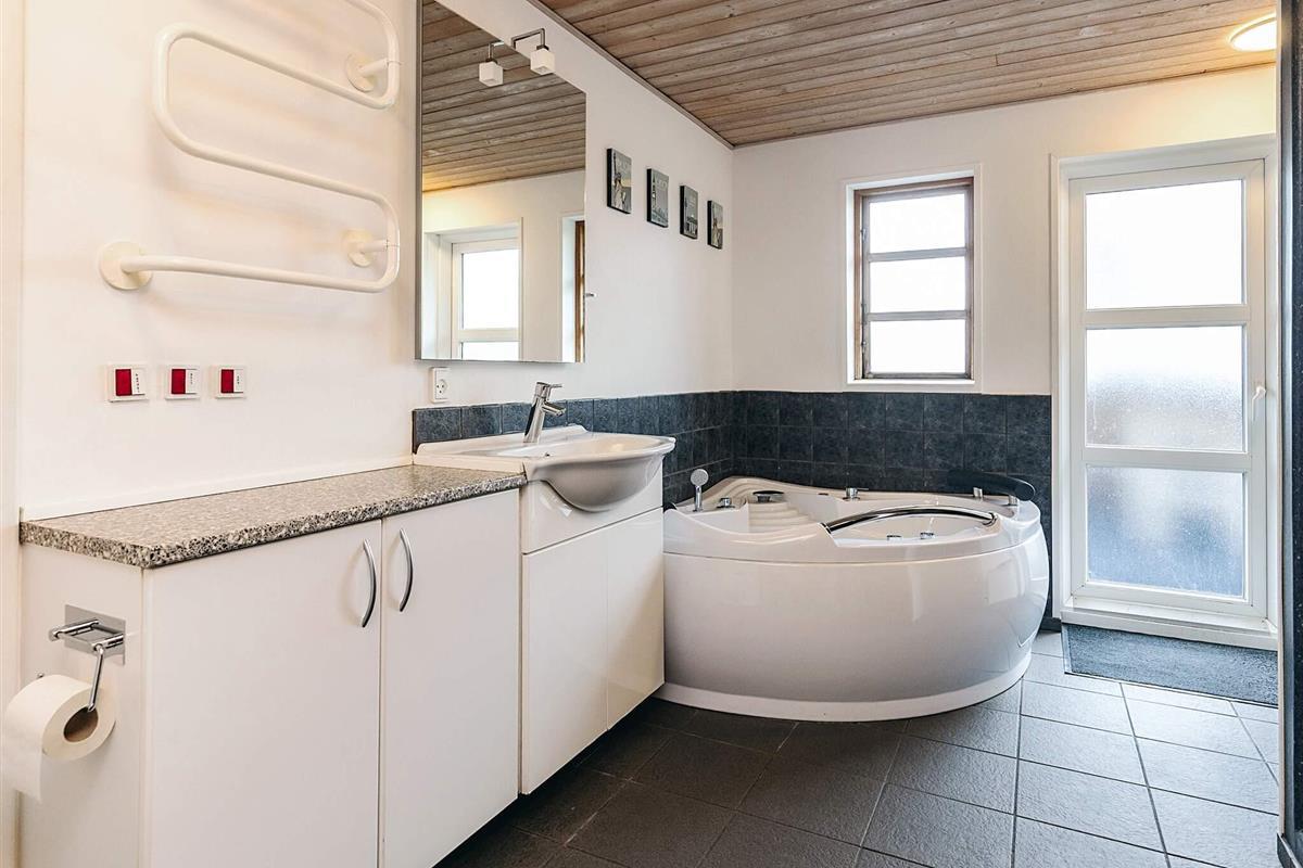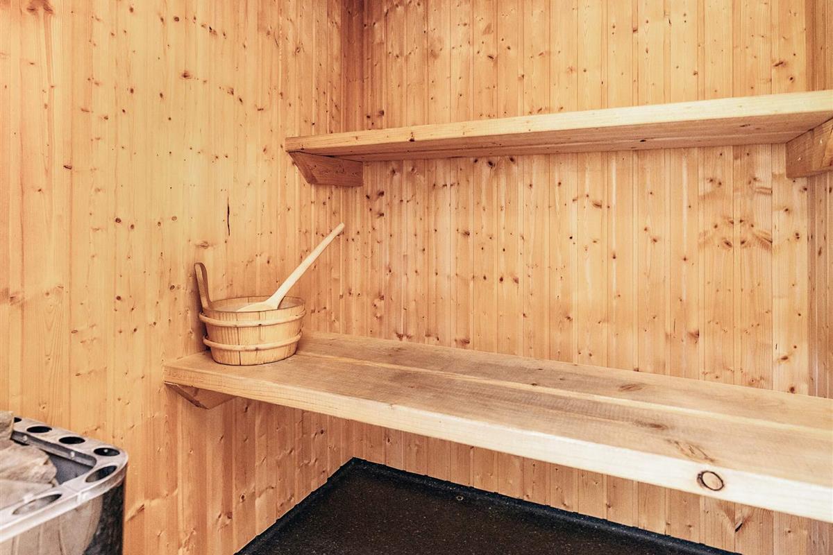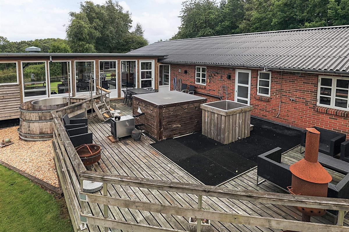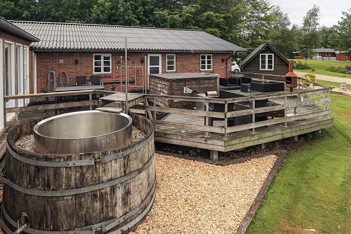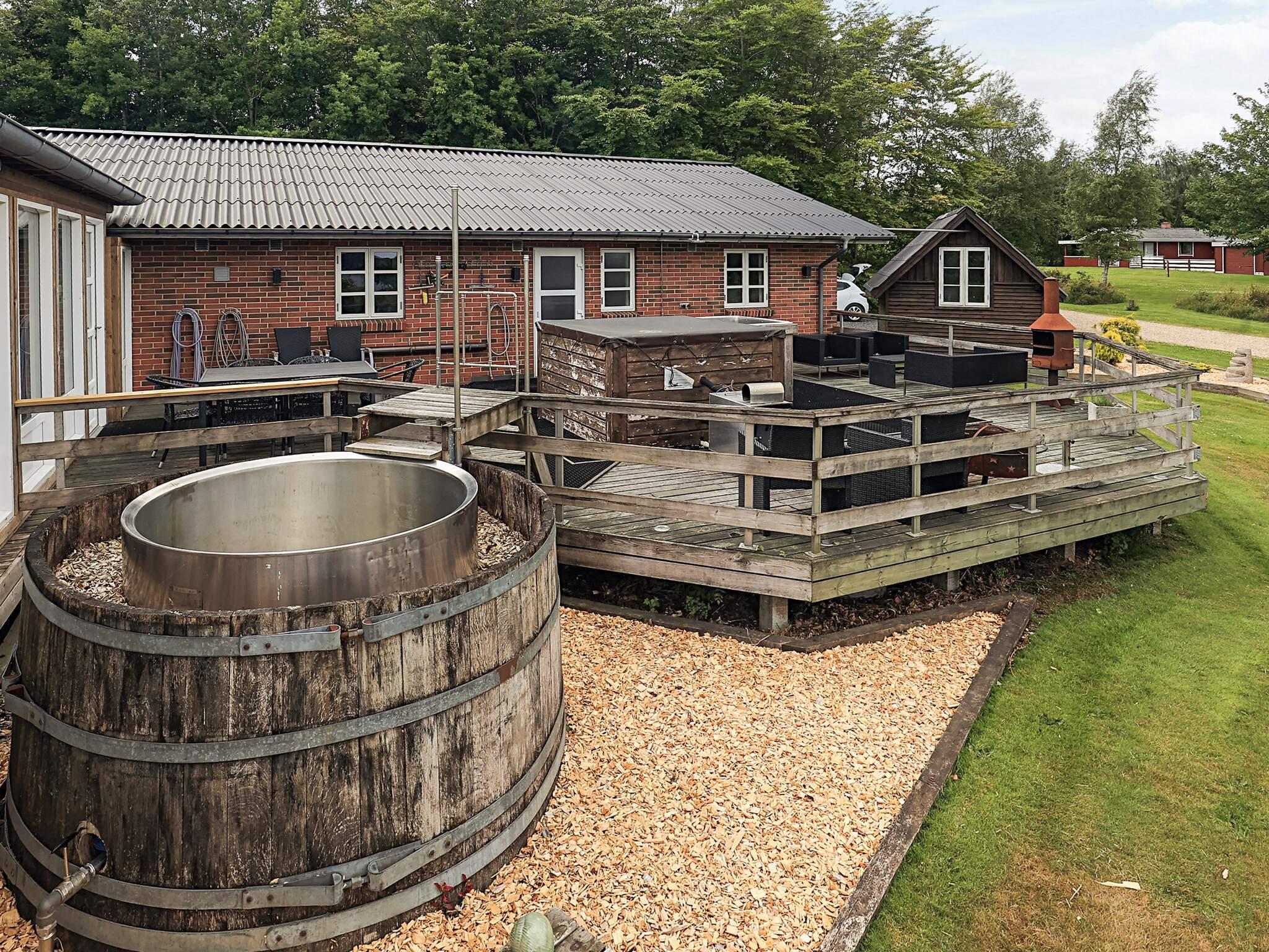 Ferienhaus mit Sauna und Whirlpool drinnen sowie Badezuber und