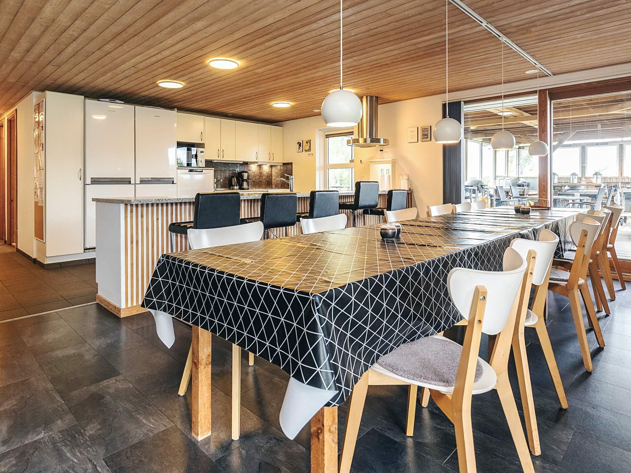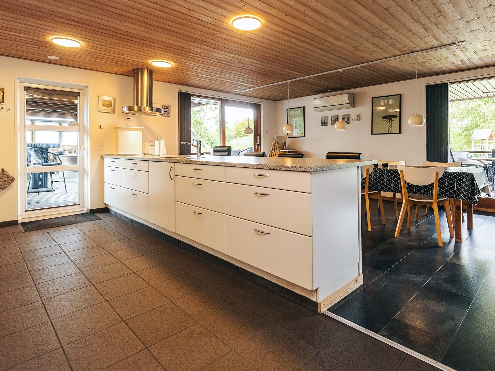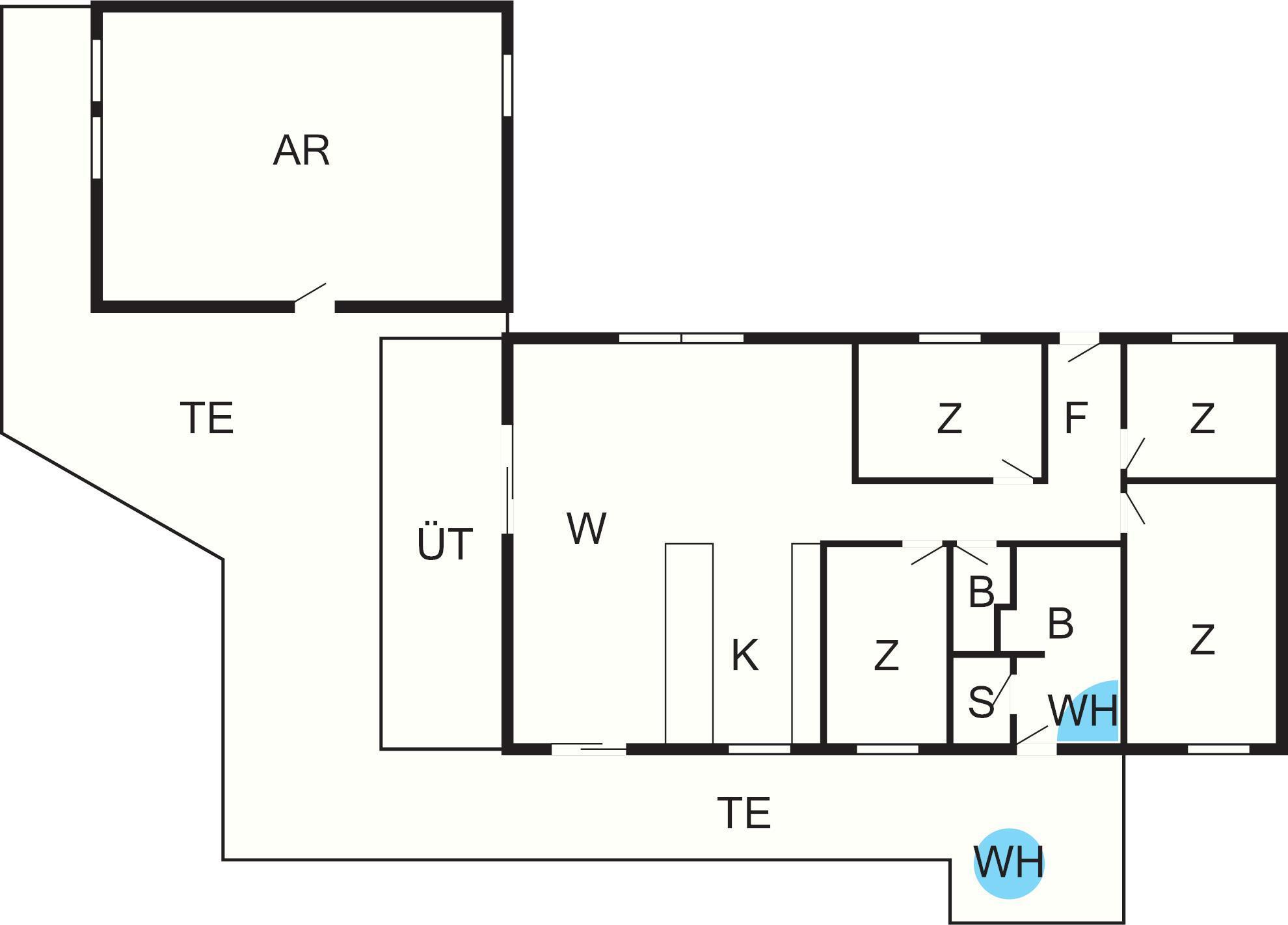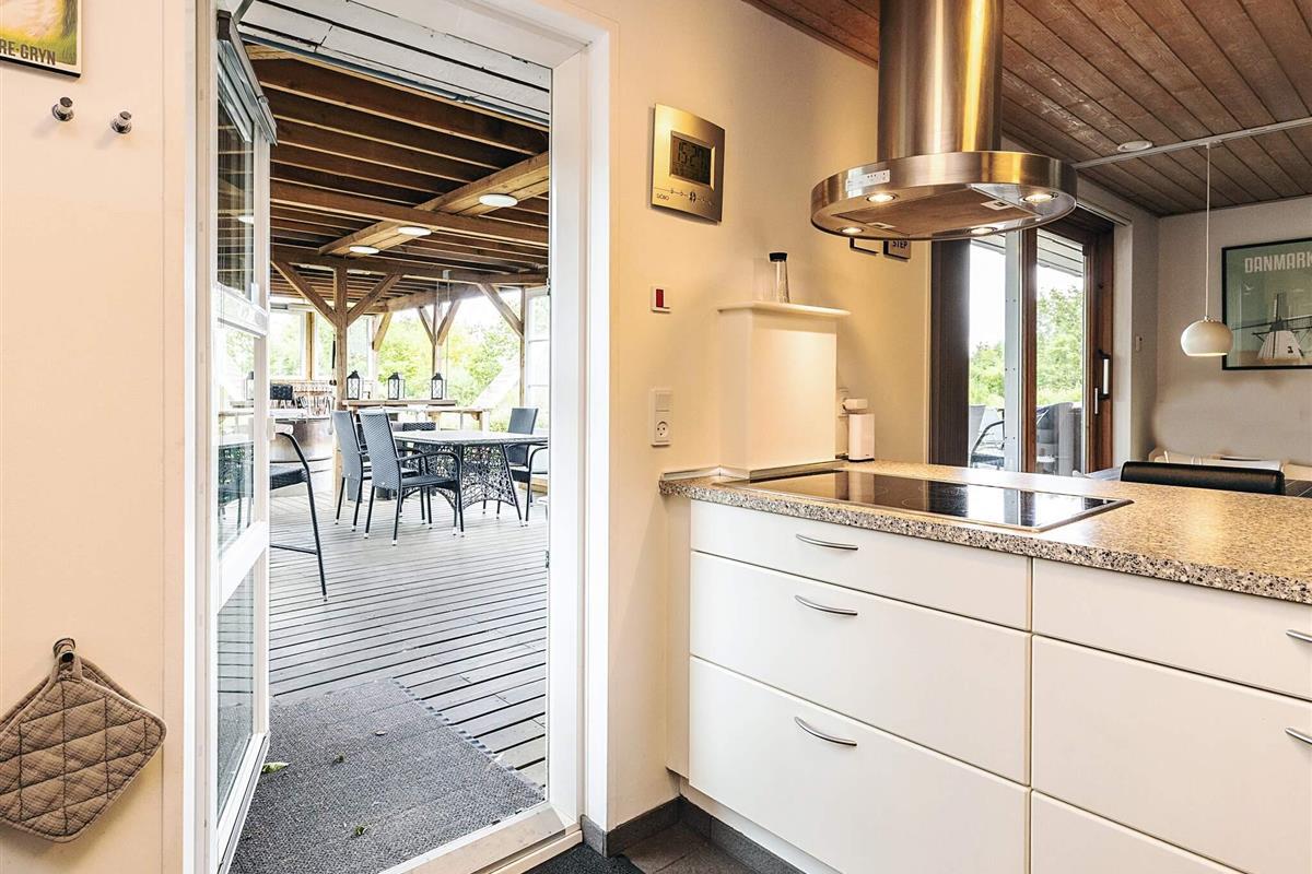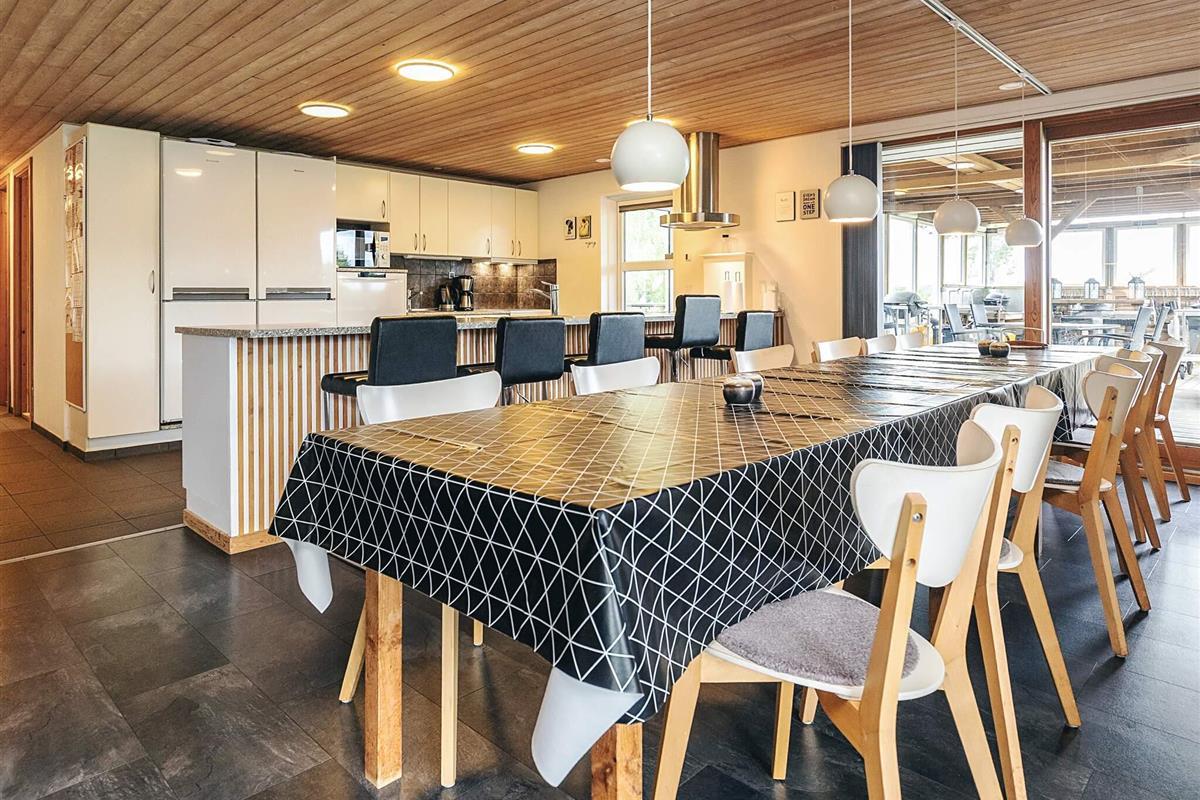 eine 235 m² große Terrasse, wovon 50 m² überdacht sind und bietet Ihnen Aussicht auf den Fjord. Für die größeren Kinder ist ein isolierter Shelter vorhanden.