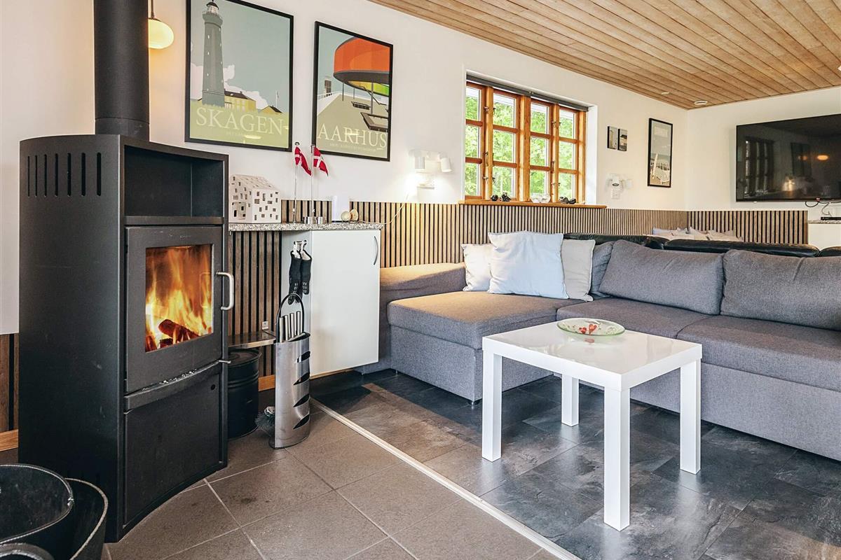 Zum Haus gehören ein großer Aufenthaltsbereich mit Holzofen, vier