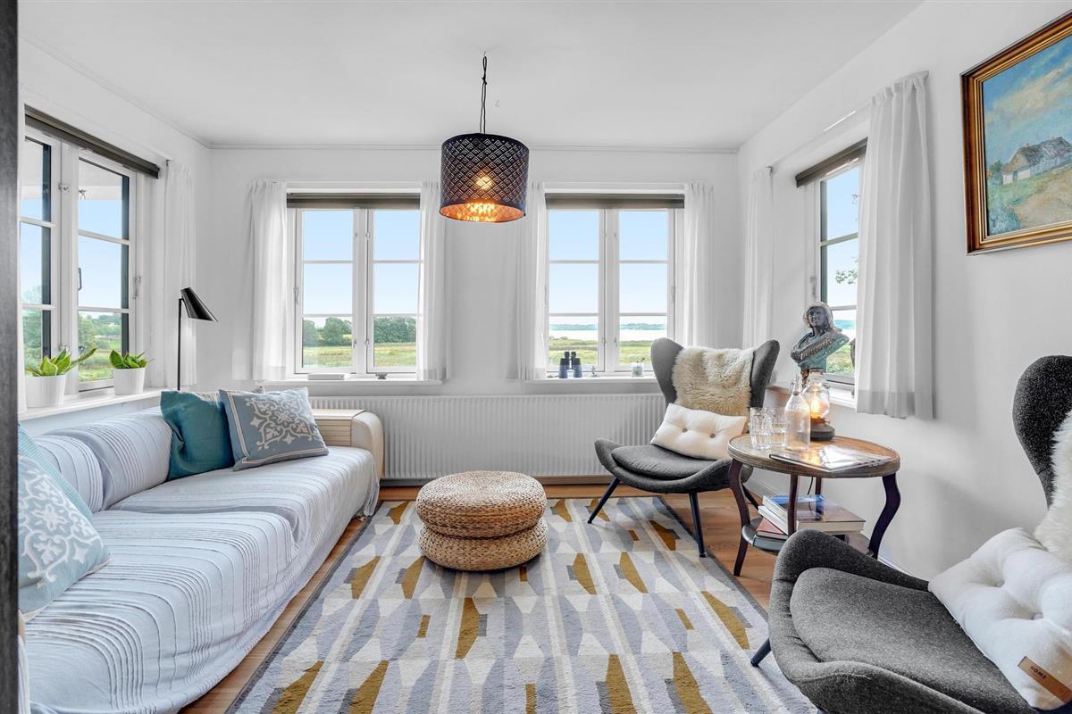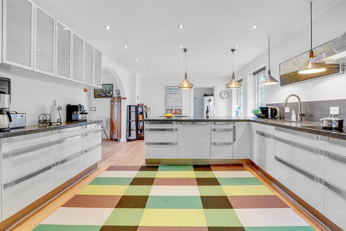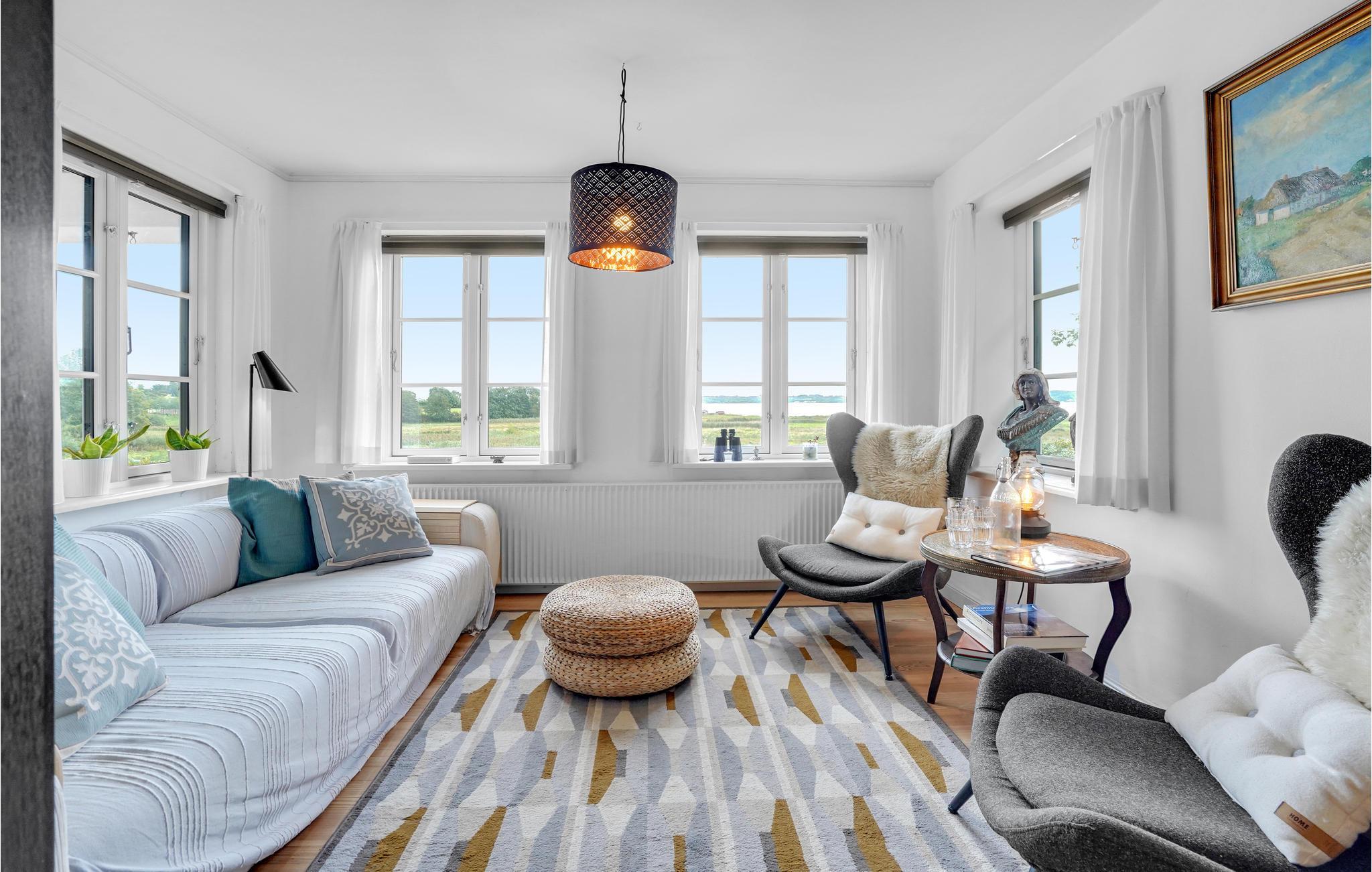Prachtig gerenoveerd vakantiehuis met rieten dak en panoramisch uitzicht op de Aabenraa fjord, op een groot perceel met terrassen.