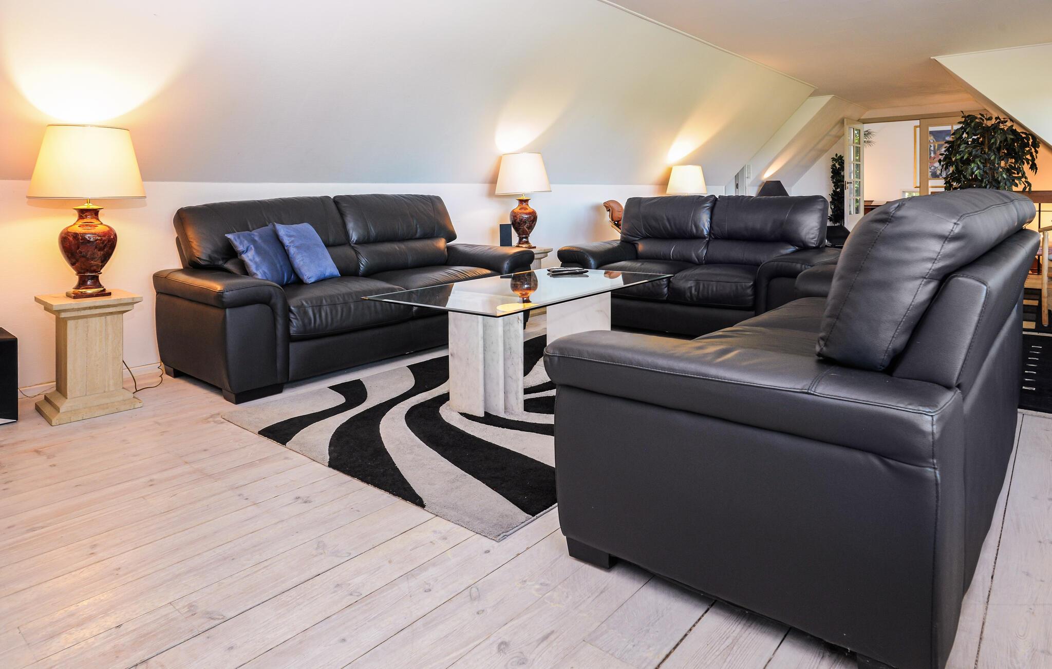 Verheug je op je volgende vakantie in dit vakantiehuis in Båring Ege, dat modern comfort en een gezellige sfeer combineert. Je ruime vakantiehuis is idyllisch gelegen dicht bij het strand van Båring en biedt genoeg ruimte voor een groot gezin. Het maakt ook indruk met zijn gezellige en stijlvolle interieur. Begin de dag met een ontspannen ontbijt aan de mooie eettafel met uitzicht op de idyllische tuin. Maak daarna plannen voor de dag in de comfortabele zithoek. Of trek je terug op het balkon op de eerste verdieping en geniet van de rust in de loungemeubels onder de parasol.