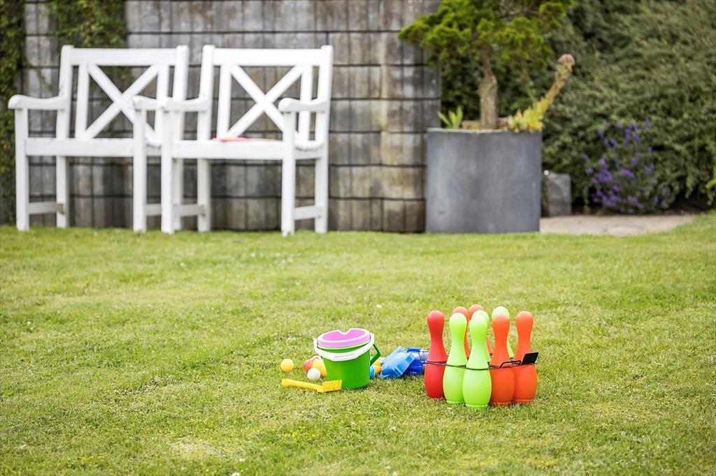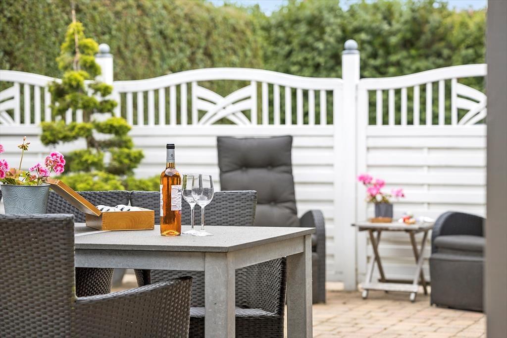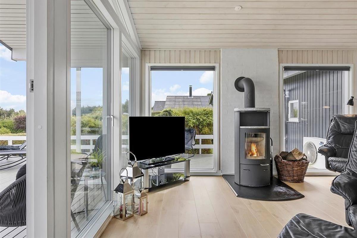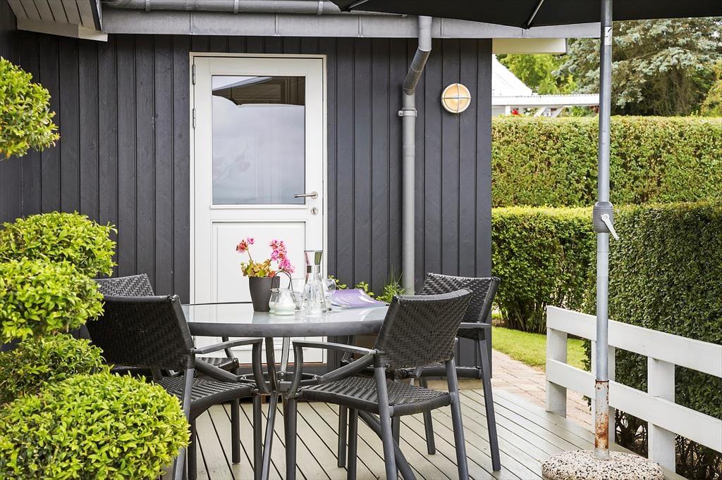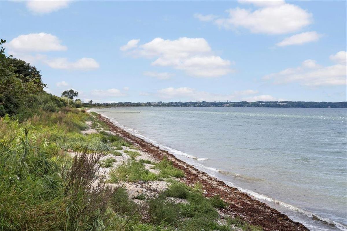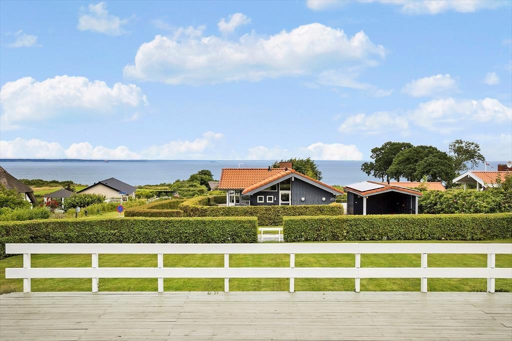 Das Ferienhaus bietet einen großen Terrassenbereich mit einem fantastischen Panoramablick über den Kleinen Belt. Hier kannst du den Tag mit Sonnenbaden verbringen, Mahlzeiten unter freiem Himmel genießen oder einfach mit einem guten Buch entspannen. Die Treppe von der Terrasse führt dich in den schönen Garten, wo Kinder spielen können und du einen friedlichen Platz für eine ruhige Auszeit findest. Der Morgenkaffee schmeckt besonders gut mit dem Meerblick im Hintergrund, und die Abende werden magisch mit Grillessen und Sonnenuntergängen über dem Wasser.