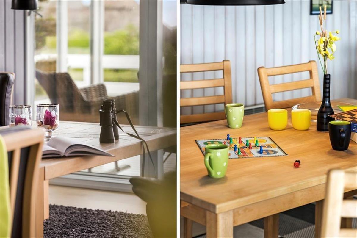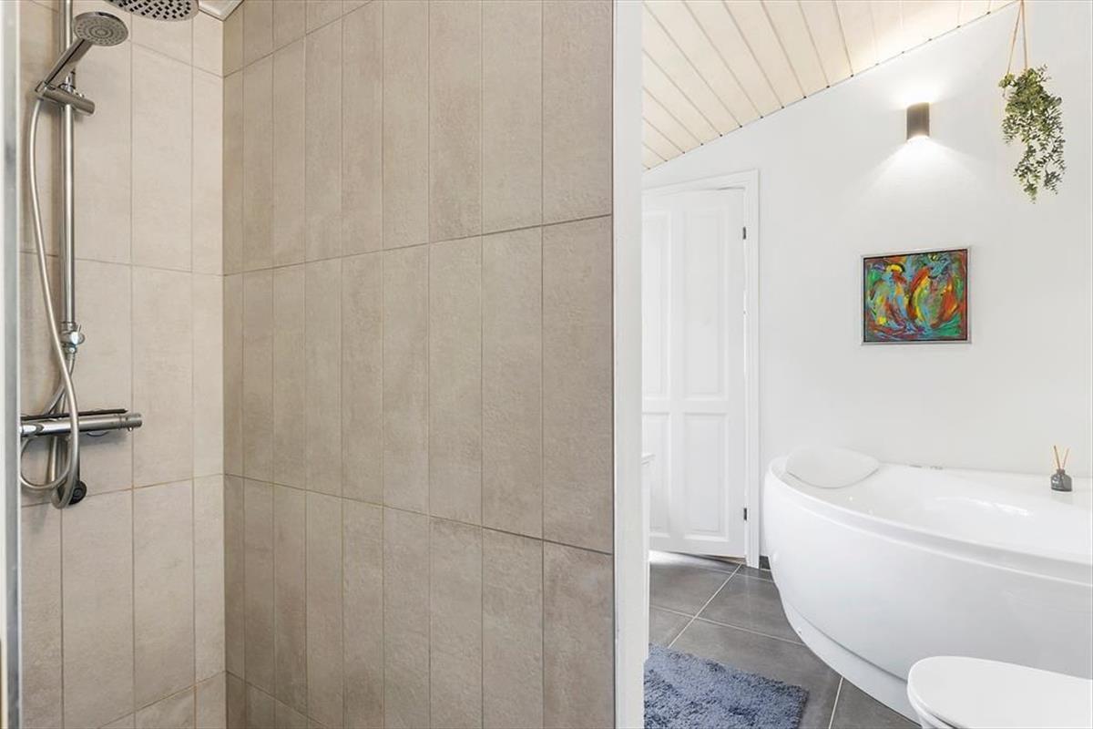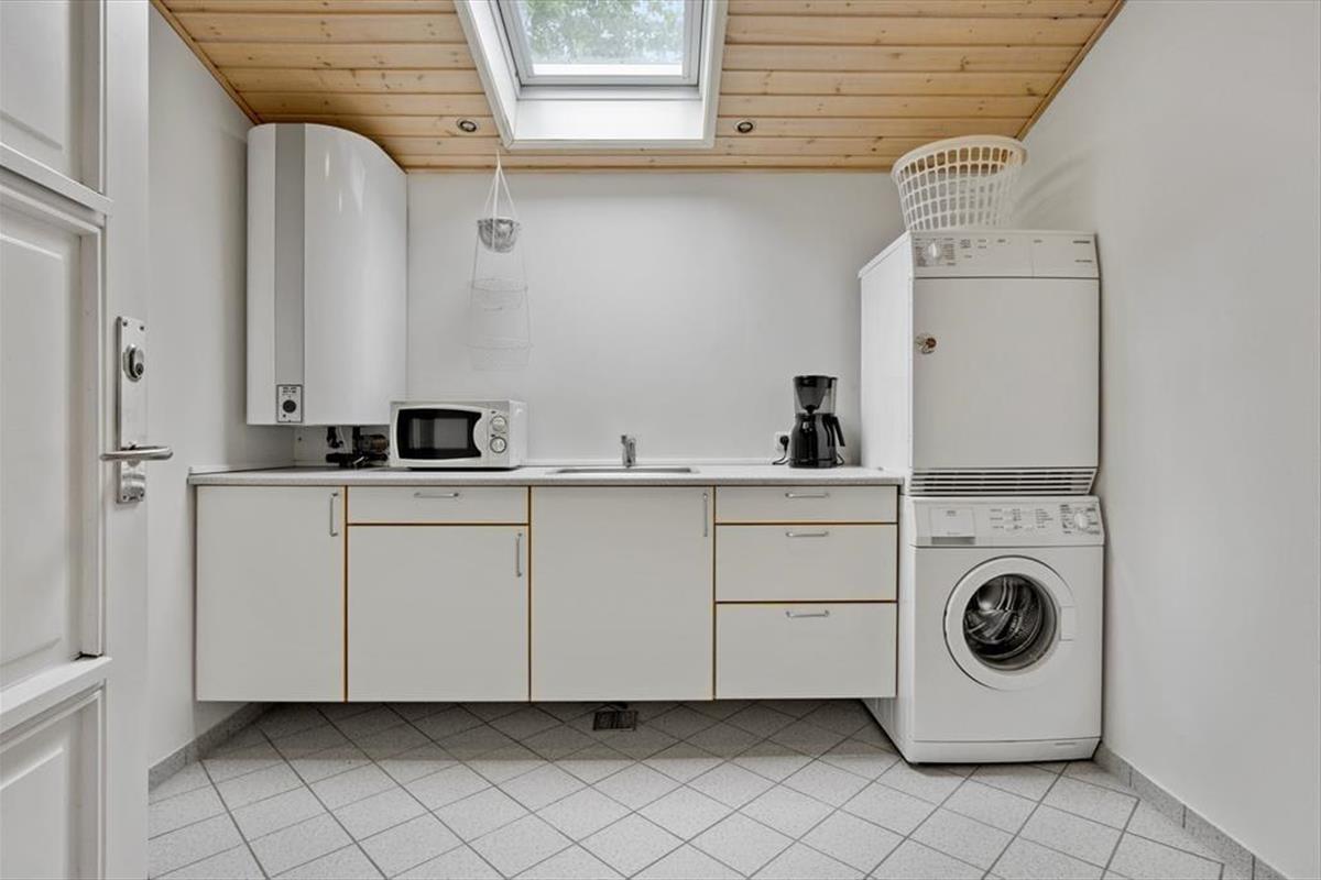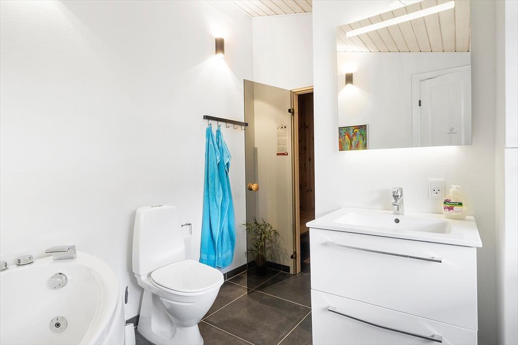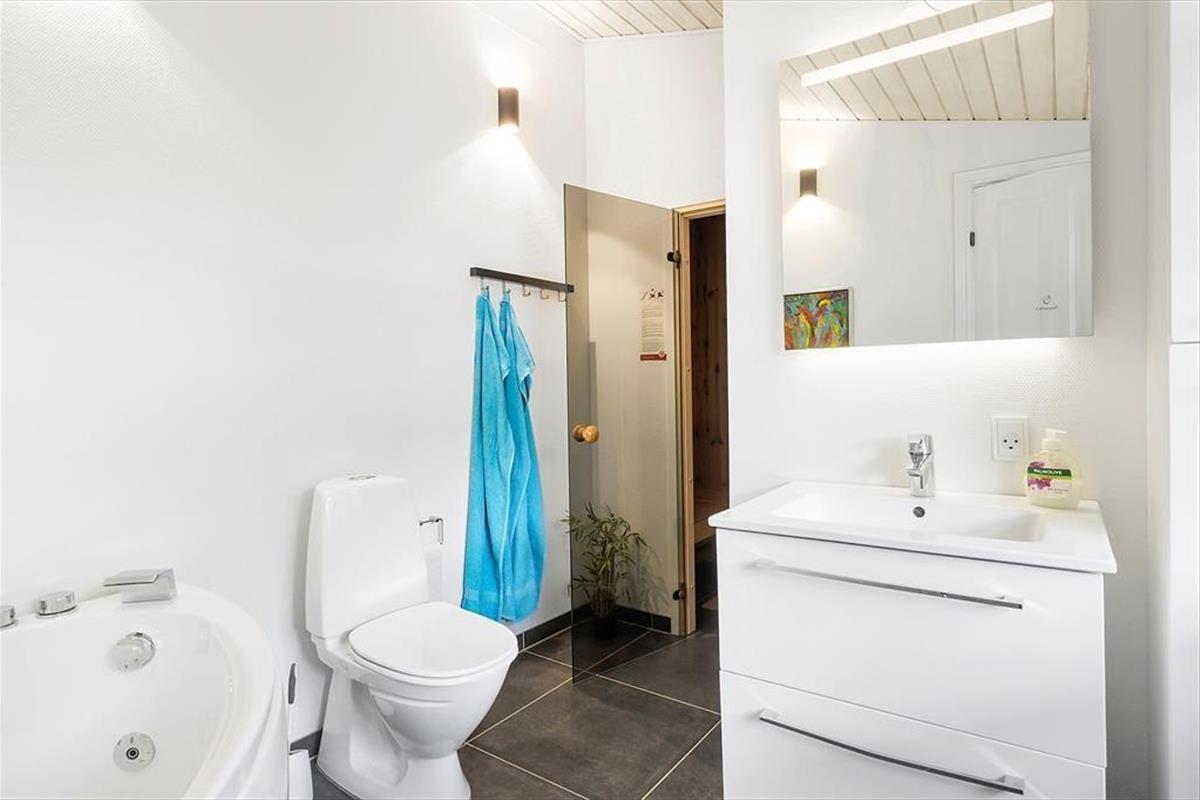 Beim Betreten des Ferienhauses empfängt dich eine geräumige und helle Umgebung. Die offene Küche geht nahtlos in das Wohnzimmer über, wo die großen Fenster viel Licht hereinlassen und einen wunderbaren Blick aufs Wasser bieten. Hier kannst du dich an kühlen Abenden mit Familie und Freunden um den Kamin versammeln und das Spiel der Flammen genießen. Das schöne Badezimmer bietet sowohl Sauna als auch Whirlpool, wo du dich nach einem Tag voller Aktivitäten entspannen und verwöhnen lassen kannst. Es gibt auch einen großen Waschraum mit Waschmaschine und Trockner, was es einfach macht, die Ferienwäsche im Griff zu behalten.