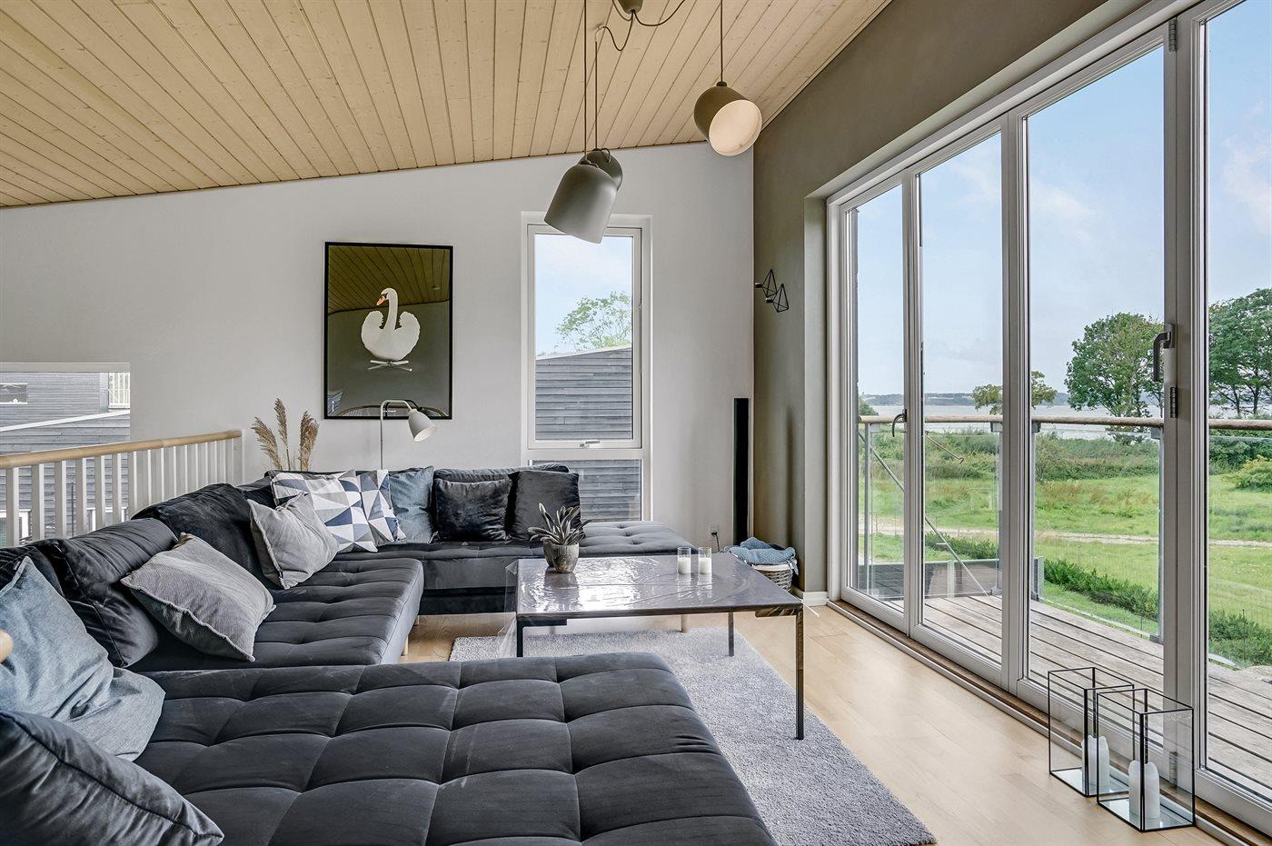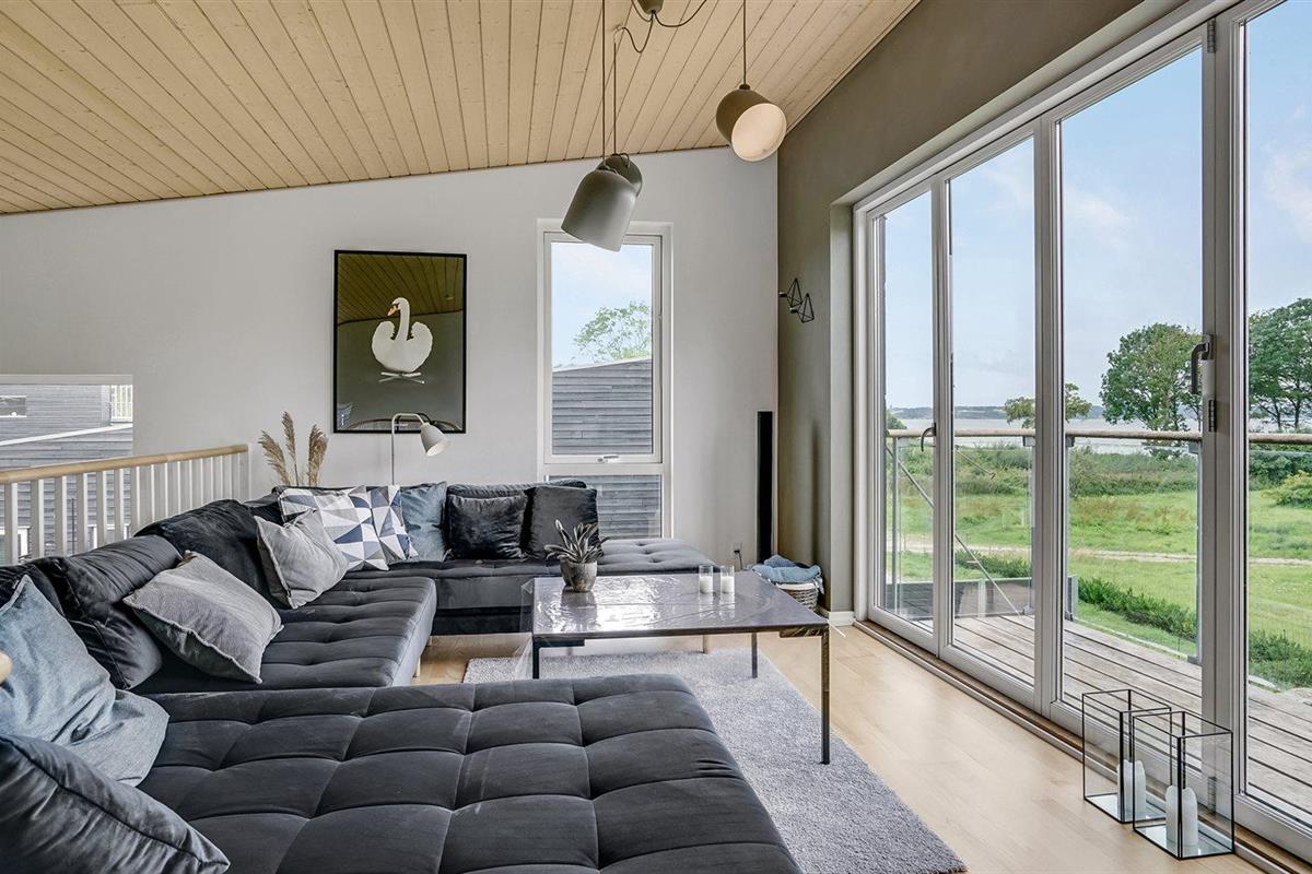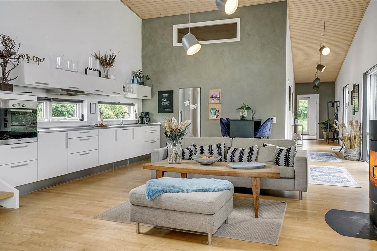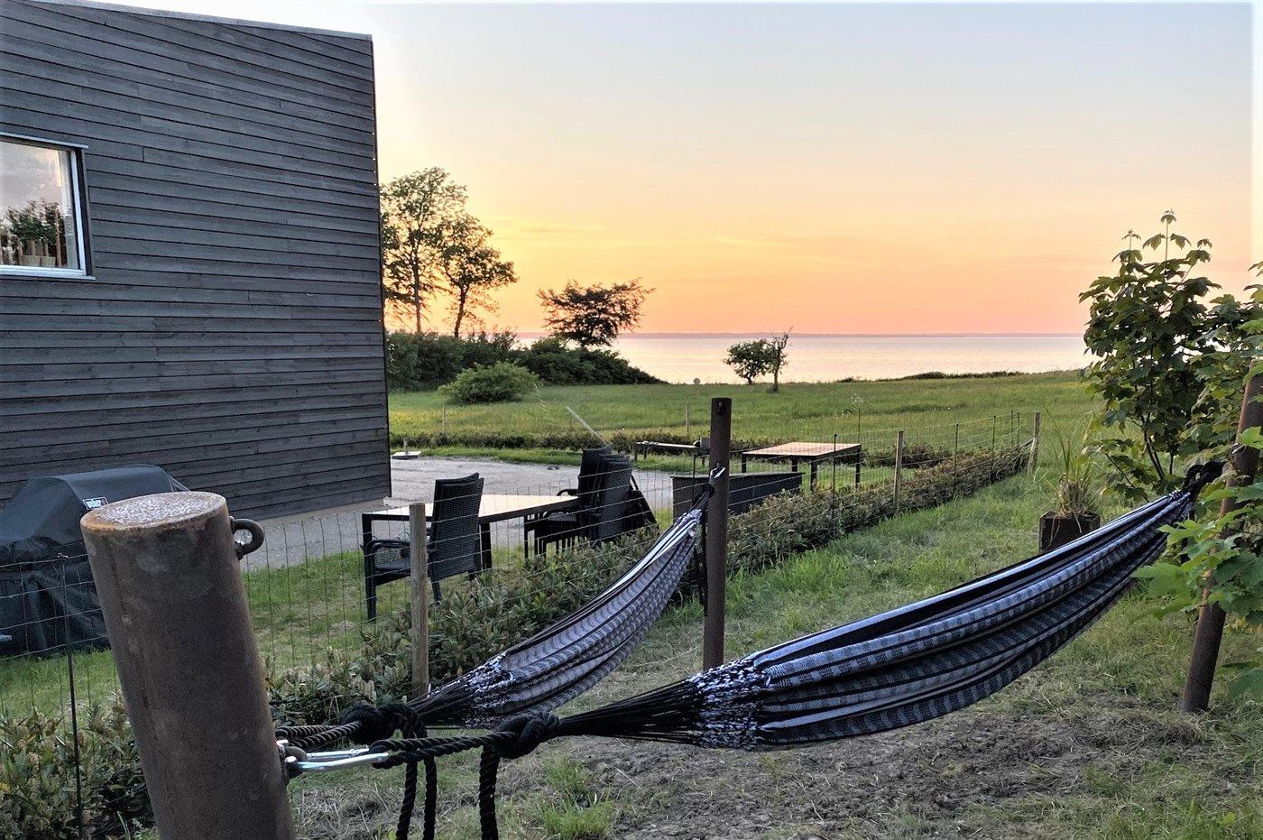 Modern vakantiehuis in Båring, op 100 m van zee met tuin, houtkachel en elektrische laadpaal.
