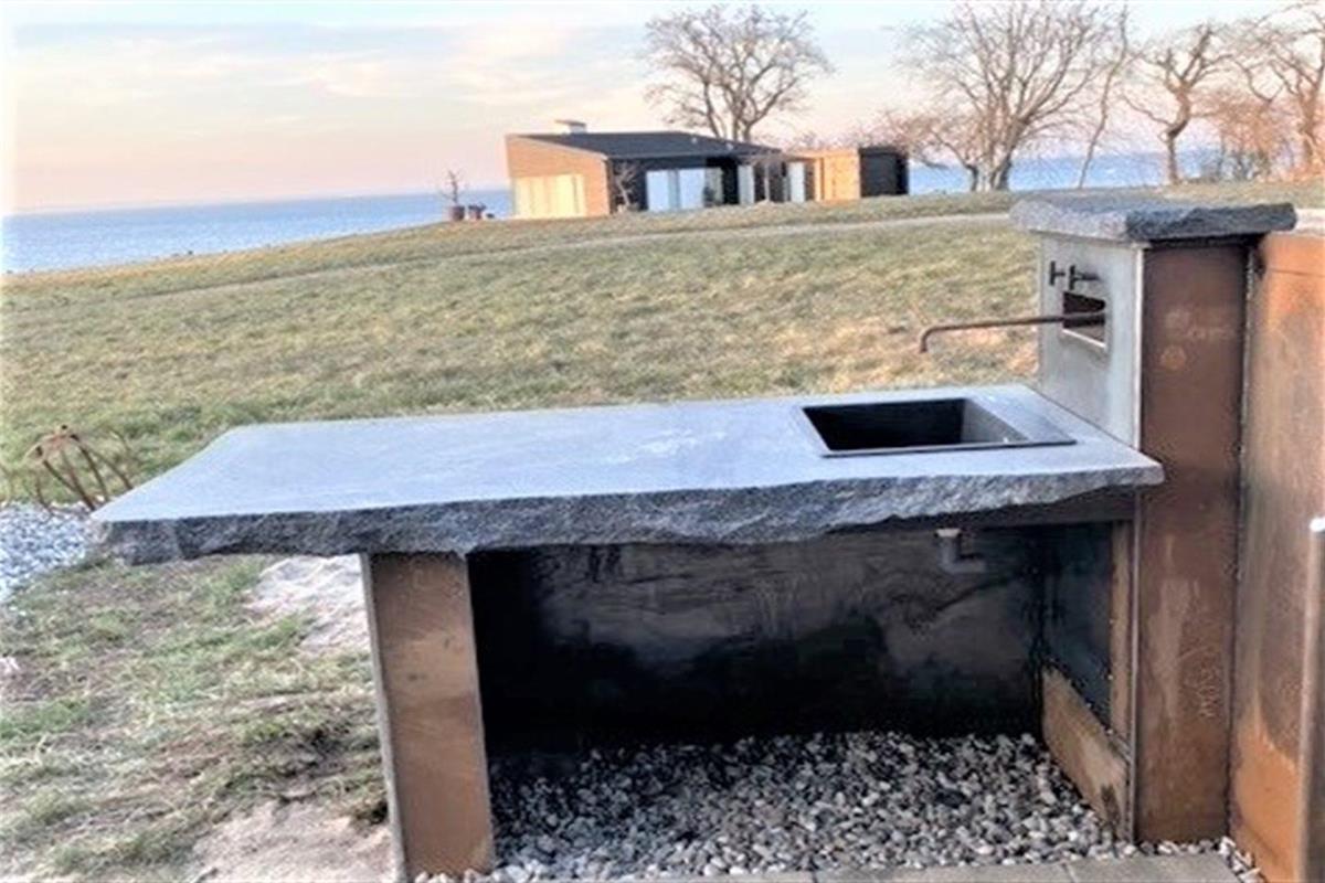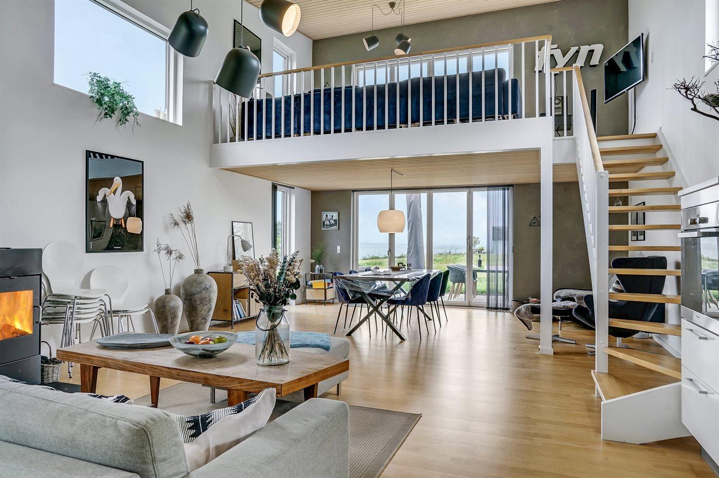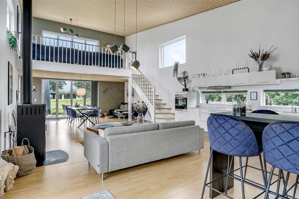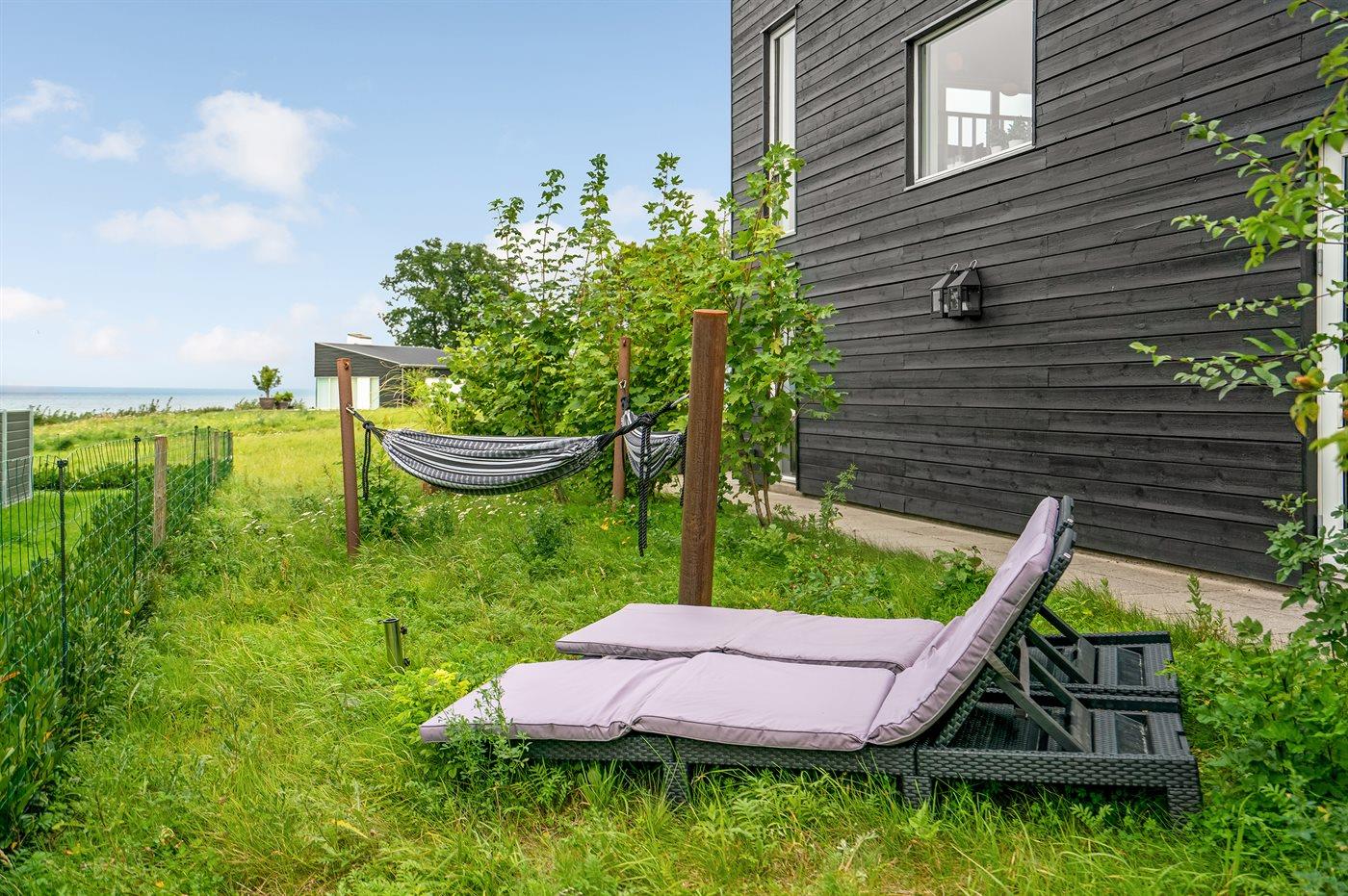 Modern vakantiehuis in Båring, op 100 m van zee met tuin, houtkachel en elektrische laadpaal.
