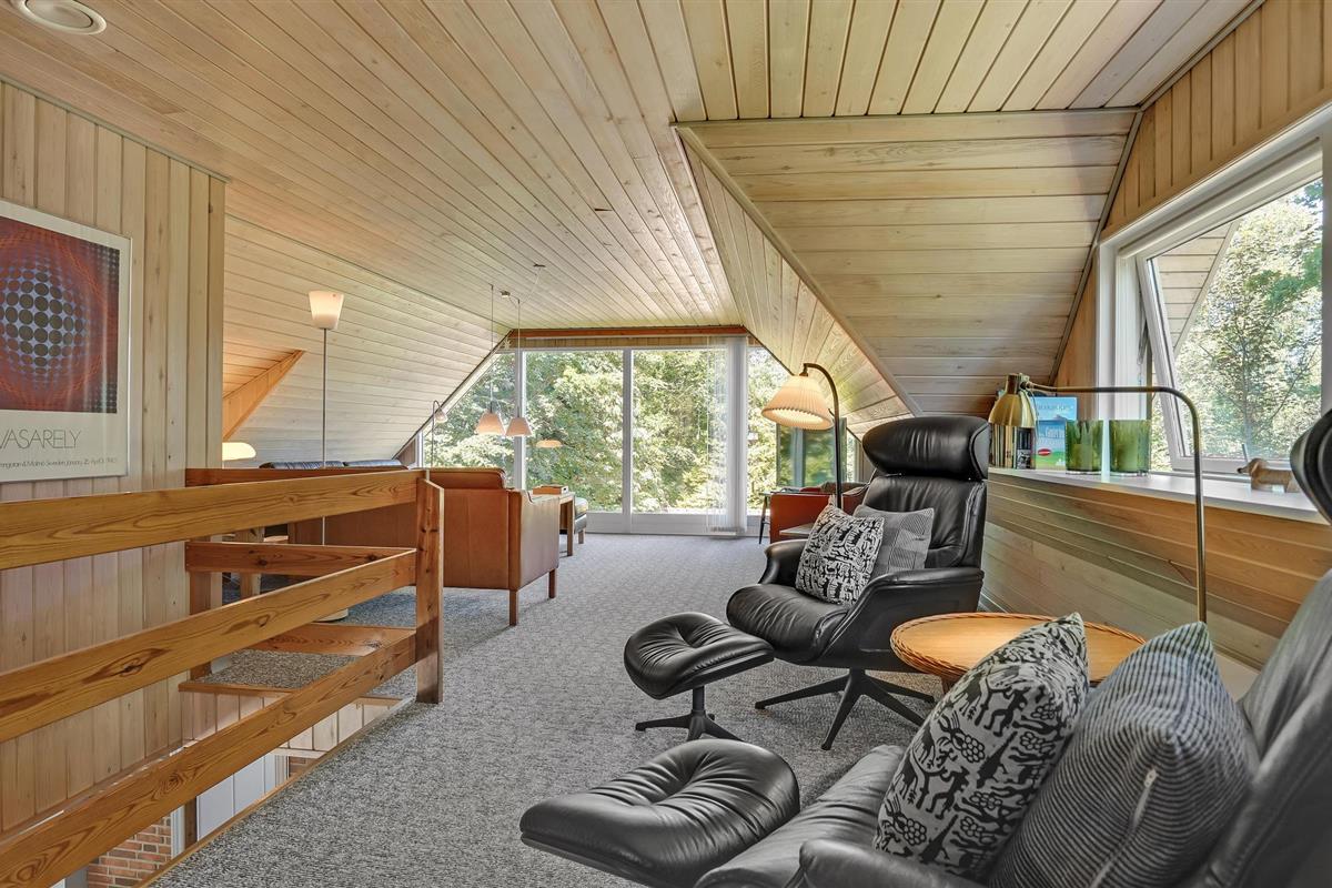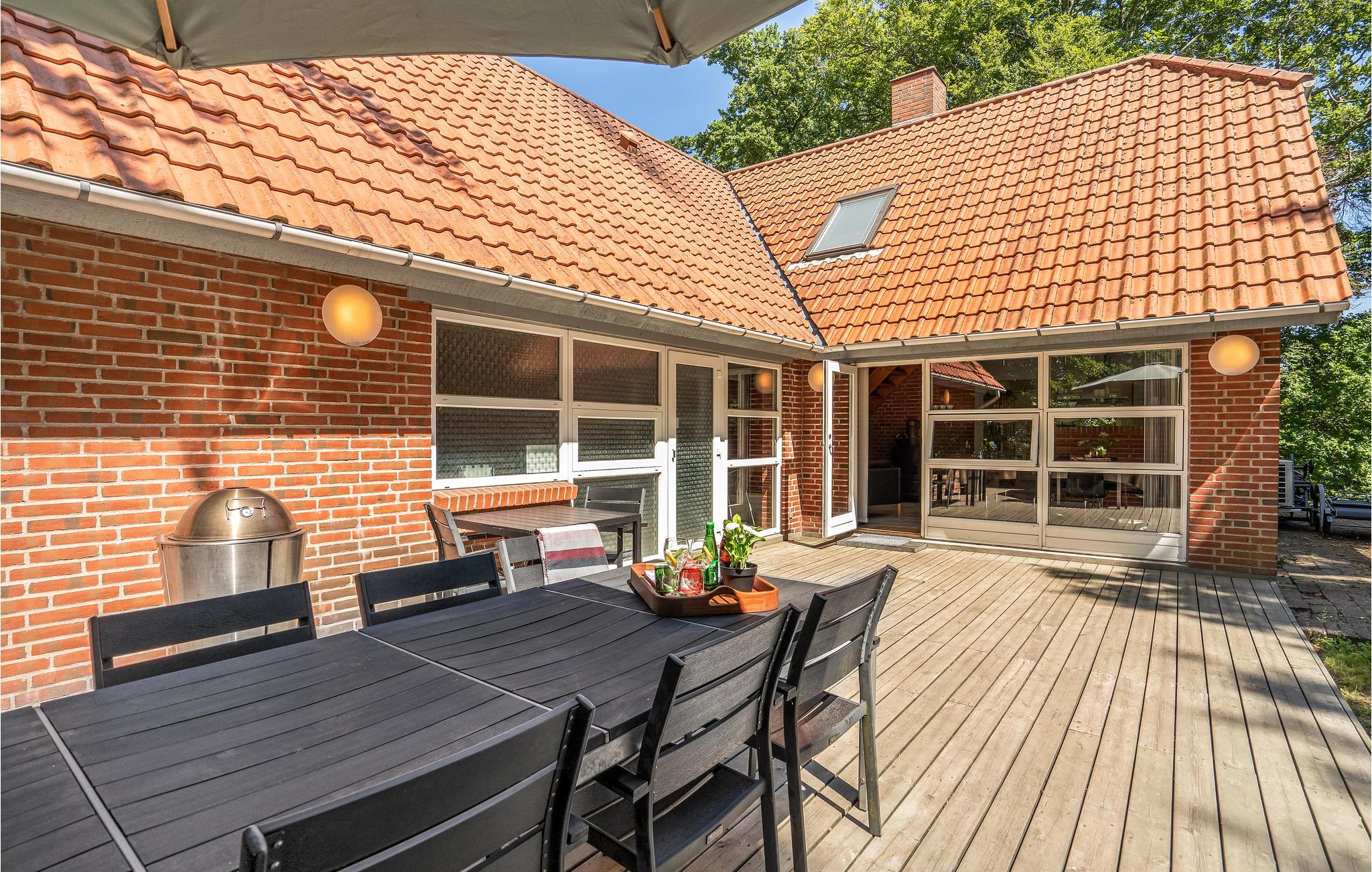 Het mooie huis met 2 verdiepingen herbergt ook een zwembad, een whirlpool en een sauna. Goed ingericht wacht het op u met een keuken met eethoek en uitgang naar het terras waar u ongestoord zit. Het gezellige zitmeubilair staat voor de houtkachel. De slaapkamers bevinden zich op de begane grond en de eerste verdieping, de badkamers bevinden zich op beide verdiepingen. Op de 1e verdieping is nog een woonkamer; als u hier zit heeft u goed zicht op het water. Er is een trap naar het huis. Het huis is gedeeltelijk omgeven door hoge bomen. Er is ook een steiger bij het kindvriendelijke strand van Båring.