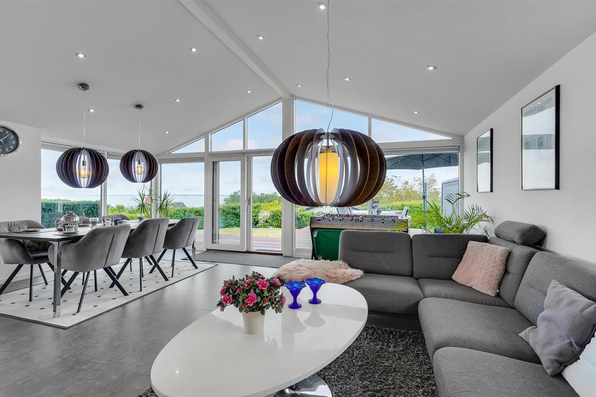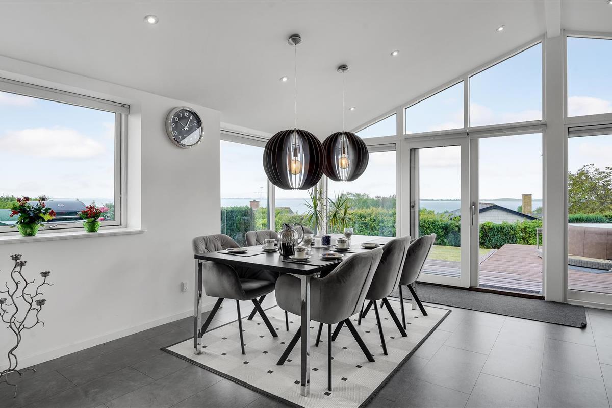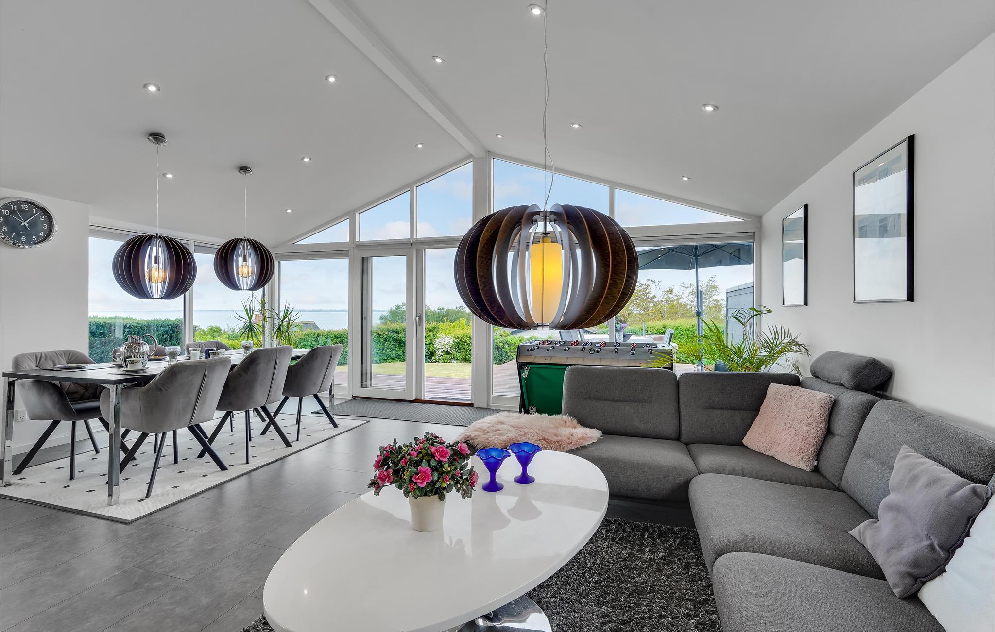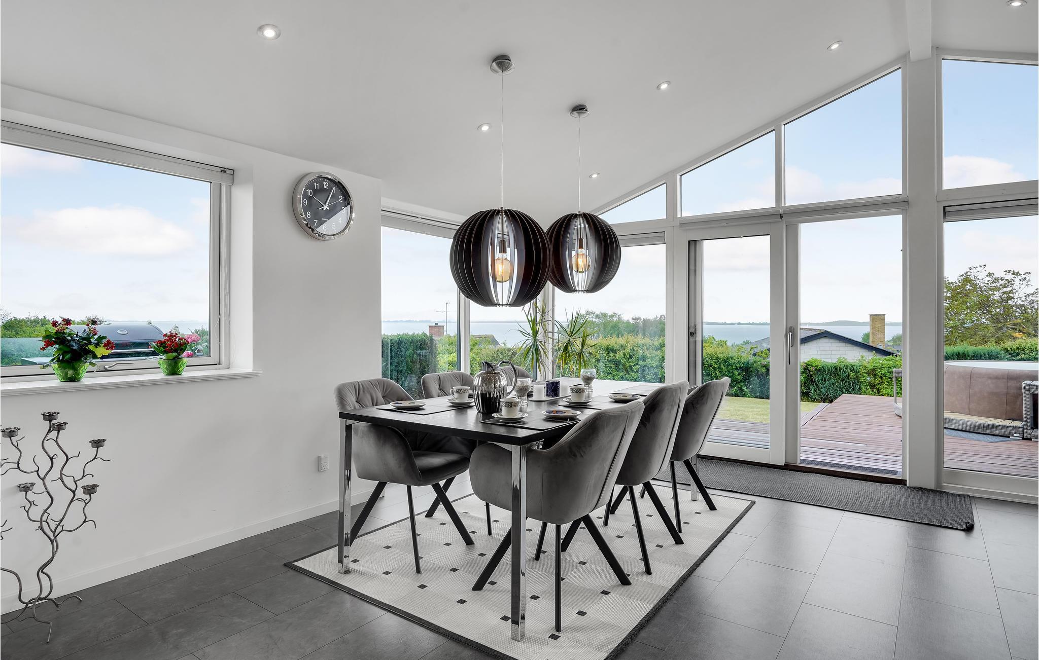 Geniet van een modern vakantiehuis met panoramisch uitzicht en een buitenwhirlpool nabij de zuidkust van Funen.