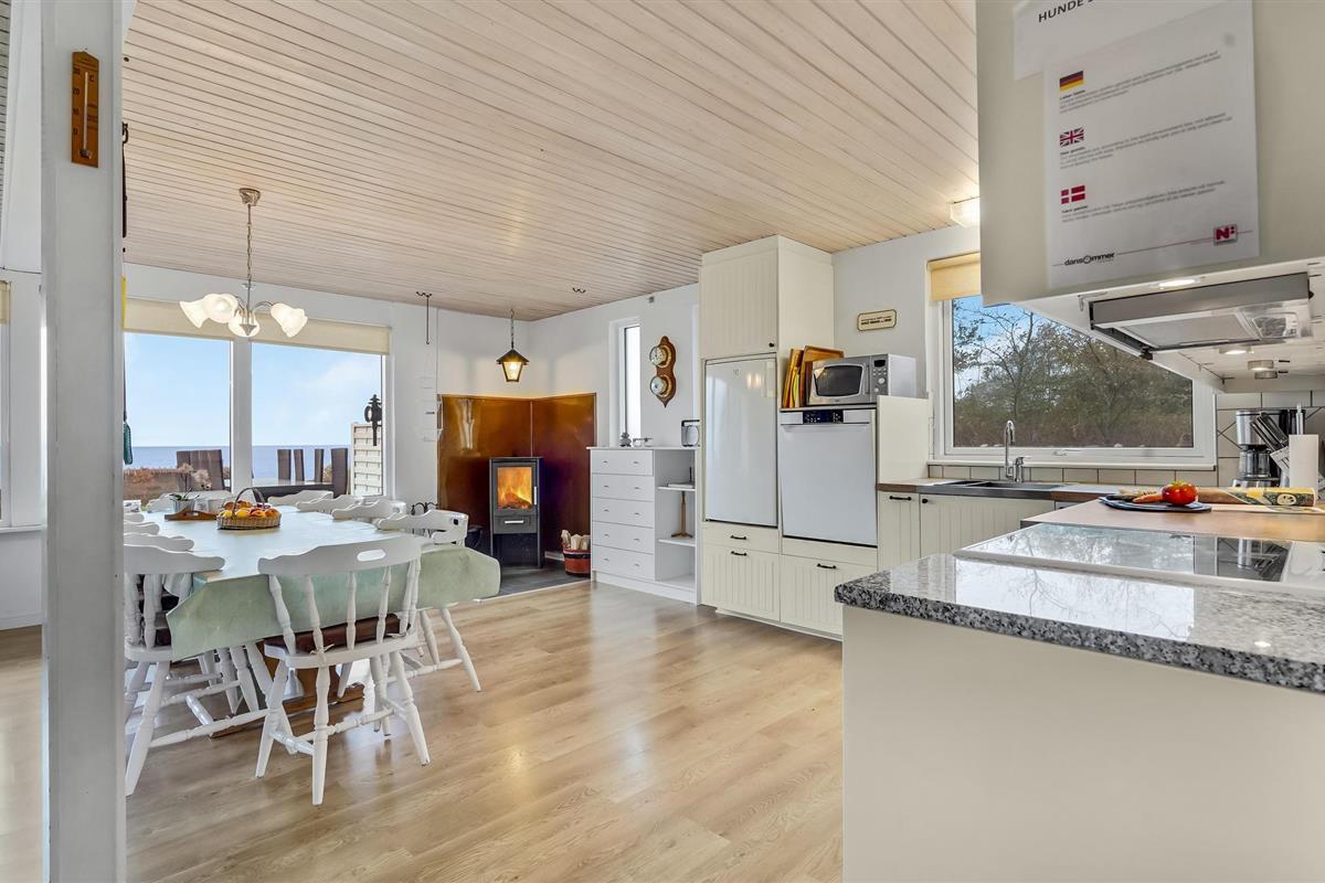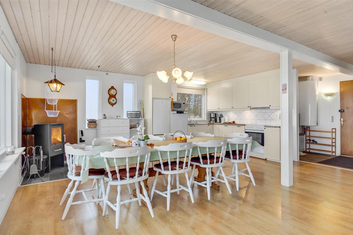 Dit iets oudere maar gezellige vakantiehuis biedt een prachtig uitzicht op het water. Het heeft een hoge ligging, een groot perceel en achter het huis beginnen velden. Het interieur is persoonlijk en bestaat uit een goede mix van oud en modern. Een wenteltrap leidt van de keuken-woonkamer - met houtkachel - naar de eerste verdieping. Op beide verdiepingen bevinden zich slaapkamers. Op de eerste verdieping is de alkoof gescheiden door een gordijn, op dit niveau is ook een woonkamer met uitzicht. Een ladder leidt naar de slaapzolder boven dit niveau. Er zijn verschillende terrassen bij het huis, er is ook een stalen tafel met gootsteen en kraan. Op het terras voor het huis kunt u heerlijk lunchen met uitzicht.