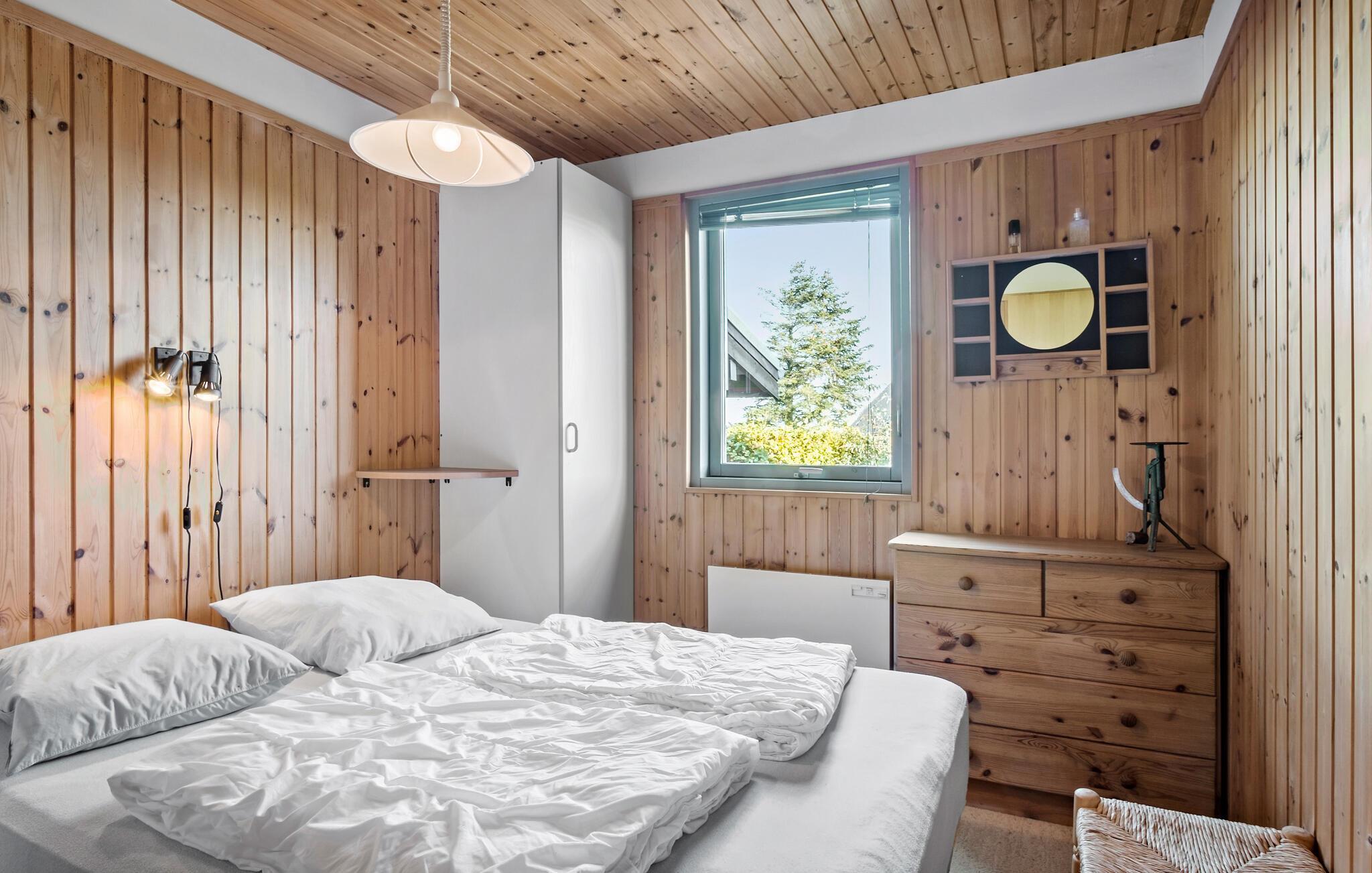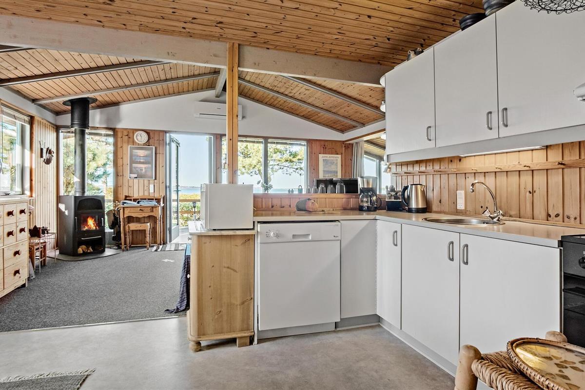Verheug u op een aangename vakantie in dit houten huis aan de zuidkust van het eiland Fyn. Het middelpunt van het huis is de grote, gecombineerde woonkamer en keuken, waar u kunt genieten van culinaire hoogstandjes in de modern uitgeruste keuken, terwijl u met de andere gasten in de comfortabele gestoffeerde meubels kunt kletsen. De met hout beklede muren en het plafond van deze kamer maken een heldere indruk en de grote raampartijen en het schuine dak creëren een heerlijke, open sfeer. U kunt met uw gezin of vrienden aan de eettafel eten en daarna een spelletjesavond houden in de zithoek. Of waarom opent u op warme zomeravonden niet de deur en trekt u zich terug op het grote terras, waar u de dag kunt afsluiten met uitzicht op zee? Dit is ook een geweldige plek om 's ochtends te genieten van een kopje koffie.