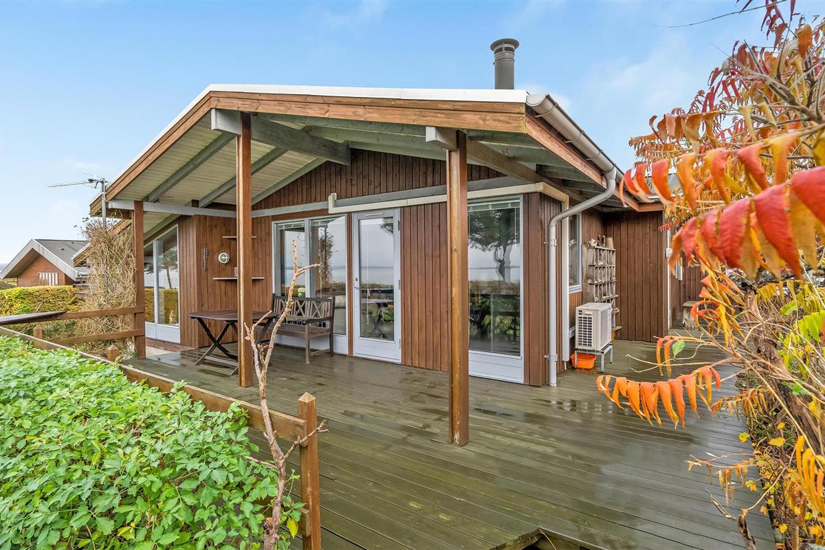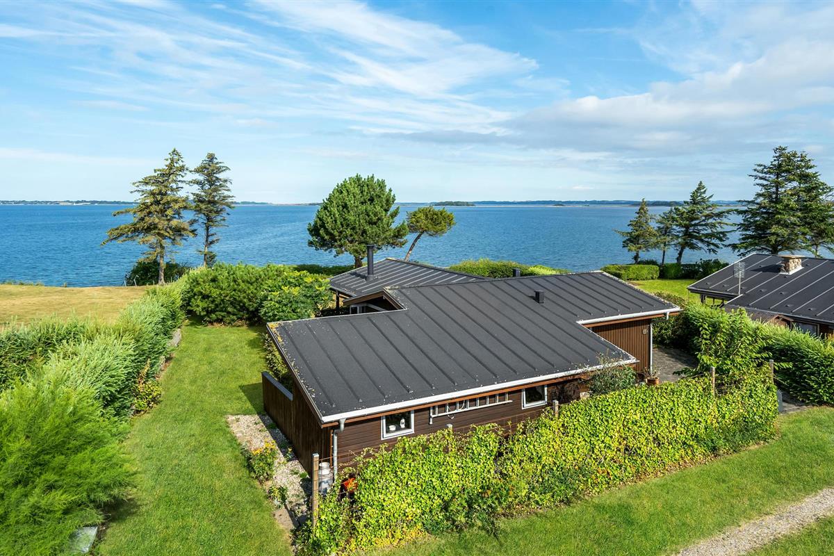 Ontspan in dit houten vakantiehuis met panoramisch zeezicht aan de kust van het eiland Fyn.