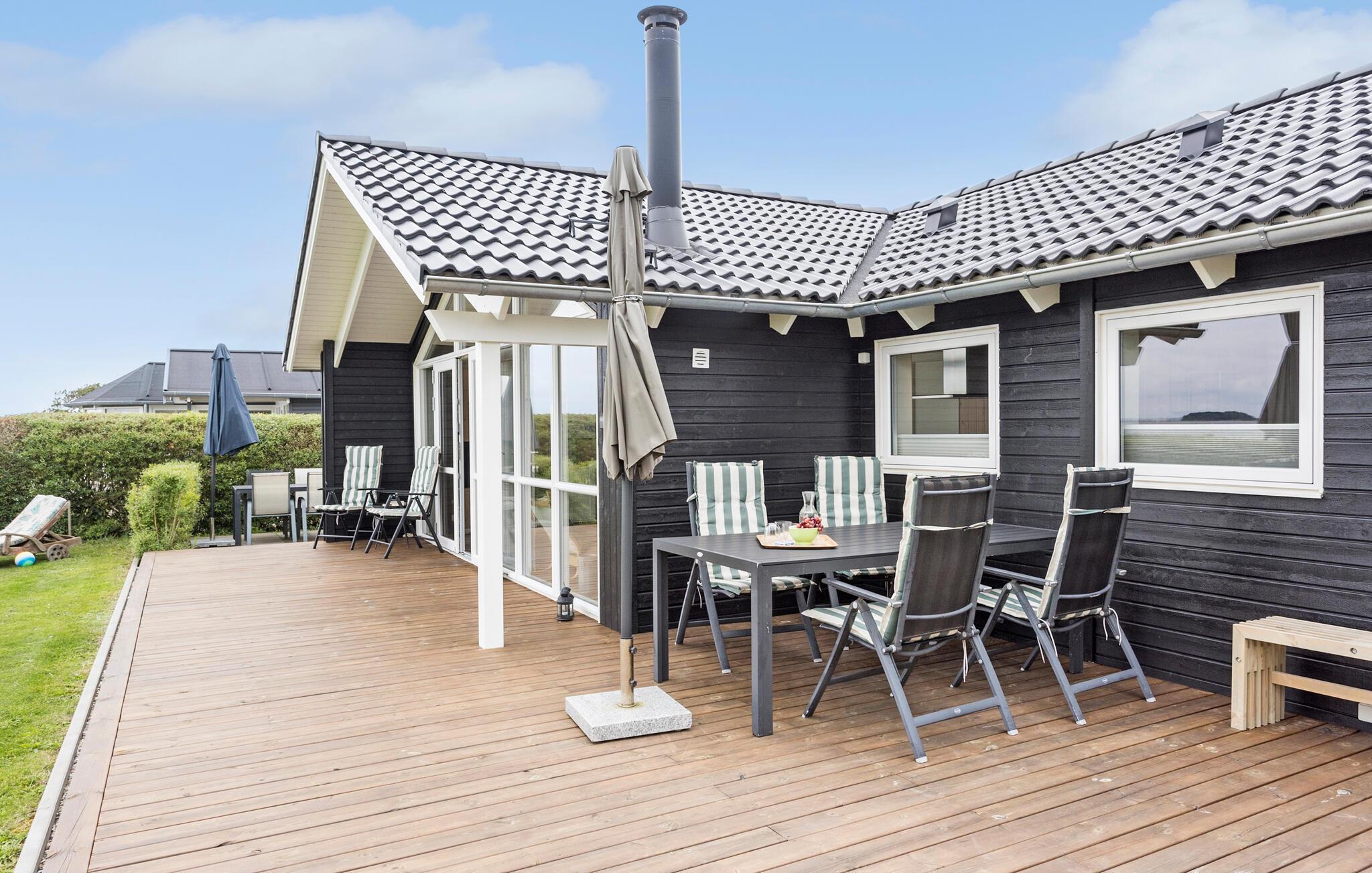 Goed uitgerust vakantiehuis met zeezicht en groot terras op het eiland Funen, dicht bij het zandstrand en natuur.