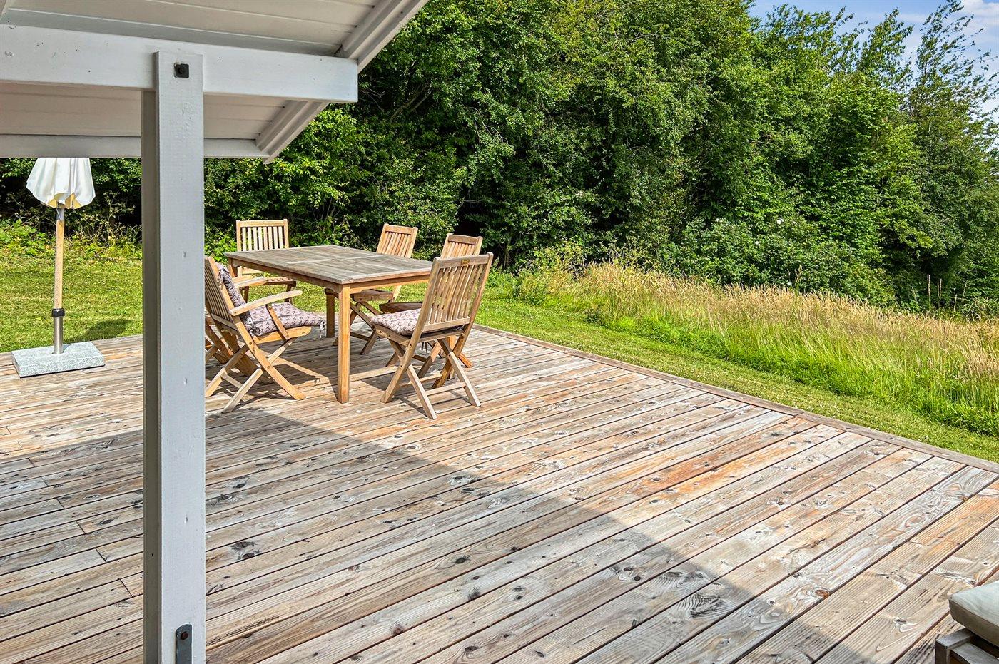 De vakantiewoning is gelegen op een 1692 m² groot natuural grond. Afstand tot de zee 350 m. Dichtstbijzijnde winkel 5000 m. Bij de vakantiewoning hoort terras. Daarnaast is er een overdekt terras. Barbecue. Het huis heeft een stopcontact voor het opladen van een elektrische auto. Oplaadstekker type 2. Met 11 kW-laadvermogen. Parkeerplaats bij het huis.
