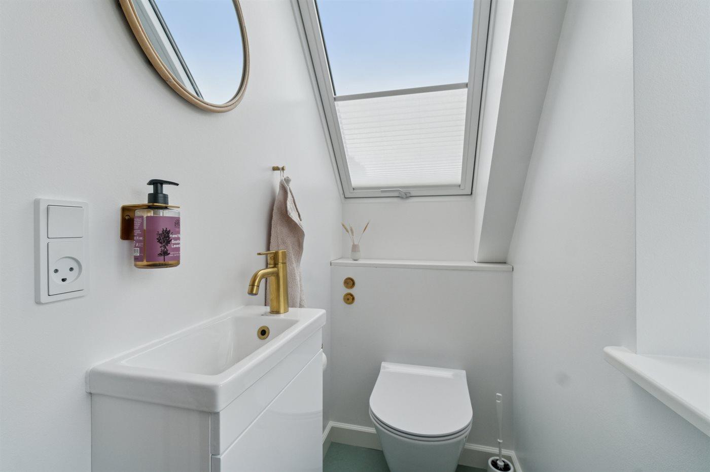 Er is 1 badkamer met douchehok en 2 toiletten, waarvan 1 gastentoilet. Er is vloerverwarming in 1 badkamer.