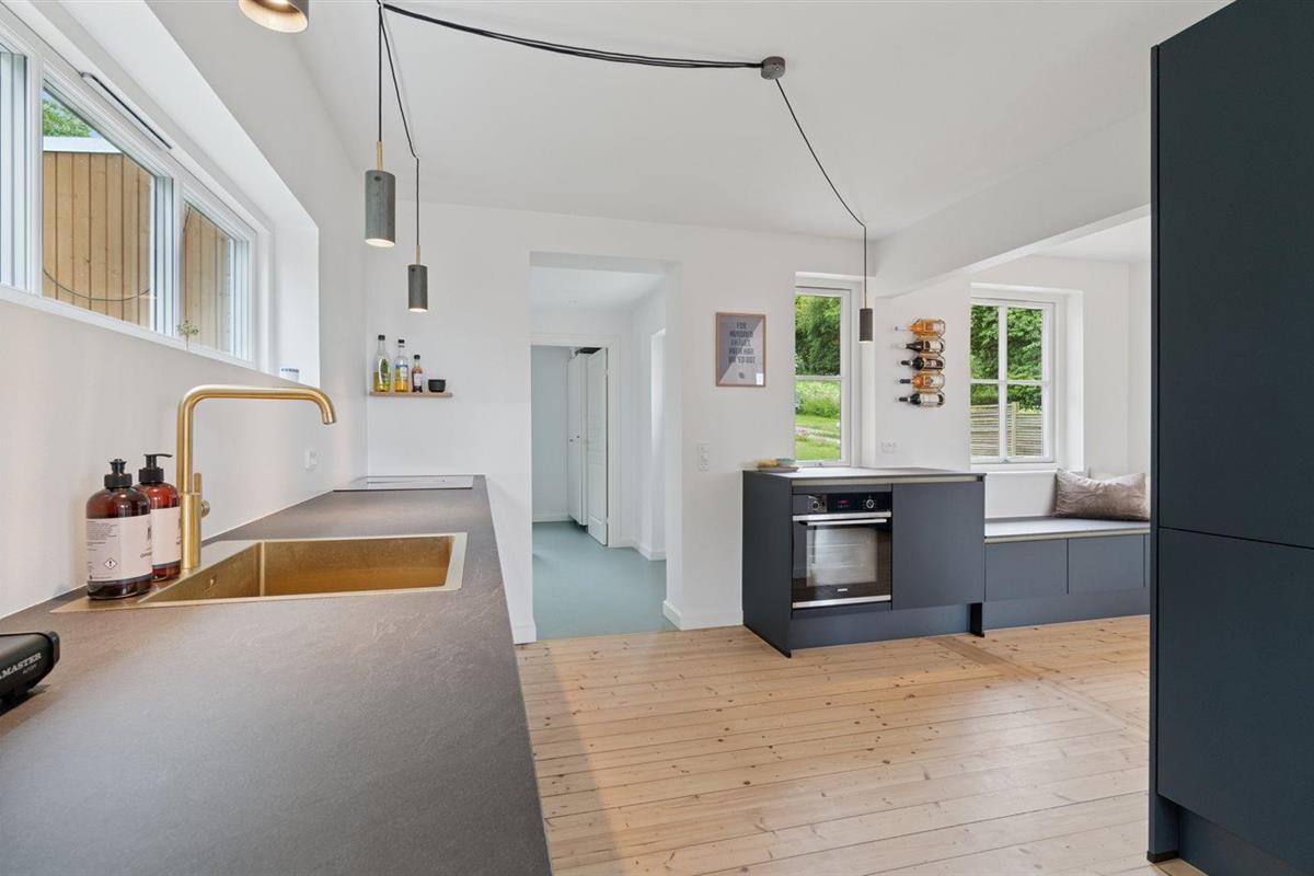 De keuken is uitgerust met koelkast Er is 4 inductiekookplaten, heteluchtoven, magnetron en vaatwasser.