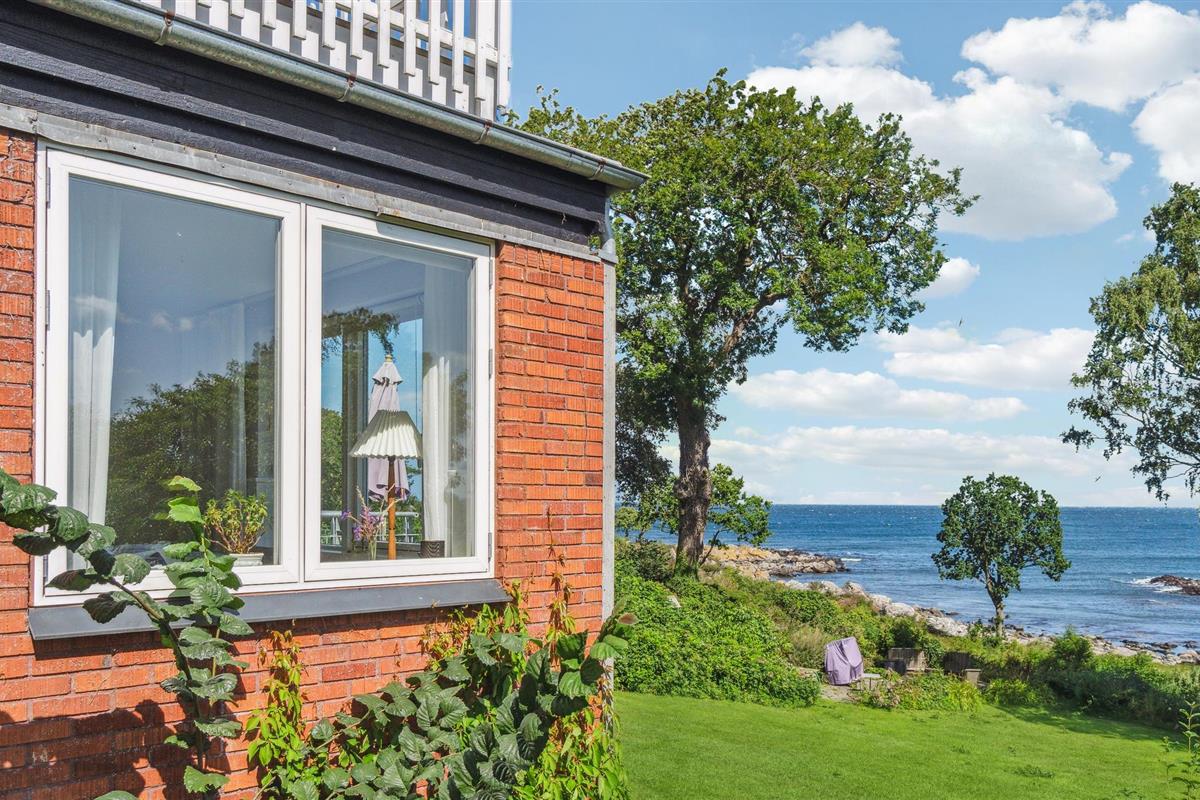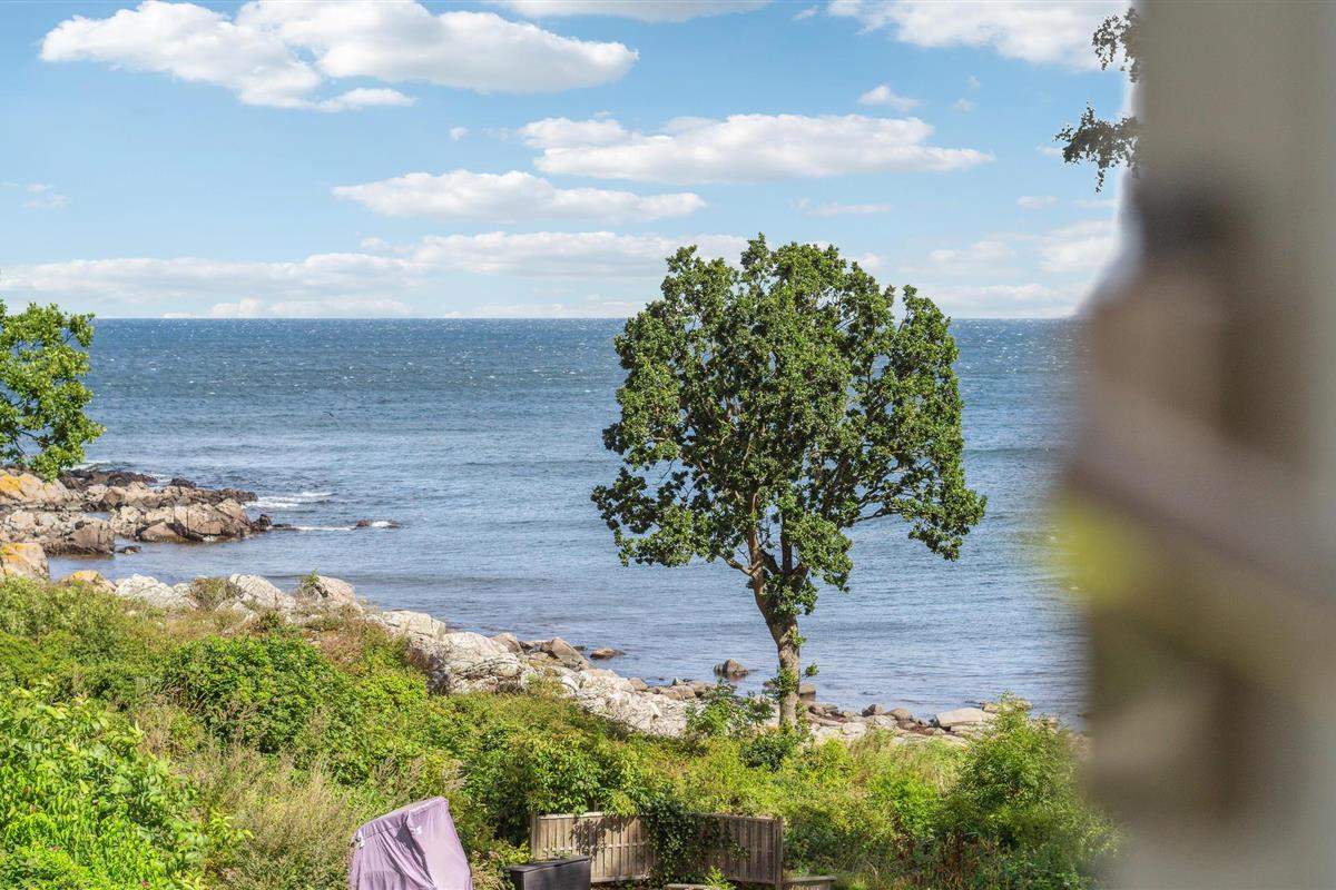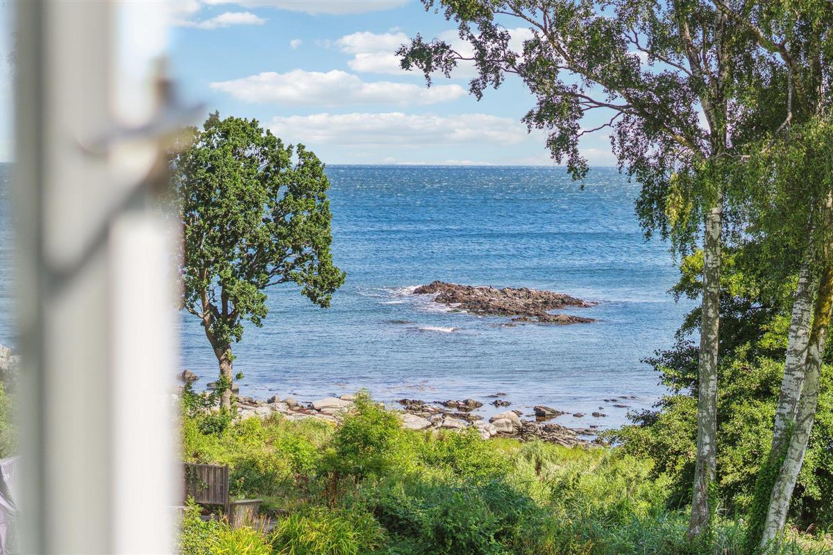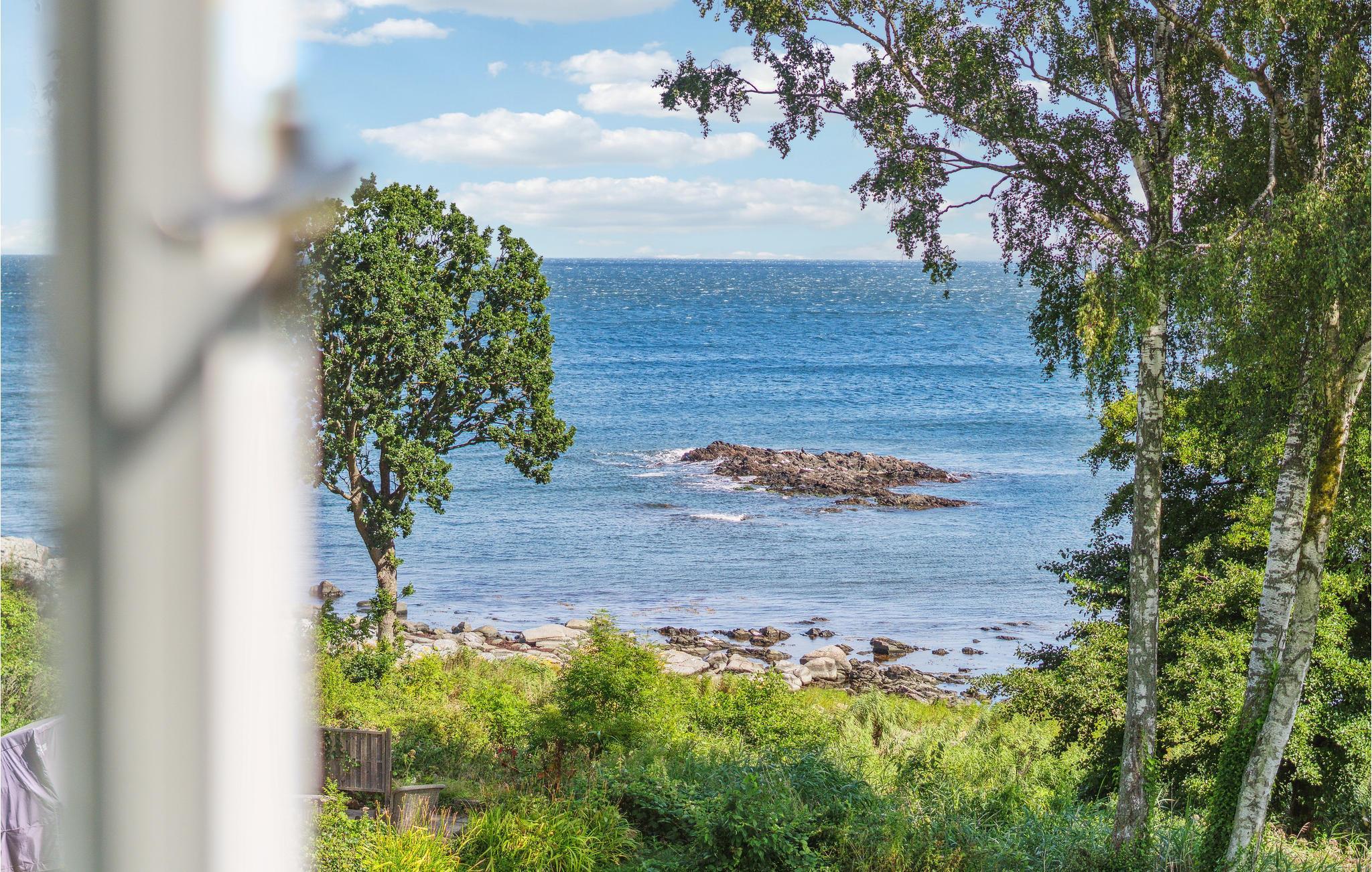 Ontdek deze lichte vakantiewoning met zeezicht, direct aan de kust van Svaneke, perfect voor een ontspannen verblijf met barbecue en gedeelde tuin.