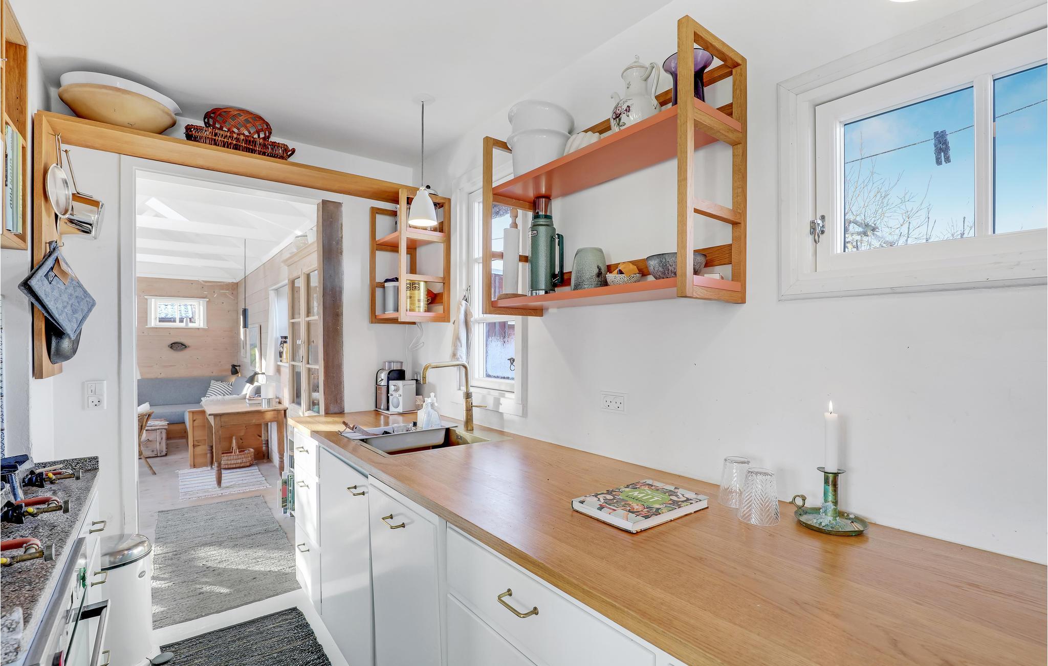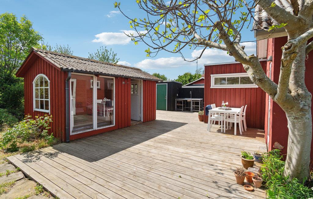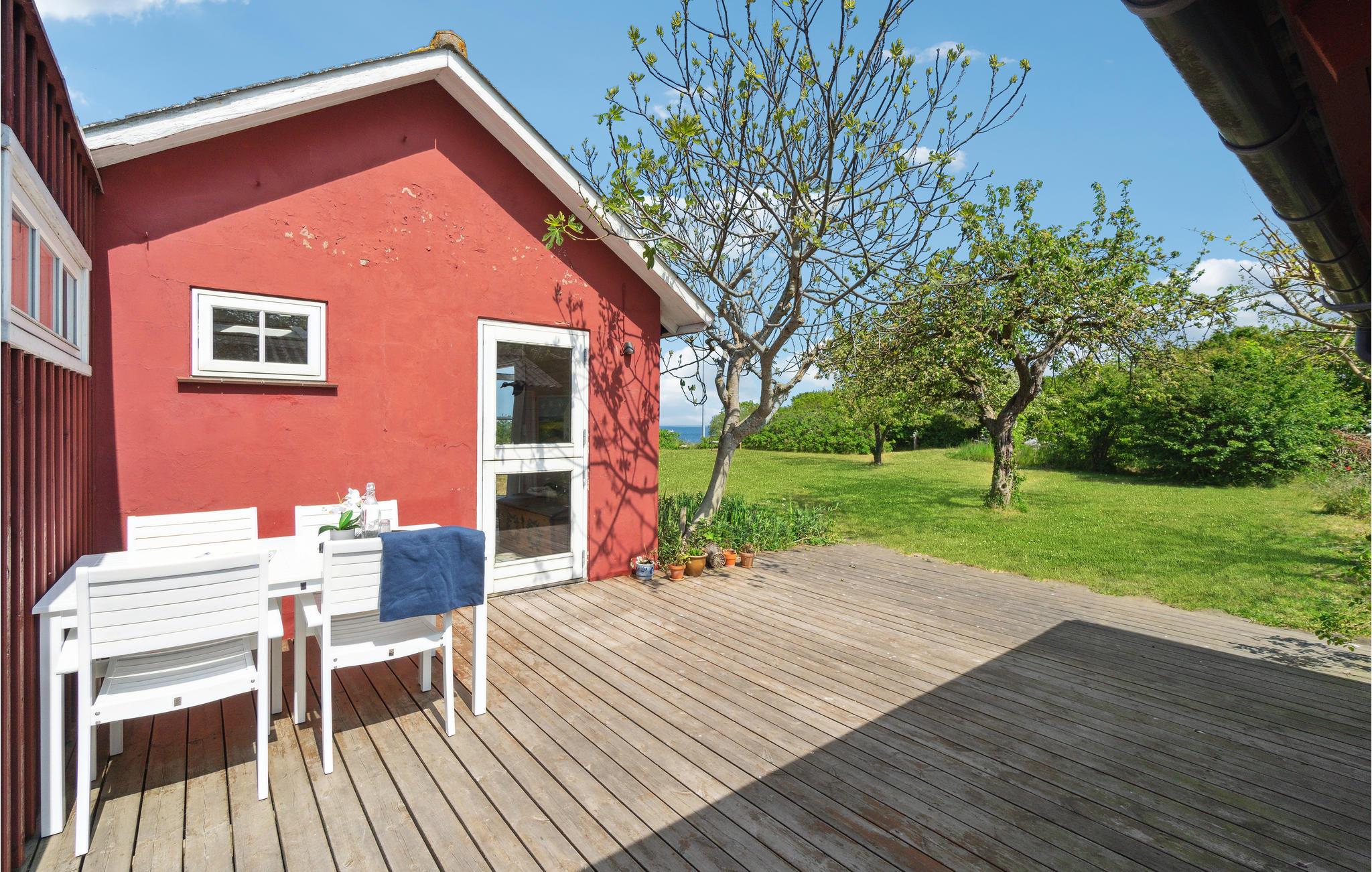 Charmant rood huisje met zeezicht, tuin, buitenzwembad en nabij de haven in Svaneke.