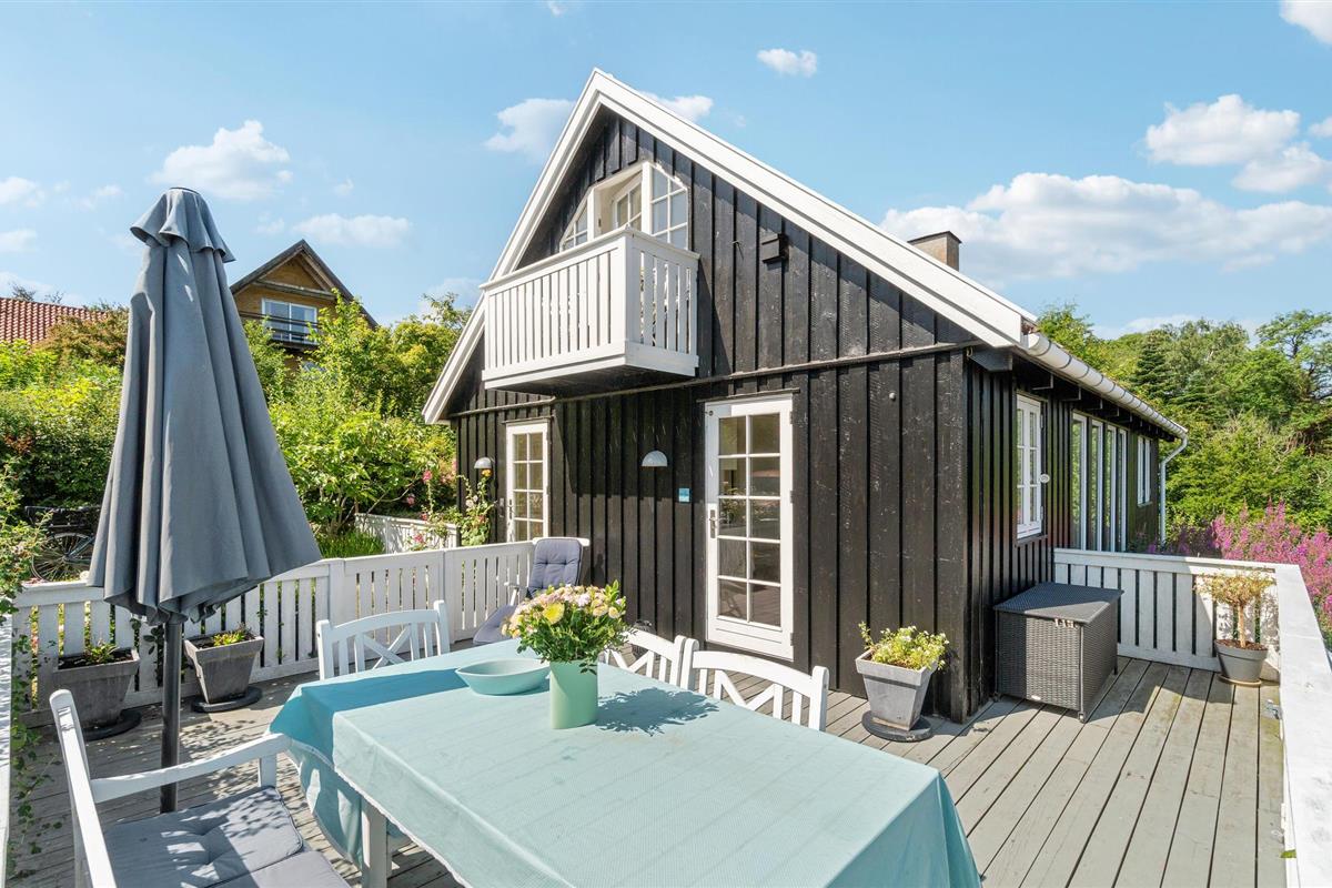 Prachtig vakantiehuis op twee niveaus met prachtig uitzicht op zee, zowel vanuit het huis, het perceel als het balkon.