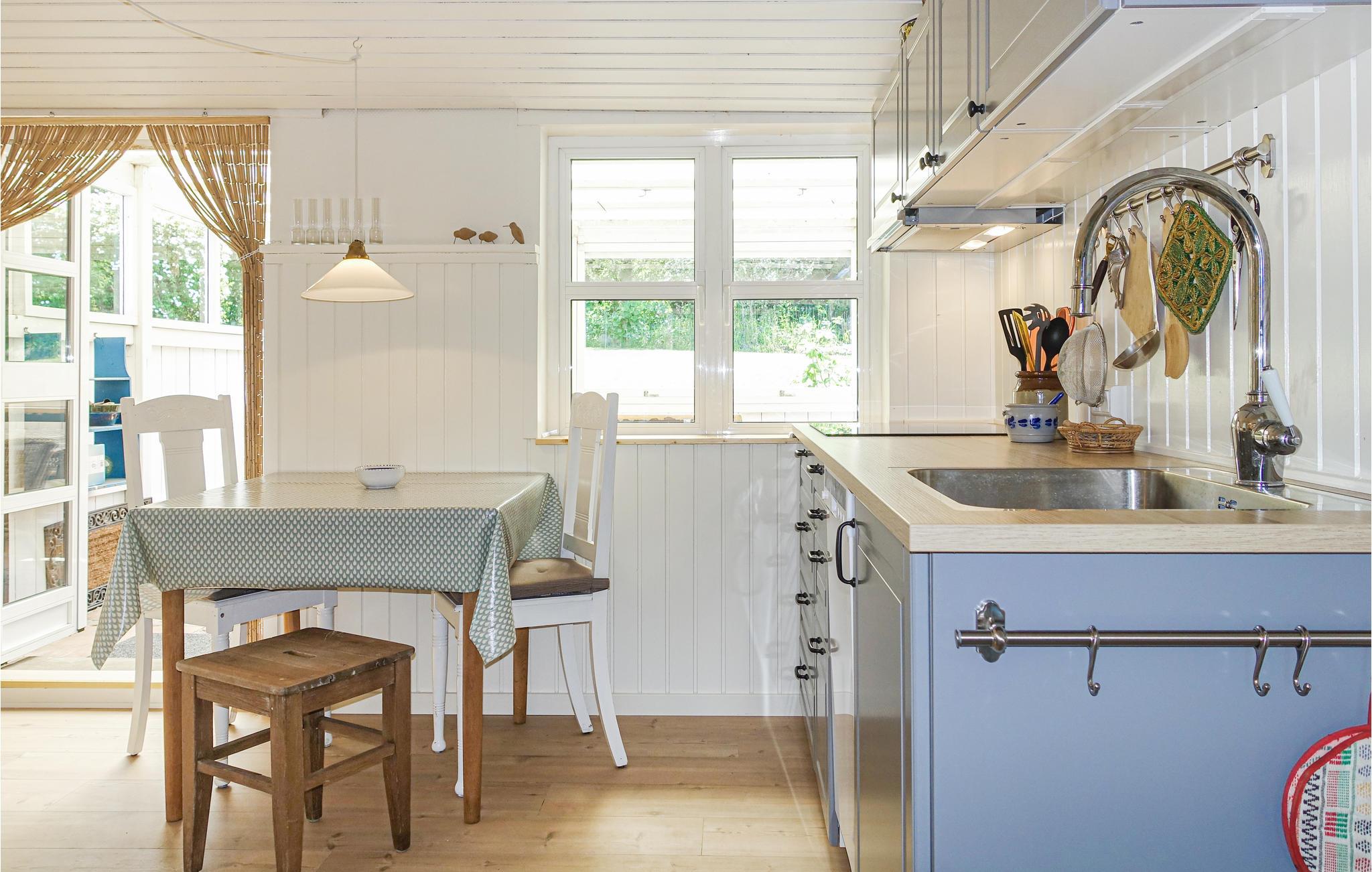 Geniet van de rust en de bijzondere sfeer in dit charmante vakantiehuis, dat wordt omgeven door idyllische natuur aan de oostkust van Bornholm. Ontspan in de liefdevol ingerichte woonkamer met comfortabele zithoek en houtkachel, die op kille dagen voor gezellige warmte zorgt. Of neem plaats in de serre en geniet van je vrije vakantietijd met een kopje koffie. Bereid je maaltijden in de keuken met voldoende ruimte om samen te koken.