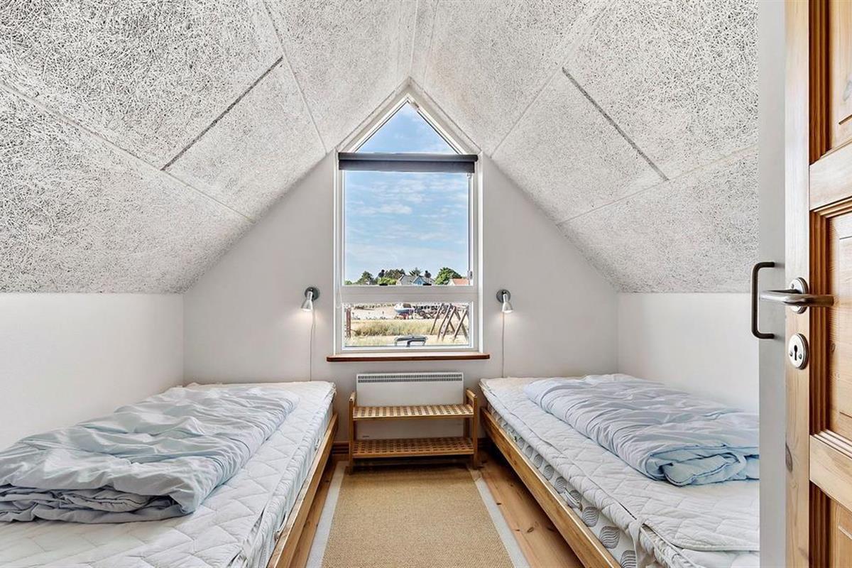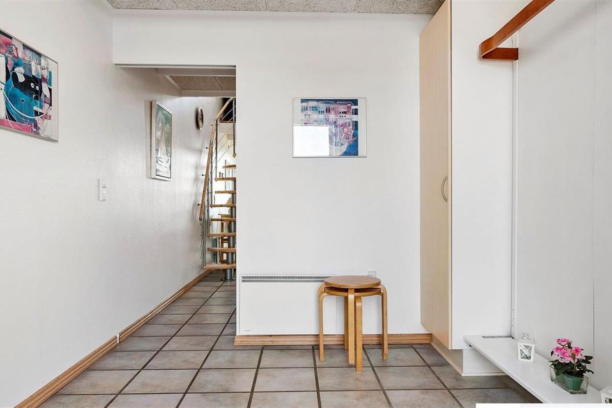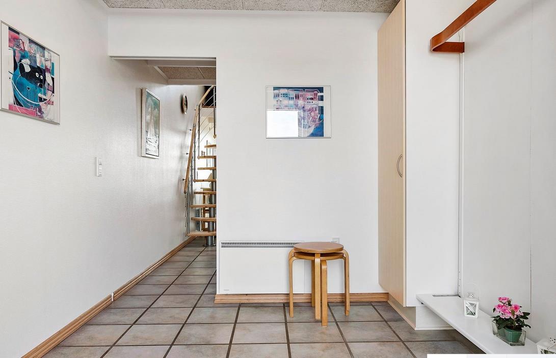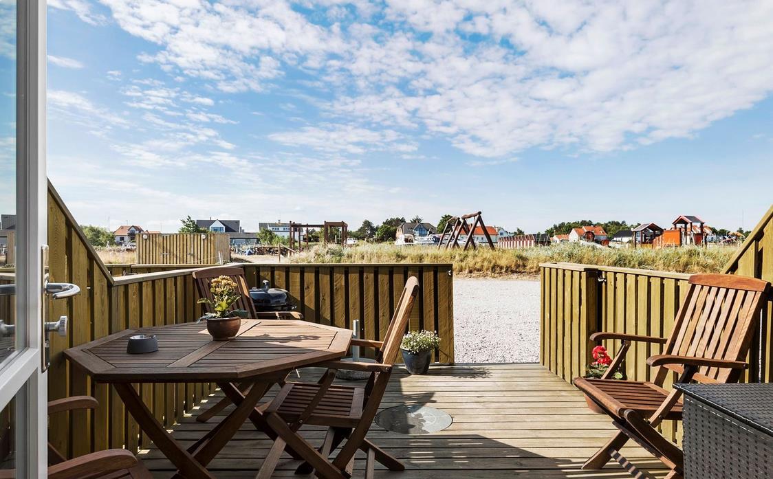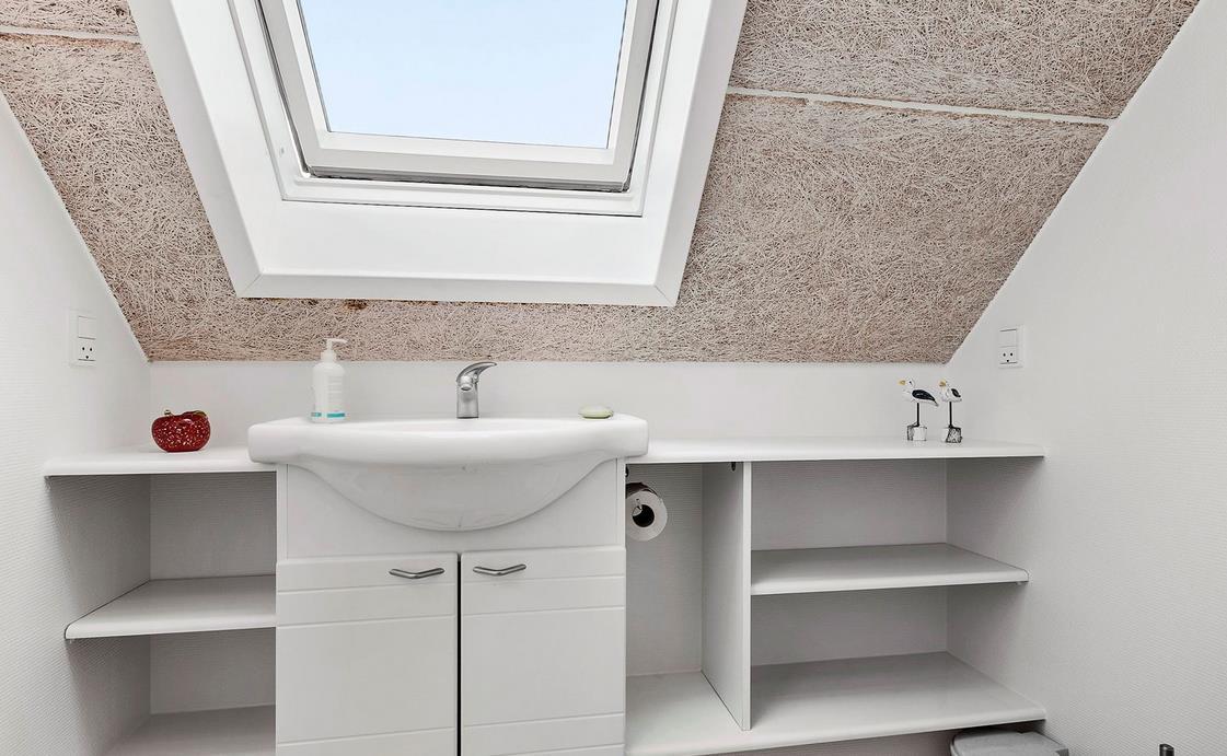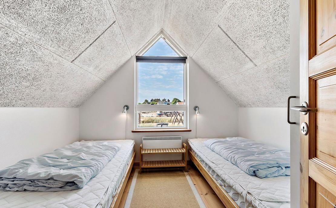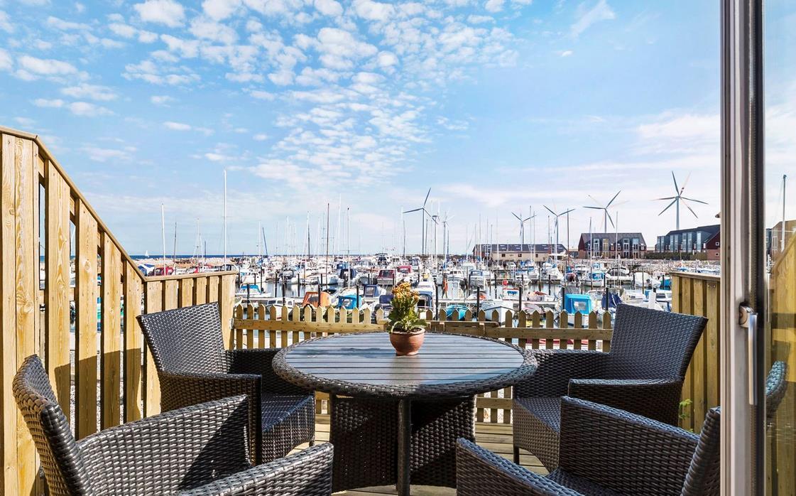 Upon entering through the hallway, you step into the bright open-plan living area with the lounge and kitchen, which leads out to the terrace overlooking the marina. The dining area comfortably seats four, and the space includes a TV with Danish (including TV2) and German channels, as well as a radio. The kitchen is well-appointed with ceramic cooktops, a microwave, and a fridge-freezer. A staircase leads up to a cozy loft area, which serves as a living/observation room, a bedroom with two single beds, and a small toilet. The spacious hallway also includes a "hidden" fold-out double bed, making the hallway function as a bedroom for two. Additionally, there is a charming bathroom with a shower niche. The entire house is equipped with underfloor heating and is well-insulated, making it suitable for year-round occupancy. Internet access is available.