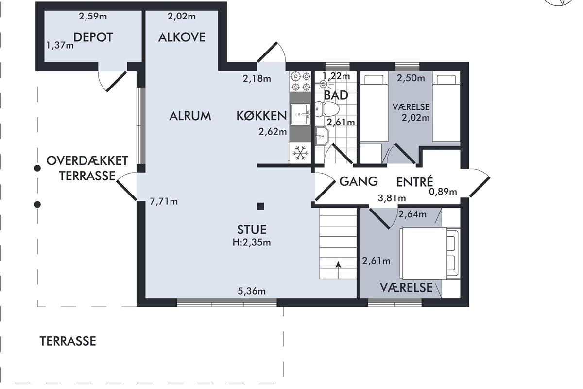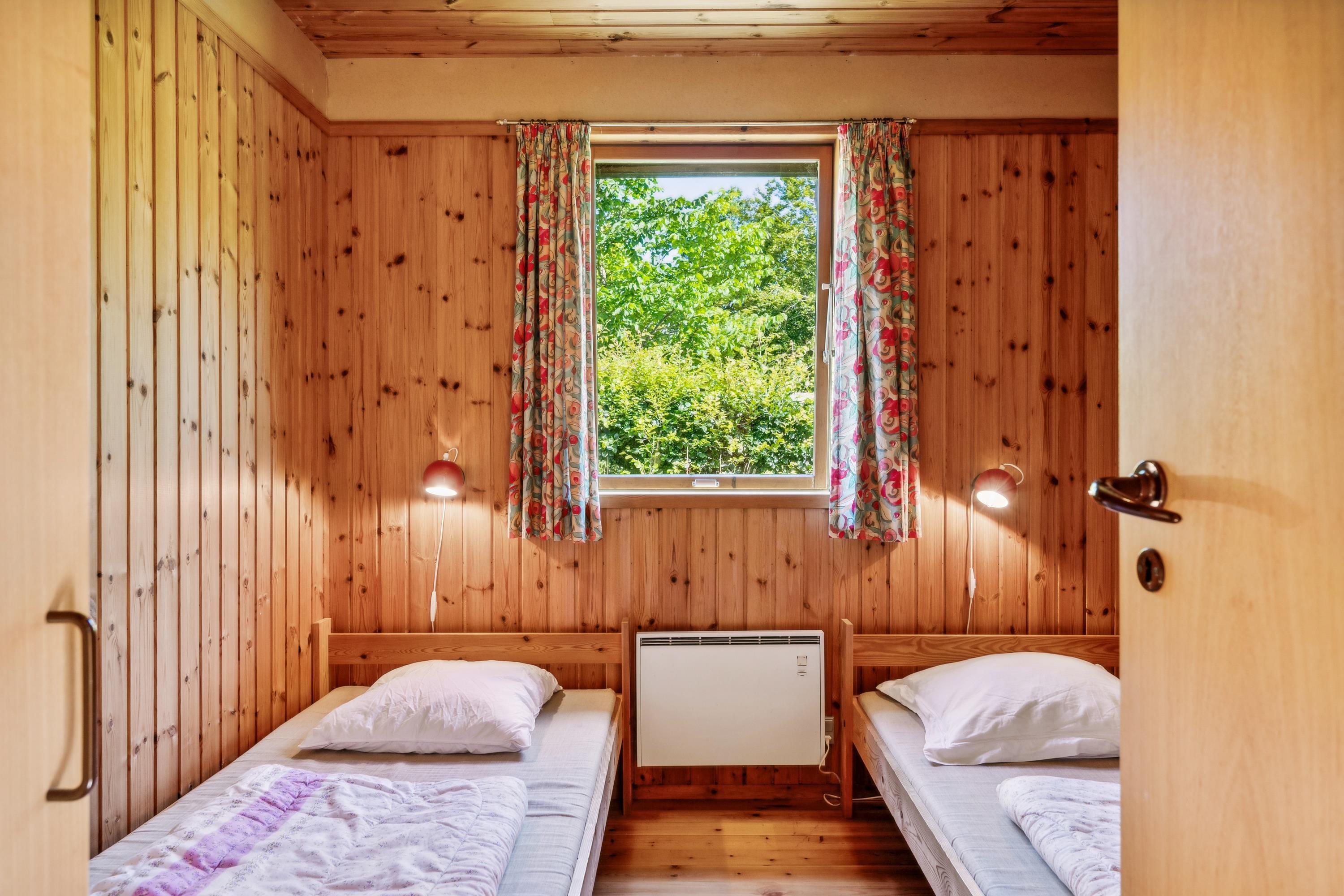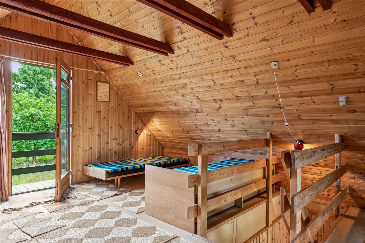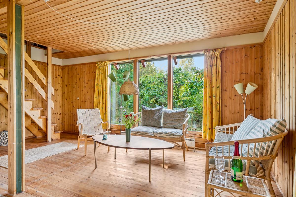 Close to one of Djursland's most child-friendly sandy beaches, you'll find this charming, older, and authentic holiday home. The house, which is spread over two floors, includes a cozy living room with a good dining area and an older, but functional kitchen on the ground floor. There are two bedrooms, one with a double bed and one with two single beds. The bathroom features a shower niche. From the living room, a staircase leads to the first floor, where you'll find a large lounge area and two single beds. The house is situated on a spacious natural plot.