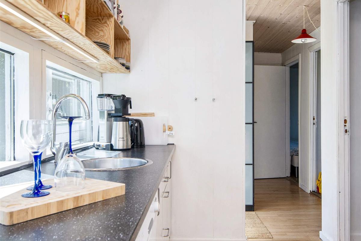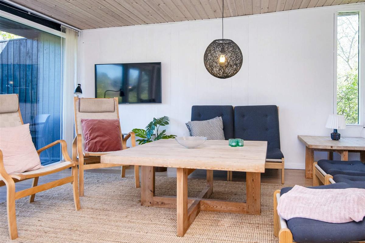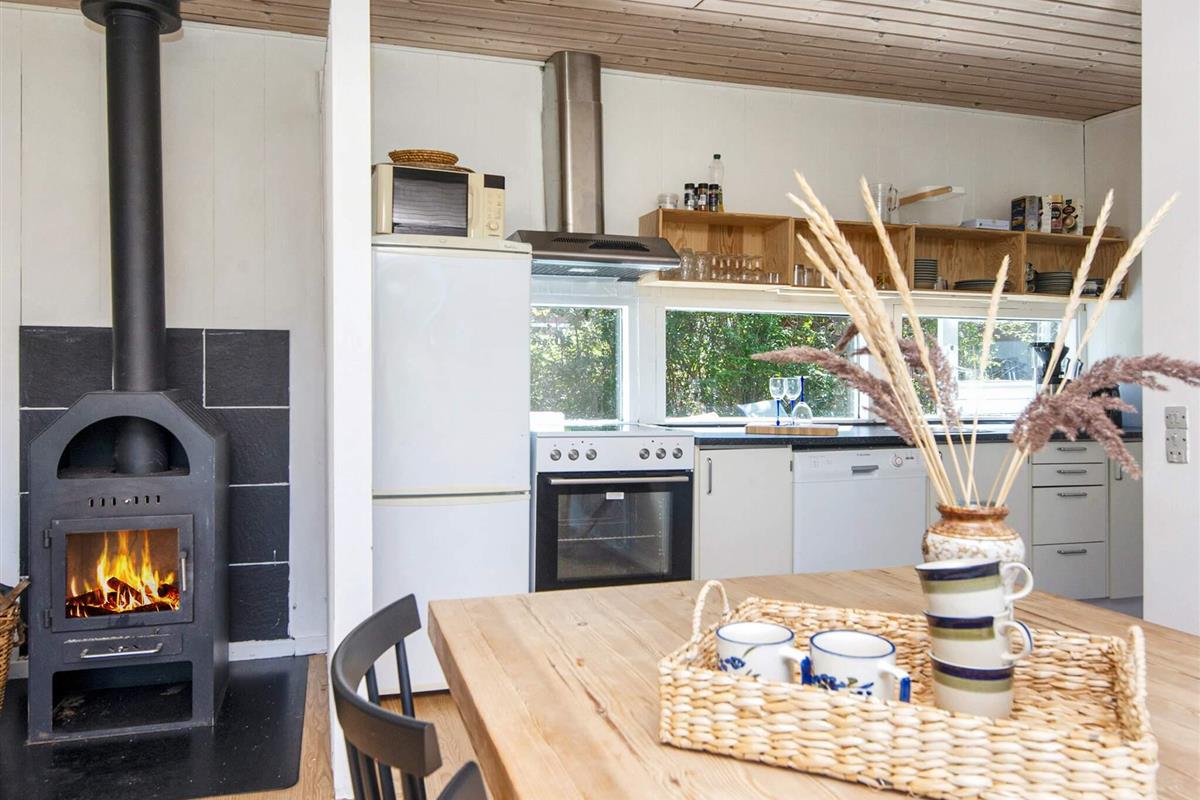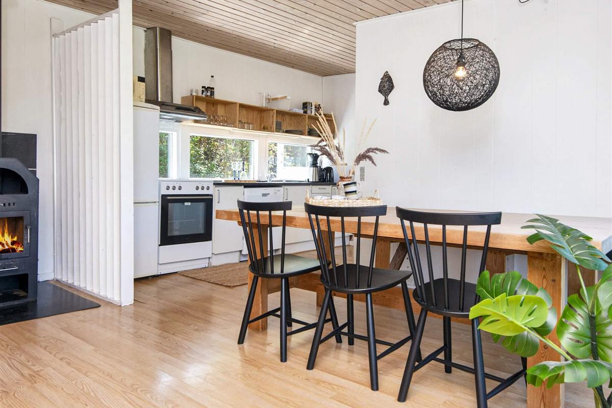 Dieses ältere Ferienhaus in der Nähe von Bønnerup liegt auf einem 1200 m² großen Naturgrundstück mit Bäumen und bietet einen ruhigen Rückzugsort für Gäste, die einfachen Komfort und eine enge Verbindung zur Natur suchen. Das Haus verfügt über drei Schlafzimmer mit jeweils einem Doppelbett und ein gemütliches Wohnzimmer mit Holzofen und Fernseher. Die Küche ist funktional ausgestattet mit Elektroherd, Kühl-Gefrierkombination, Mikrowelle, Geschirrspüler, Kaffeemaschine und Waschmaschine – perfekt für einen erholsamen Selbstversorgerurlaub.
