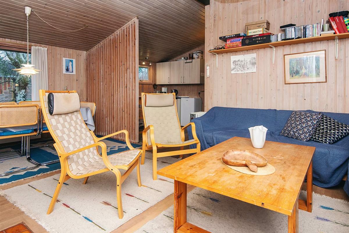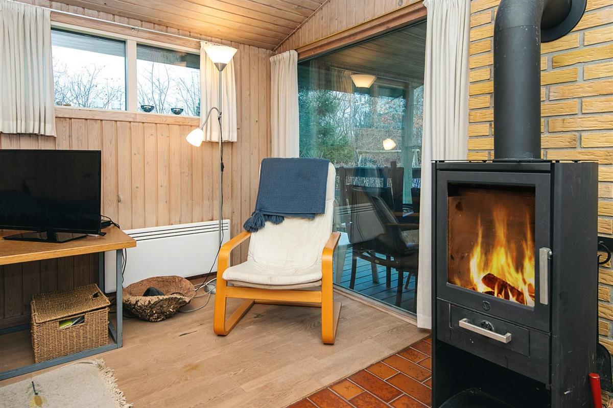 Dieses Ferienhaus, dessen Wohnzimmer u.a. über einen Holzofen verfügt, liegt auf einem Naturgrundstück mit Bäumen. Auf der überdachten Terrasse können Sie herrliche Stunden im Freien verleben. Nicht zu vermieten an Jugendgruppen