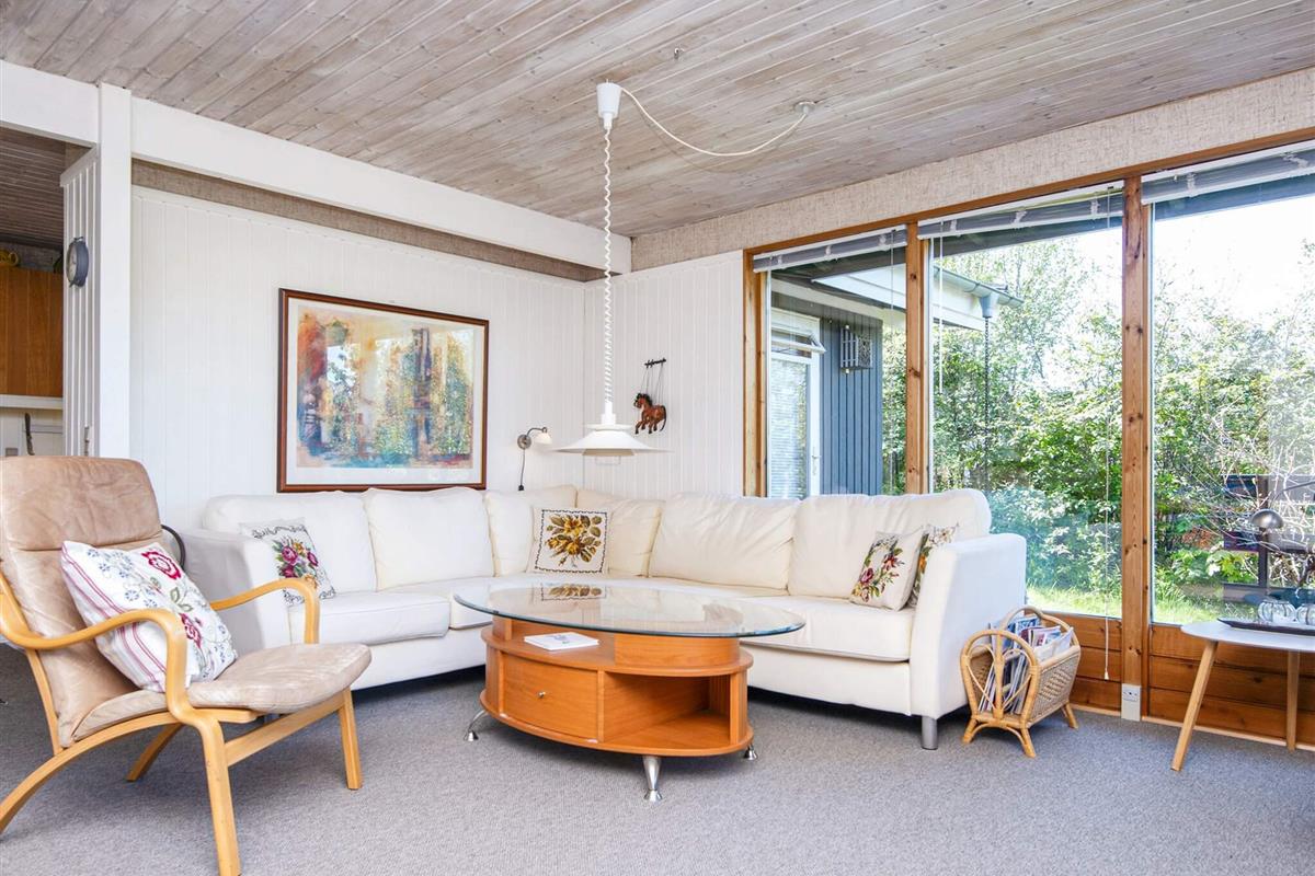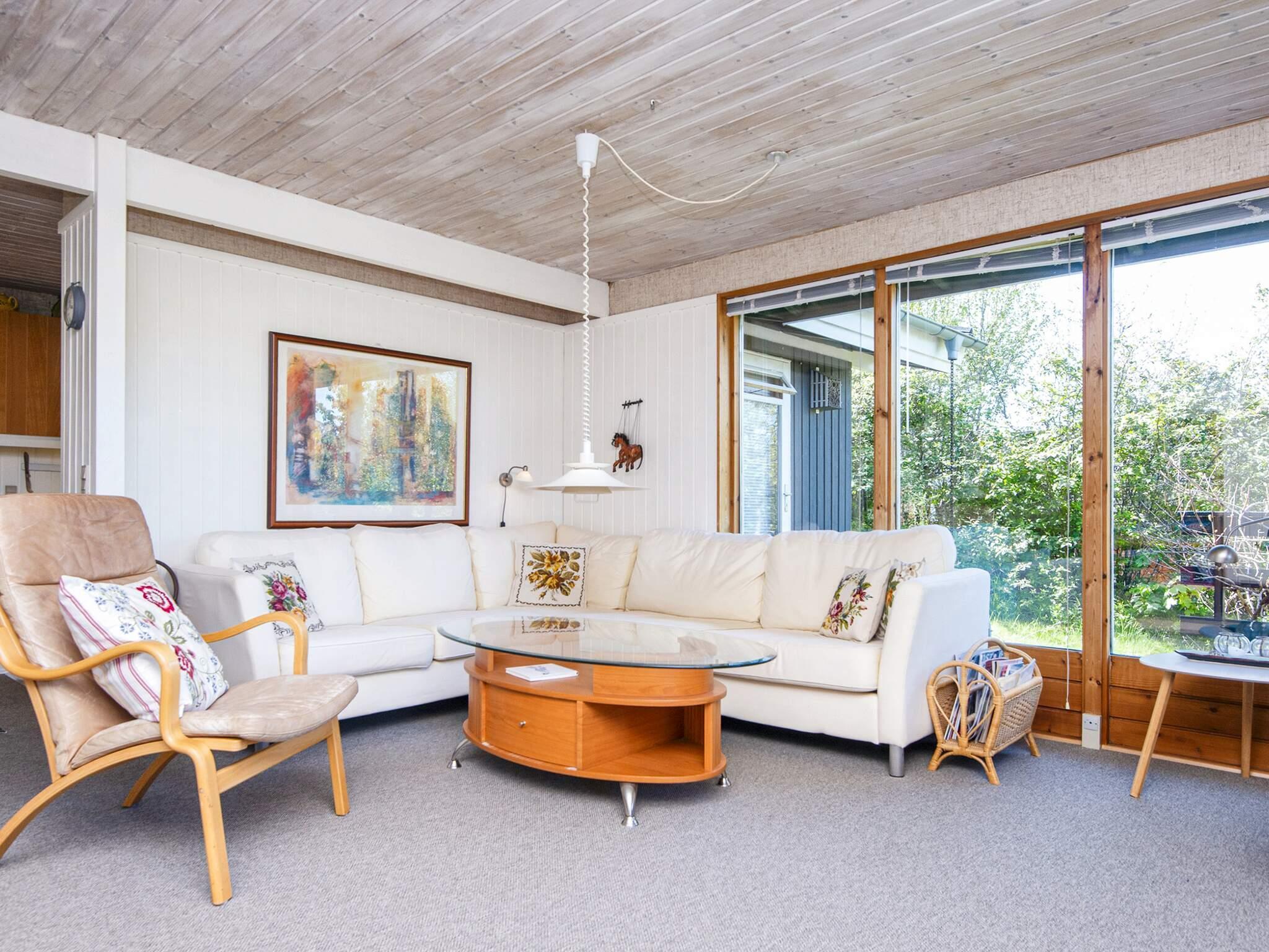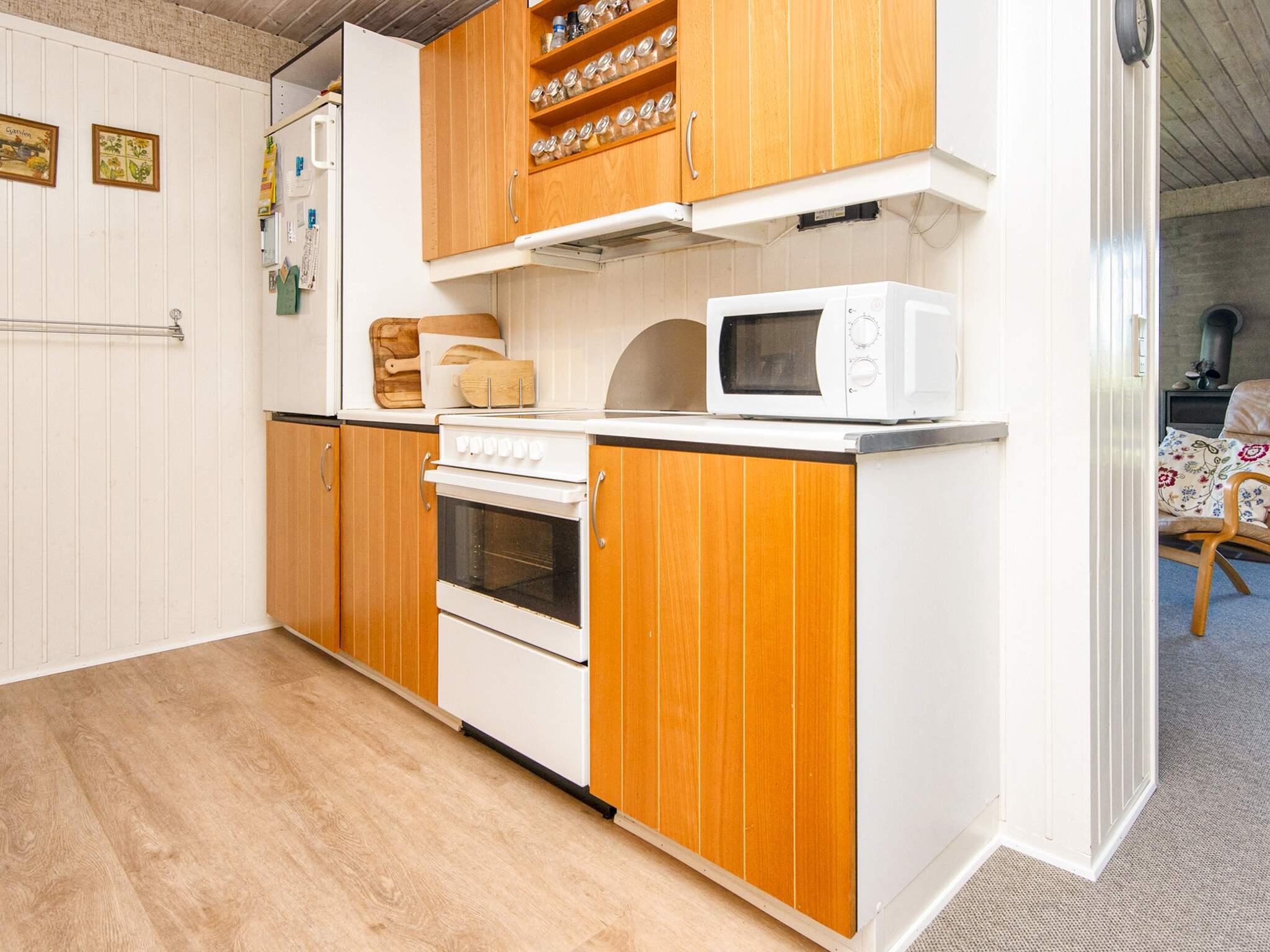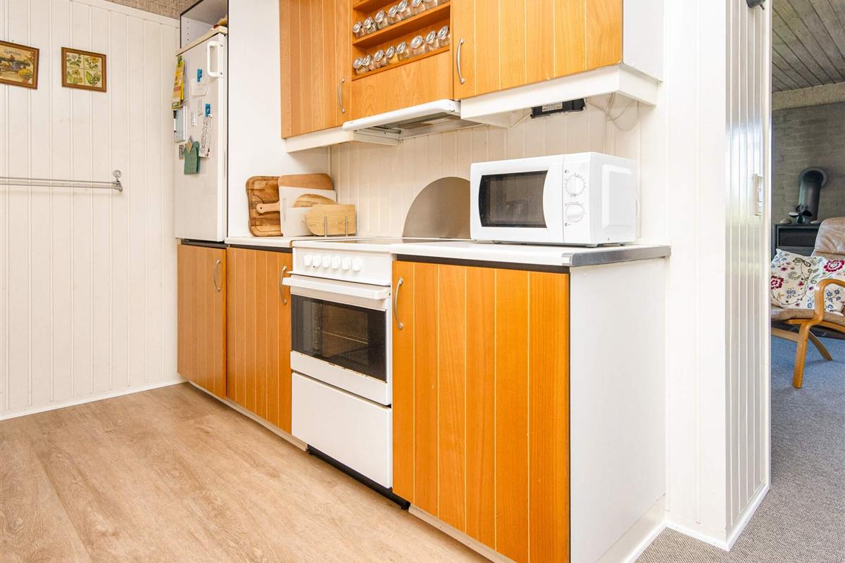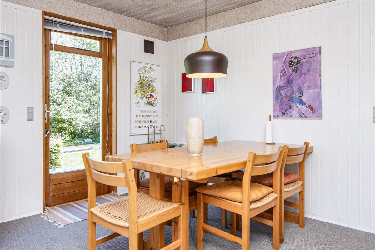 Ferienhaus ganz am Ende des Weges, auf einem Naturgrundstück mit viel Platz für Spiel und Spaß an der Seeluft. Gemütliche Einrichtung im Haus. Im Küchen-/Wohnbereich mit Essecke steht auch ein Holzofen bereit.